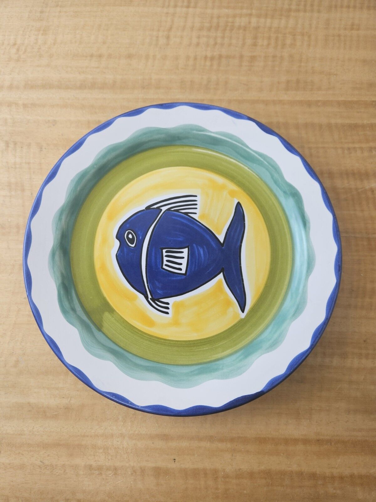RC Crown Portugal Bright Yellow Blue Fish 10.5” plate
