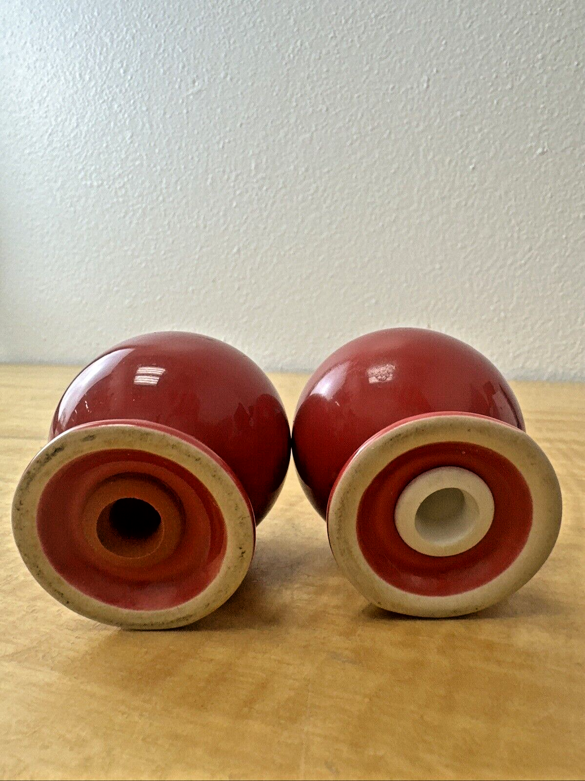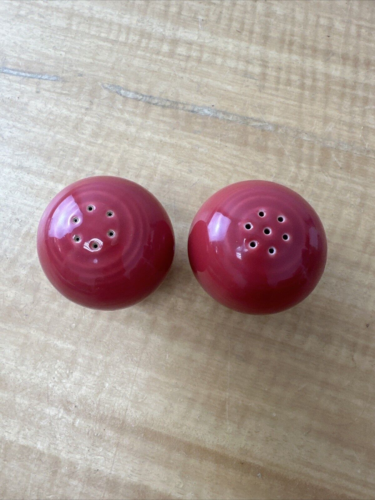 RED FIESTAWARE ROUND BALL SALT & PEPPER SHAKERS W/STOPPERS