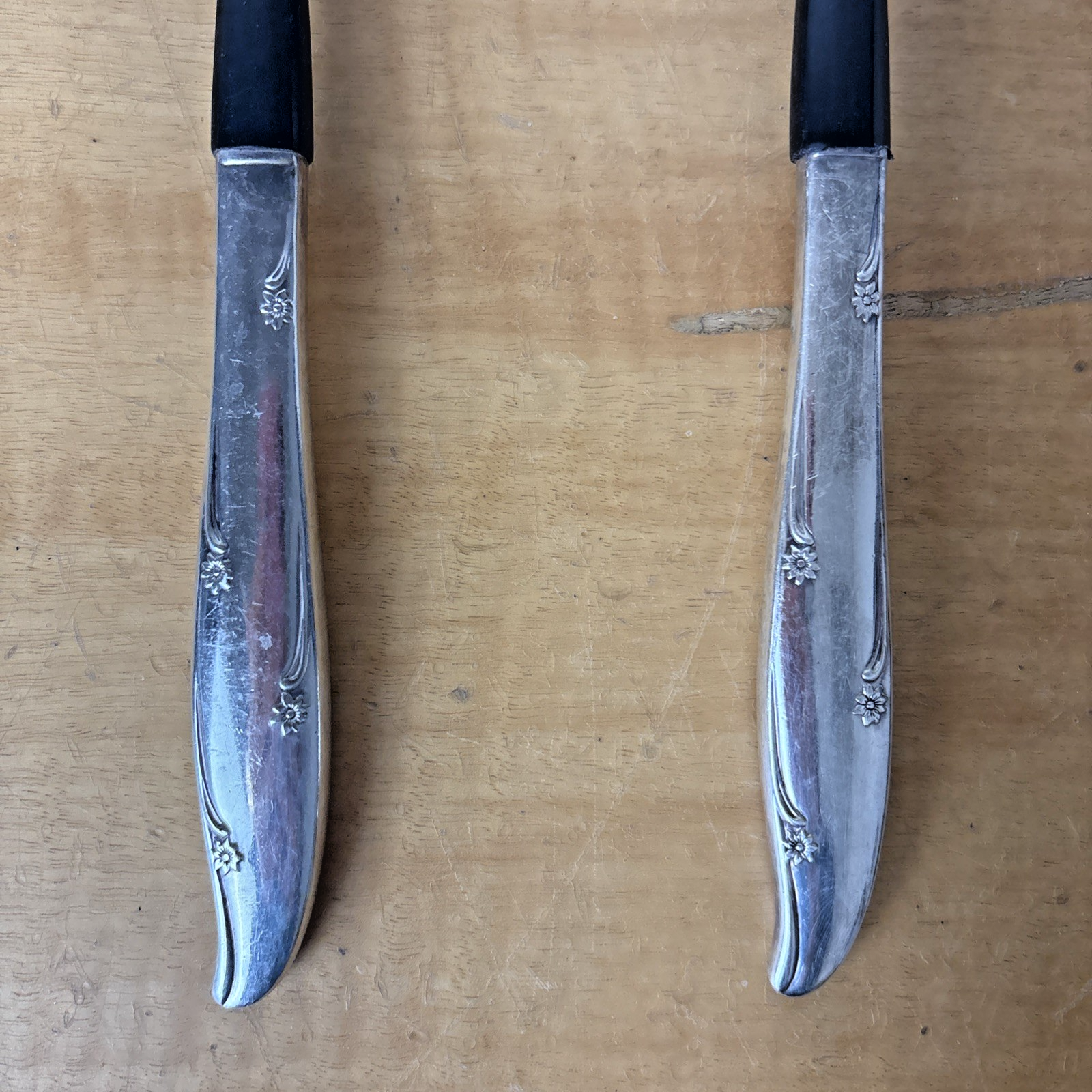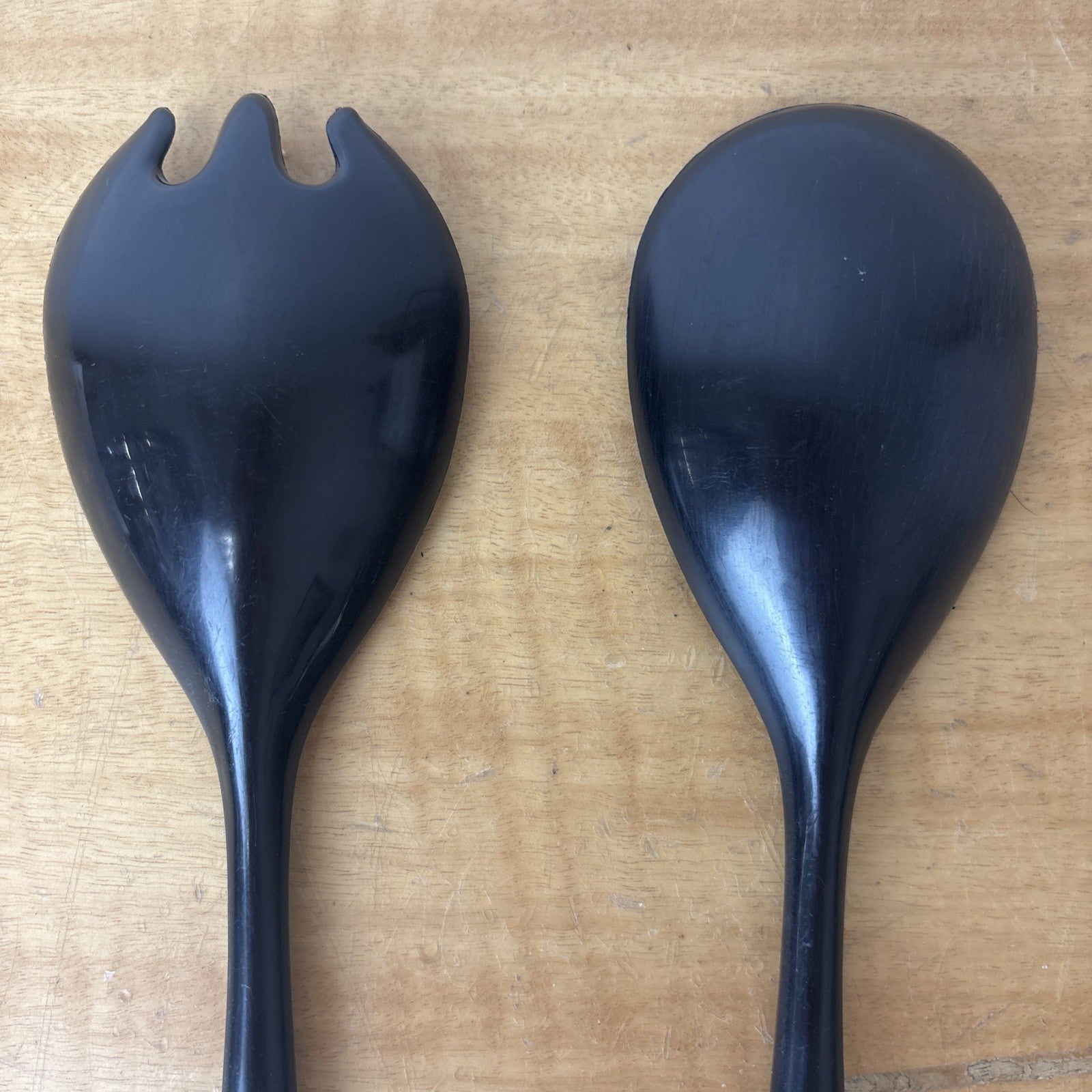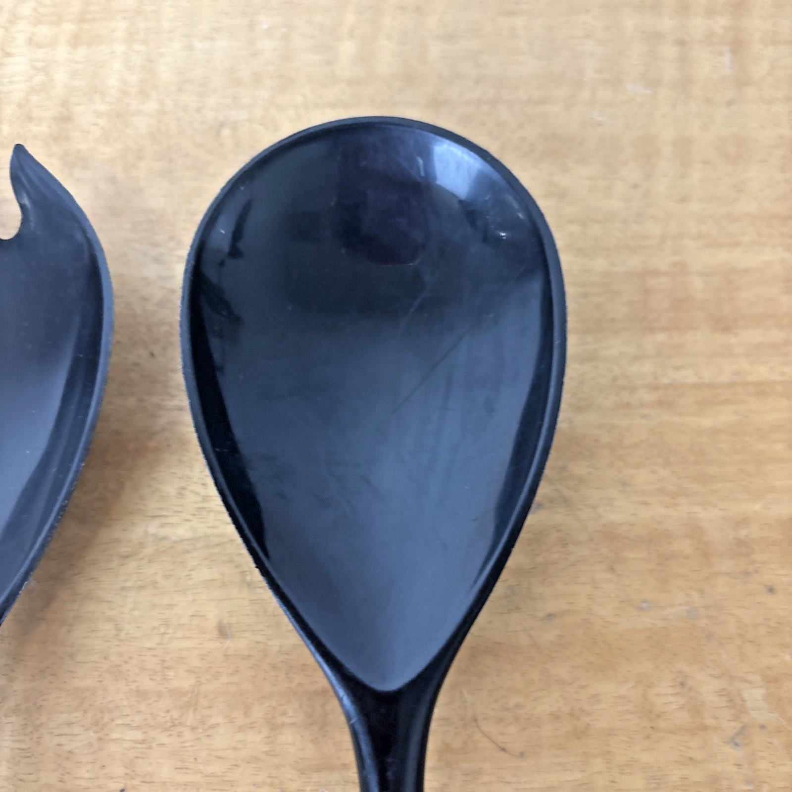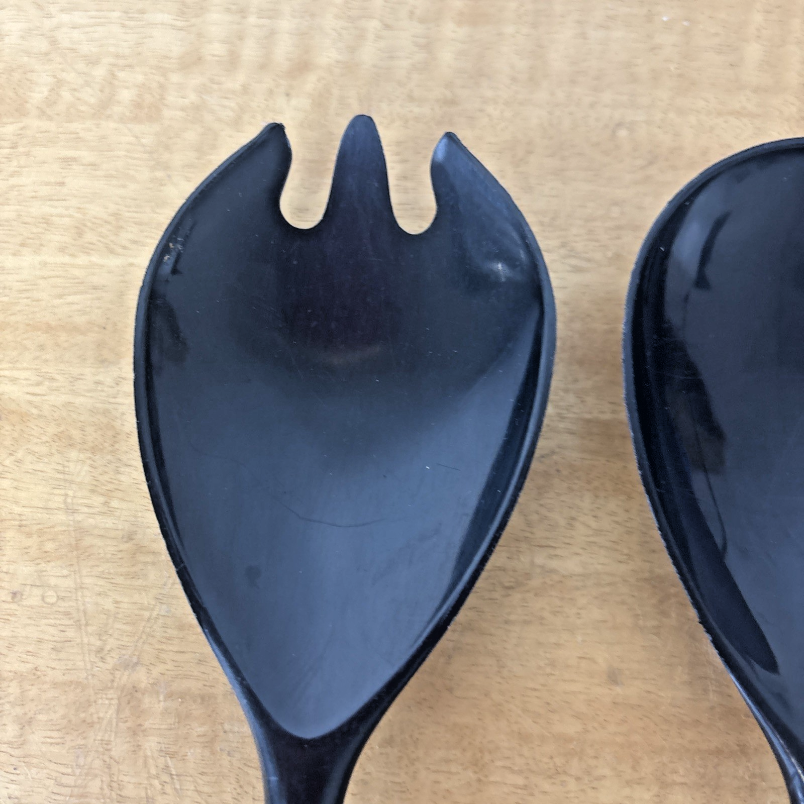 Reverie 1937 Silverplate by Oneida Salad Serving Set Black Plastic & Silver Vtg