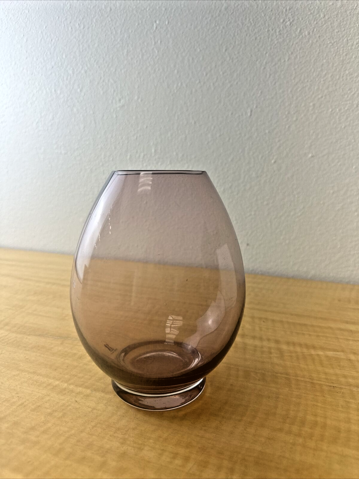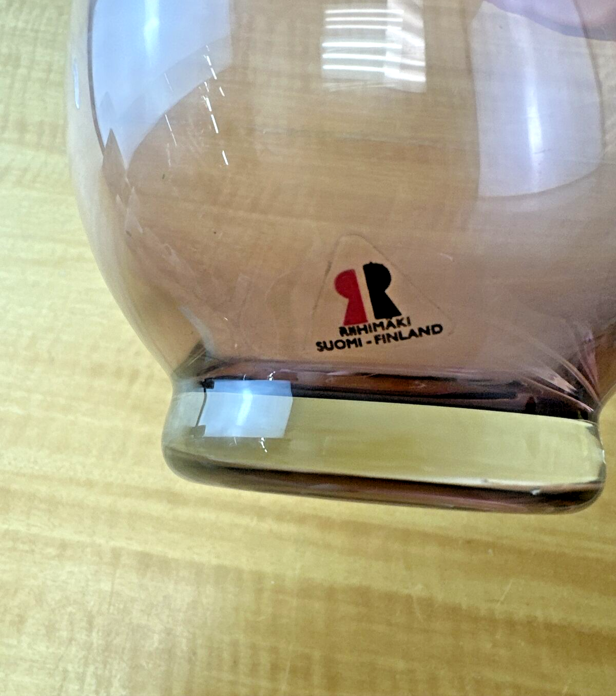 RiiHiMAKi VASE Fiand Smoke Purple Glass Pear Shaped w/ Label 1970's Retro Suomi