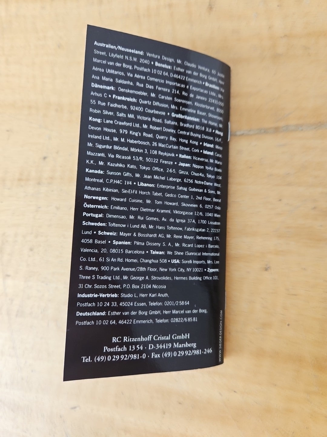 Ritzenhoff Champus Champagne Glass Flute autumn 1997 catalog, brochure, photos
