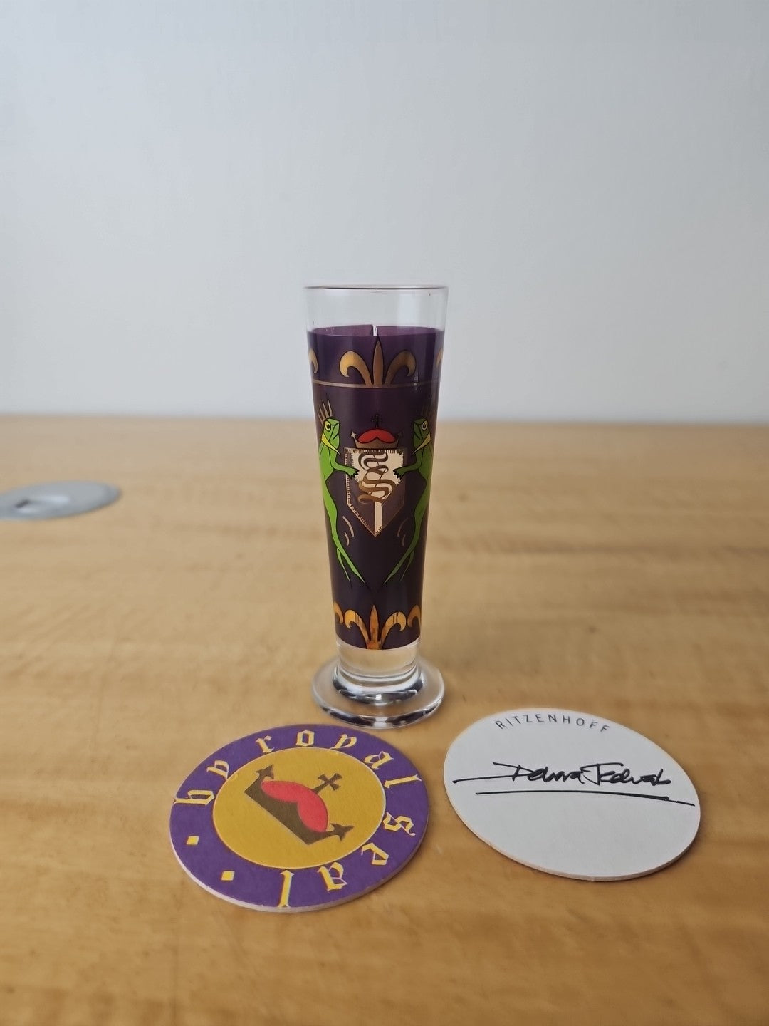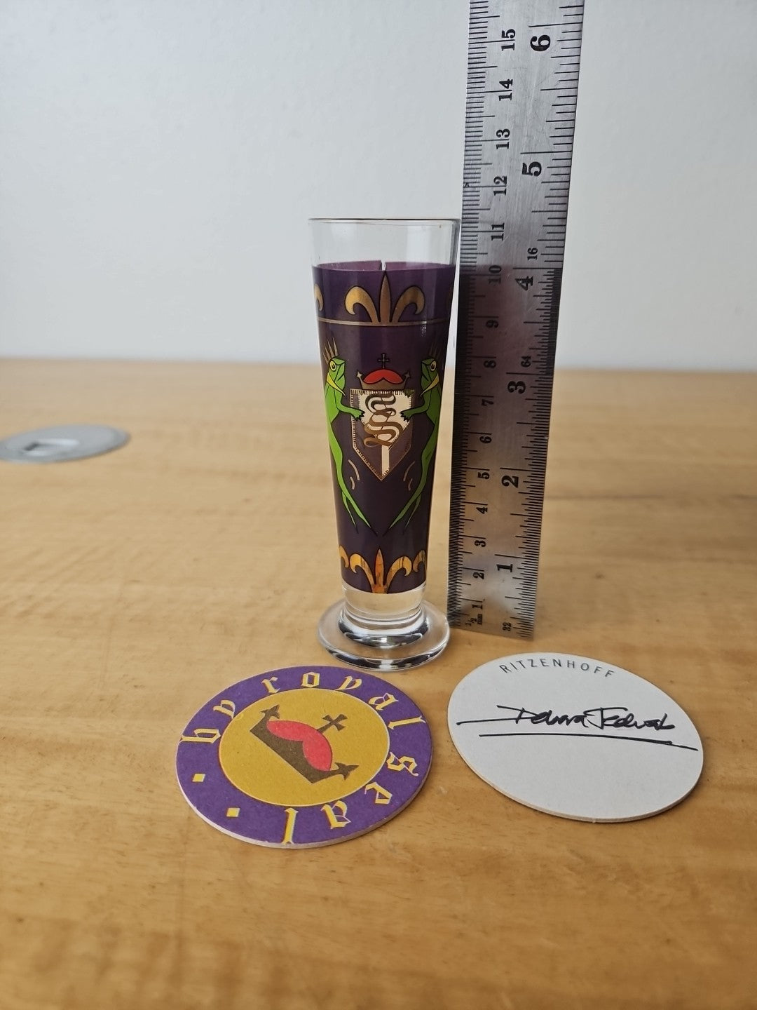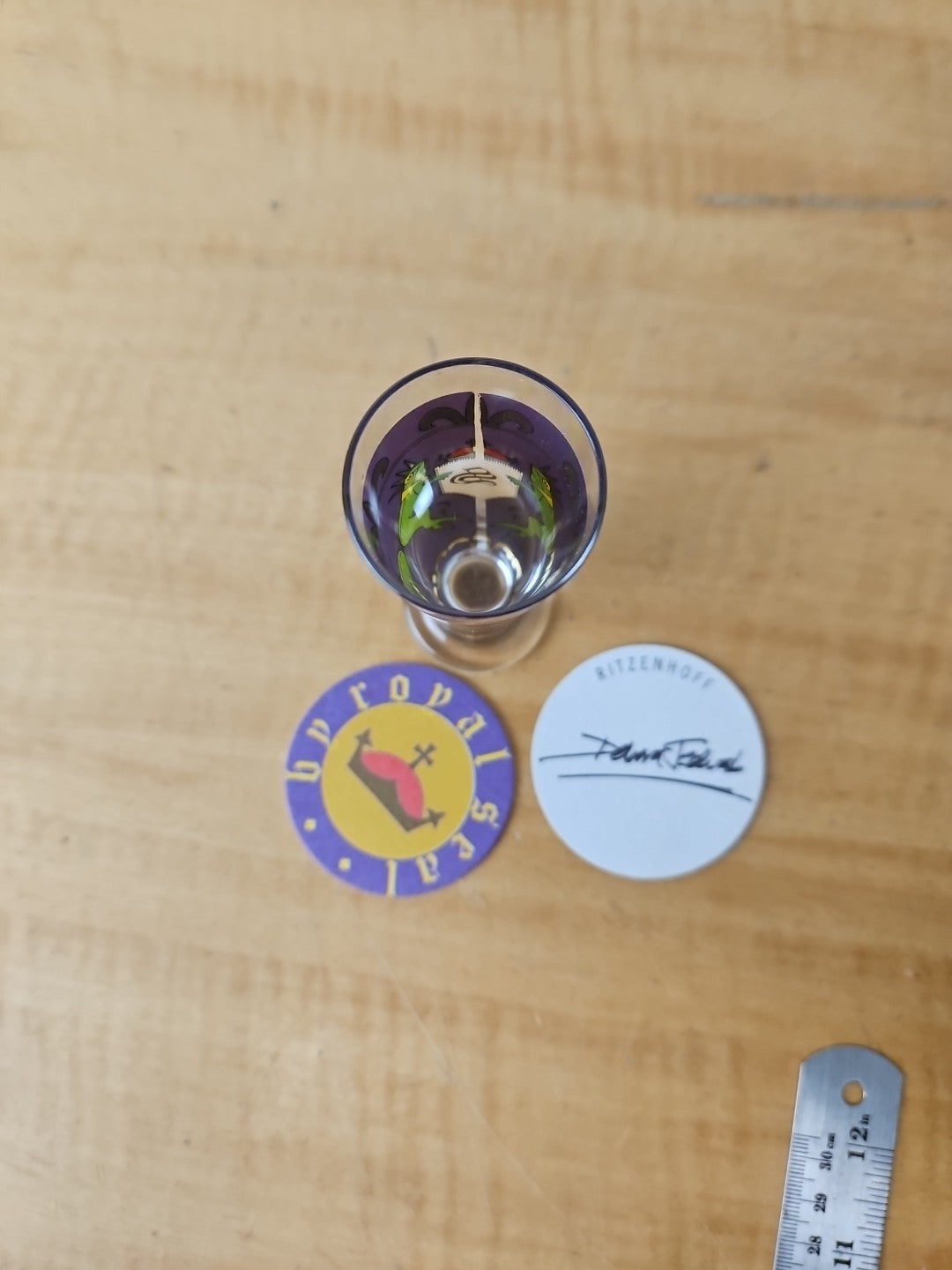 Ritzenhoff German Schnapps Glass Debra Jedwab with 2 coasters, no box
