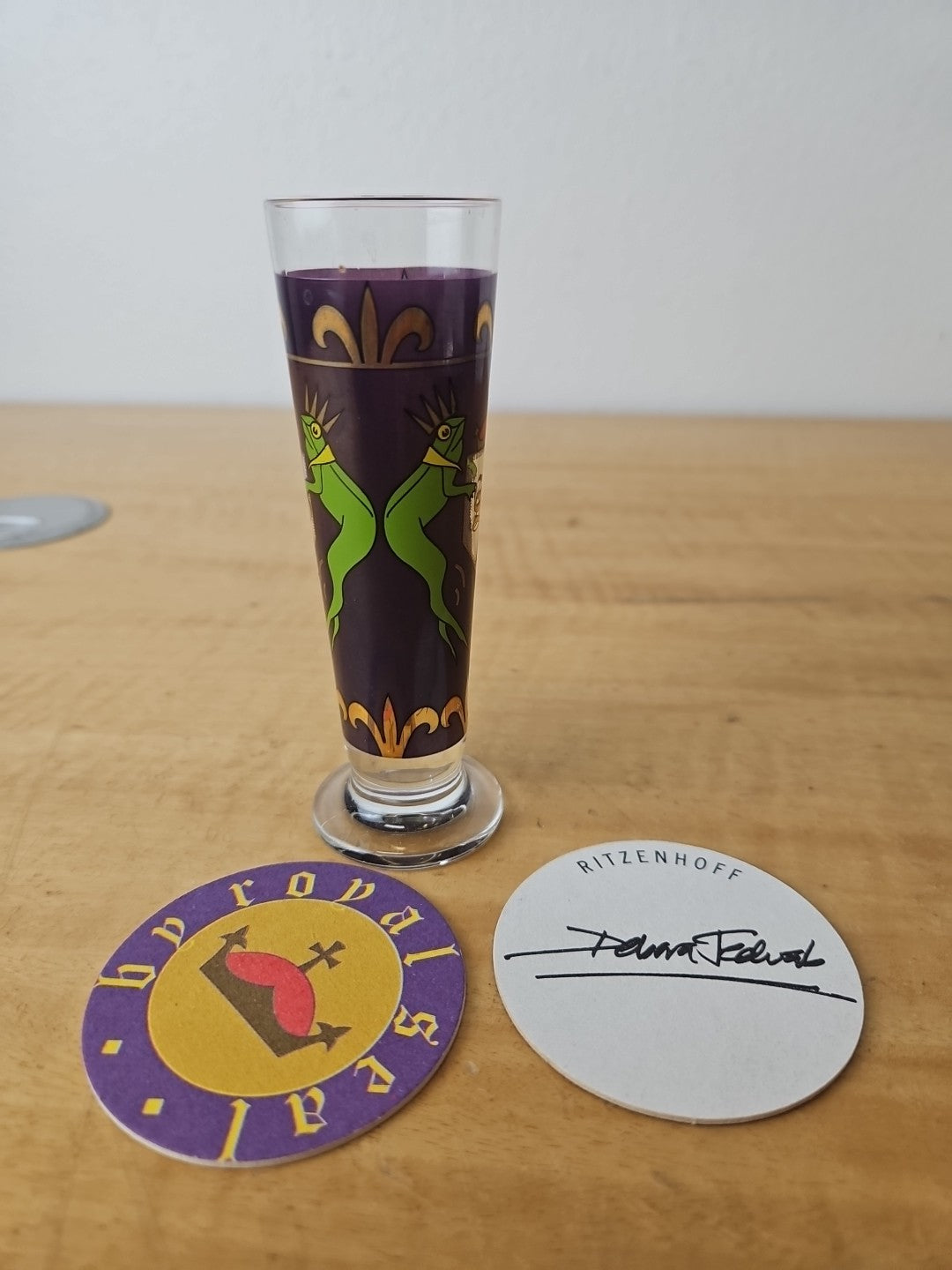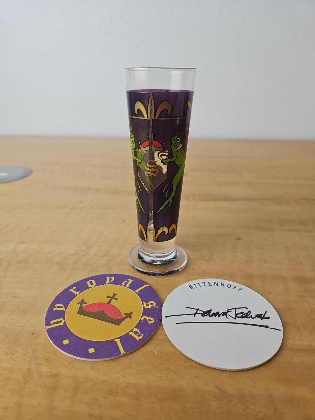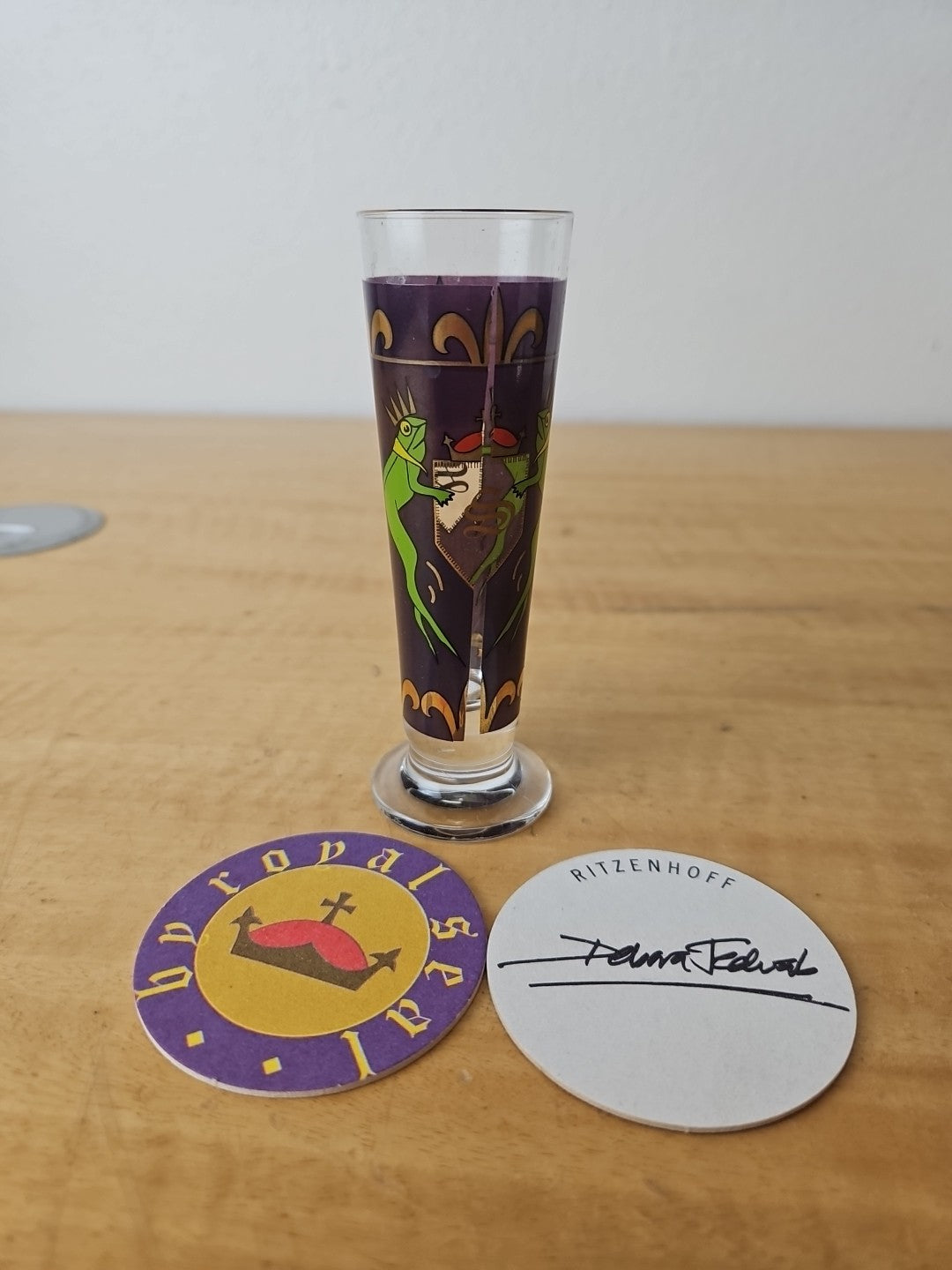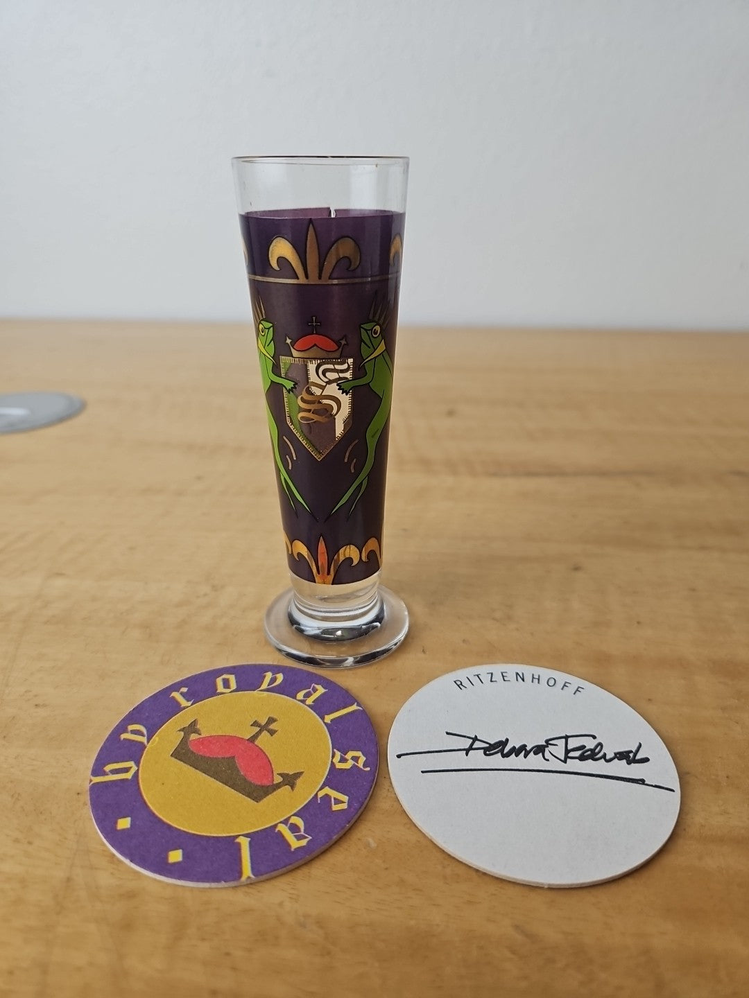 Ritzenhoff German Schnapps Glass Debra Jedwab with 2 coasters, no box