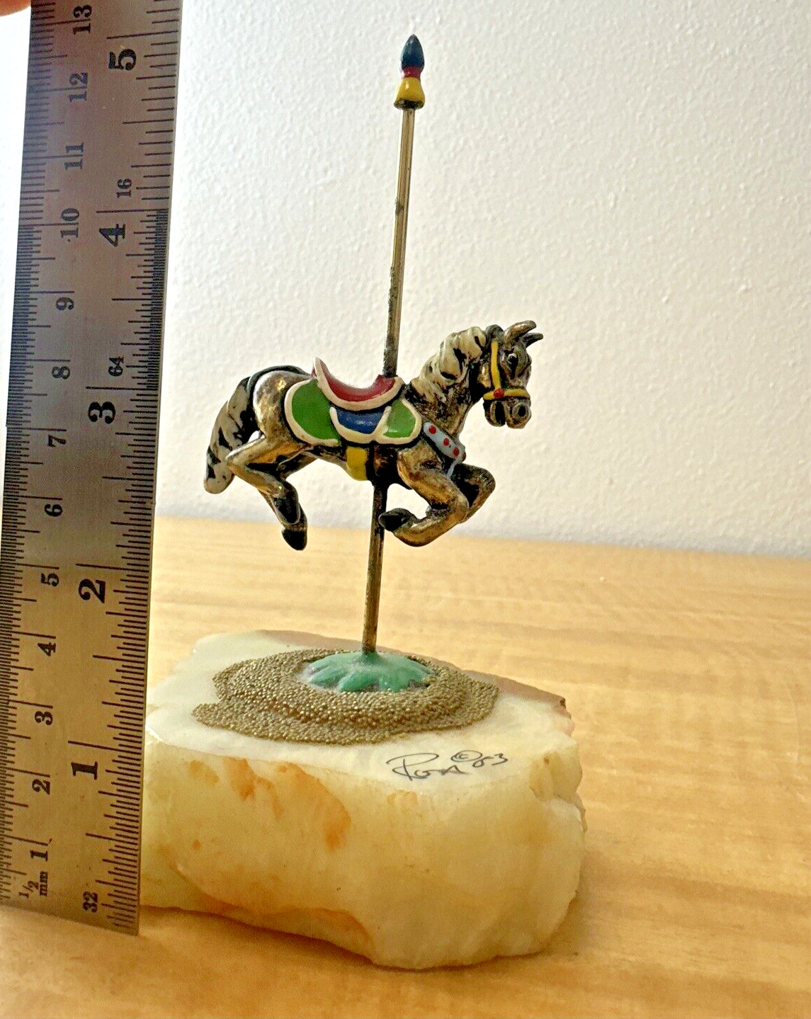 Ron Lee 1983 Carousel Horse Onyx Marble Base Signed 6" H x 3" W