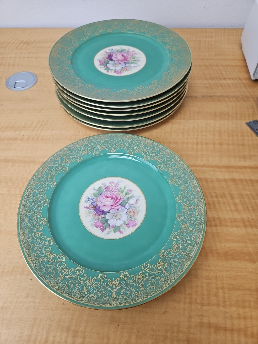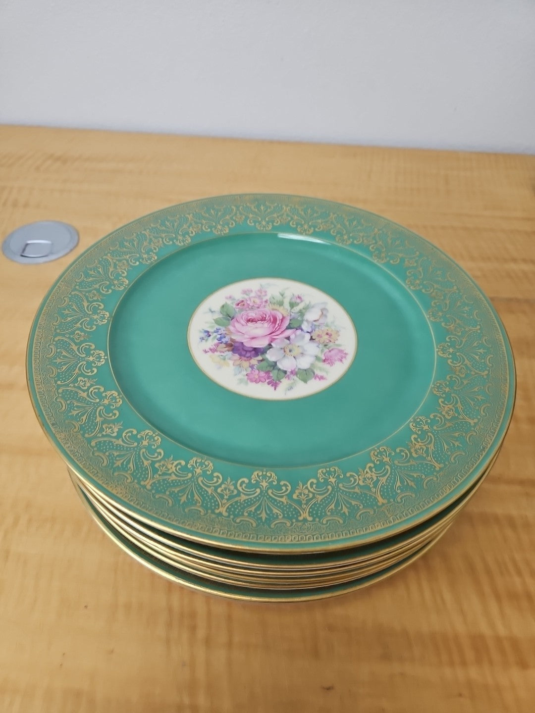 Rosenthal Ivory - S & G Gump 10 1/2" Dinner Plates 5954 114 Green, **SET of 8**