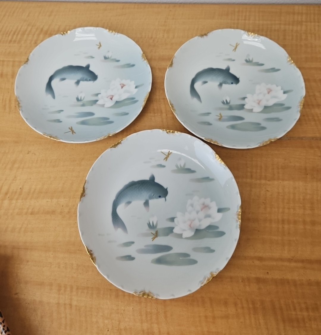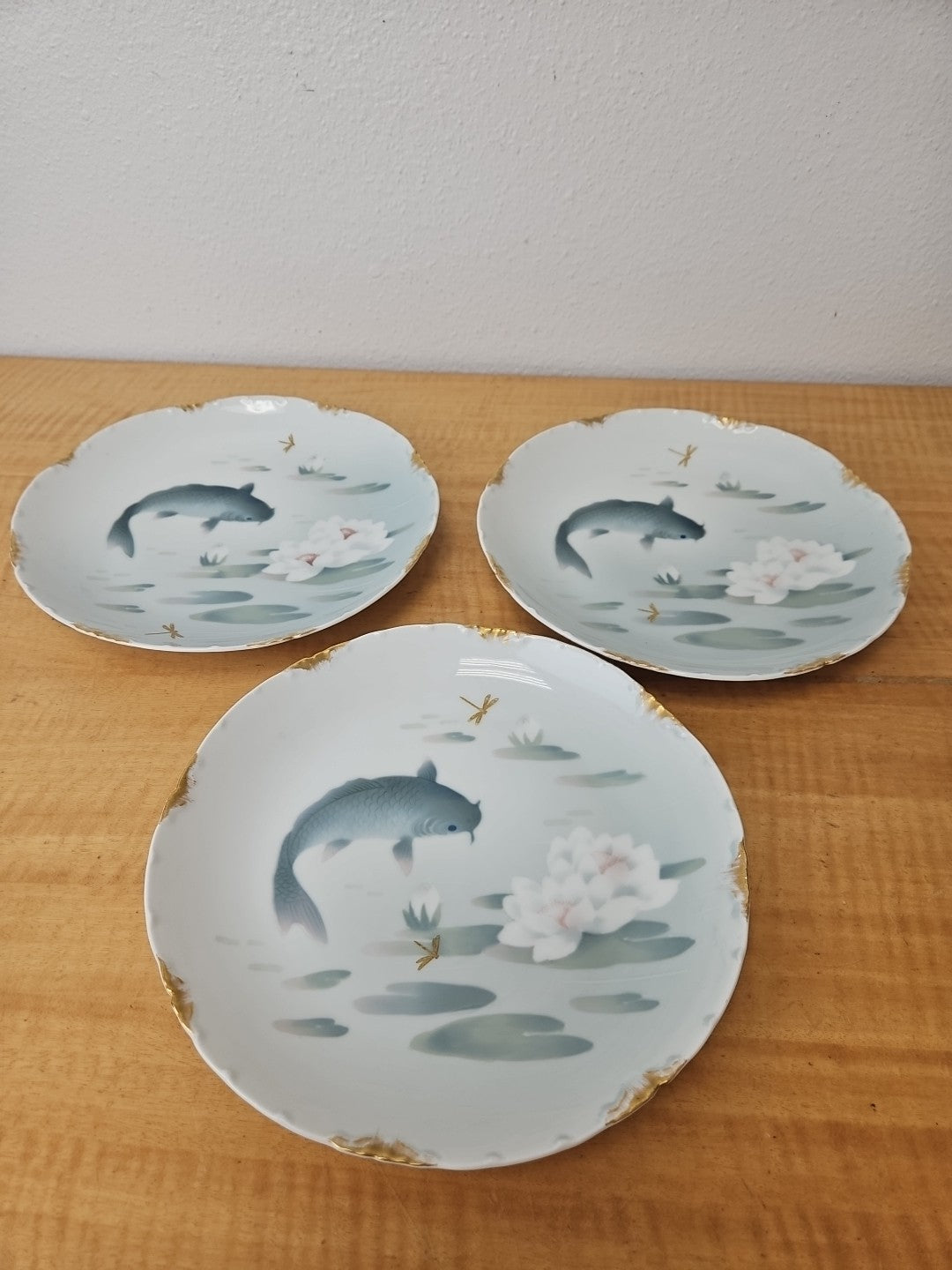 ROSENTHAL VERSAILLES Ernst Wahliss WIEN FISH PLATE 9" gold rim *SET of 3*