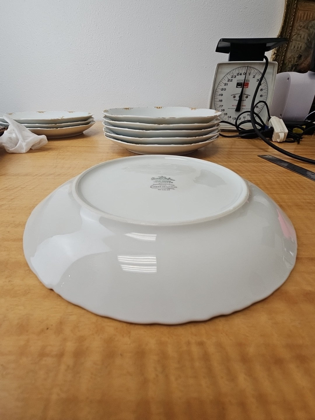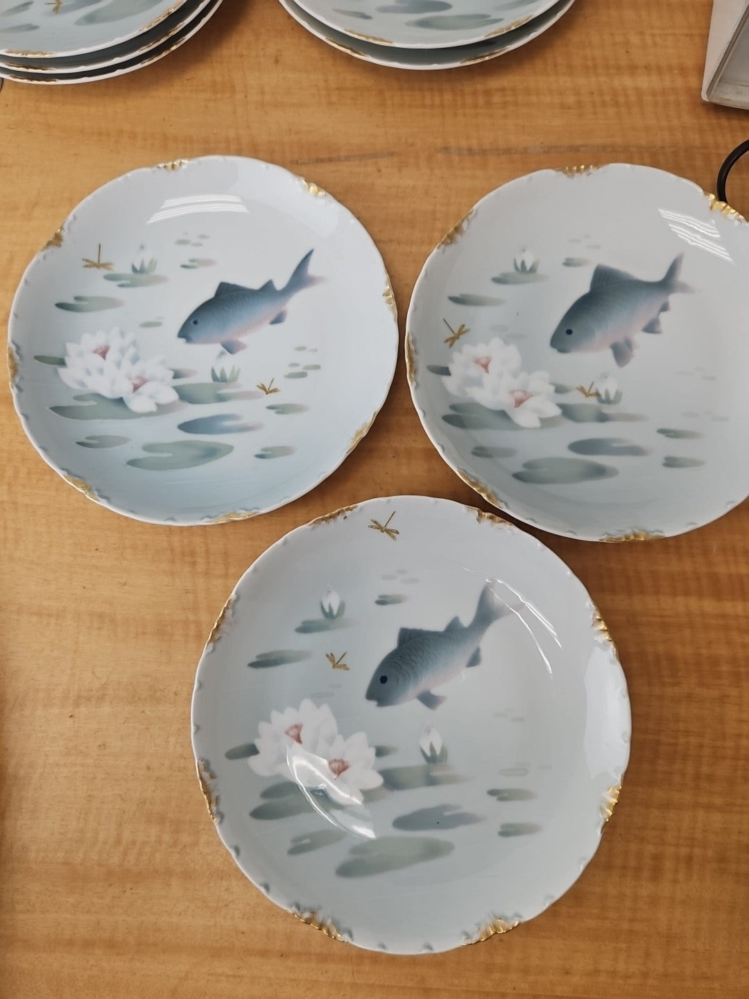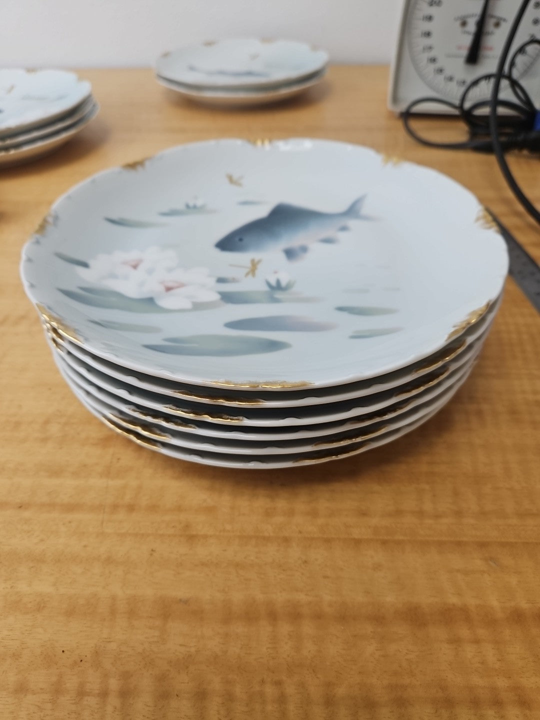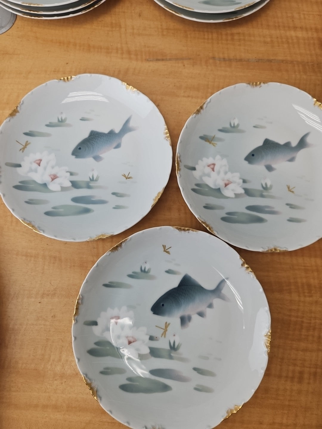 ROSENTHAL VERSAILLES Ernst Wahliss WIEN FISH PLATE 9" gold rim *SET of 6*