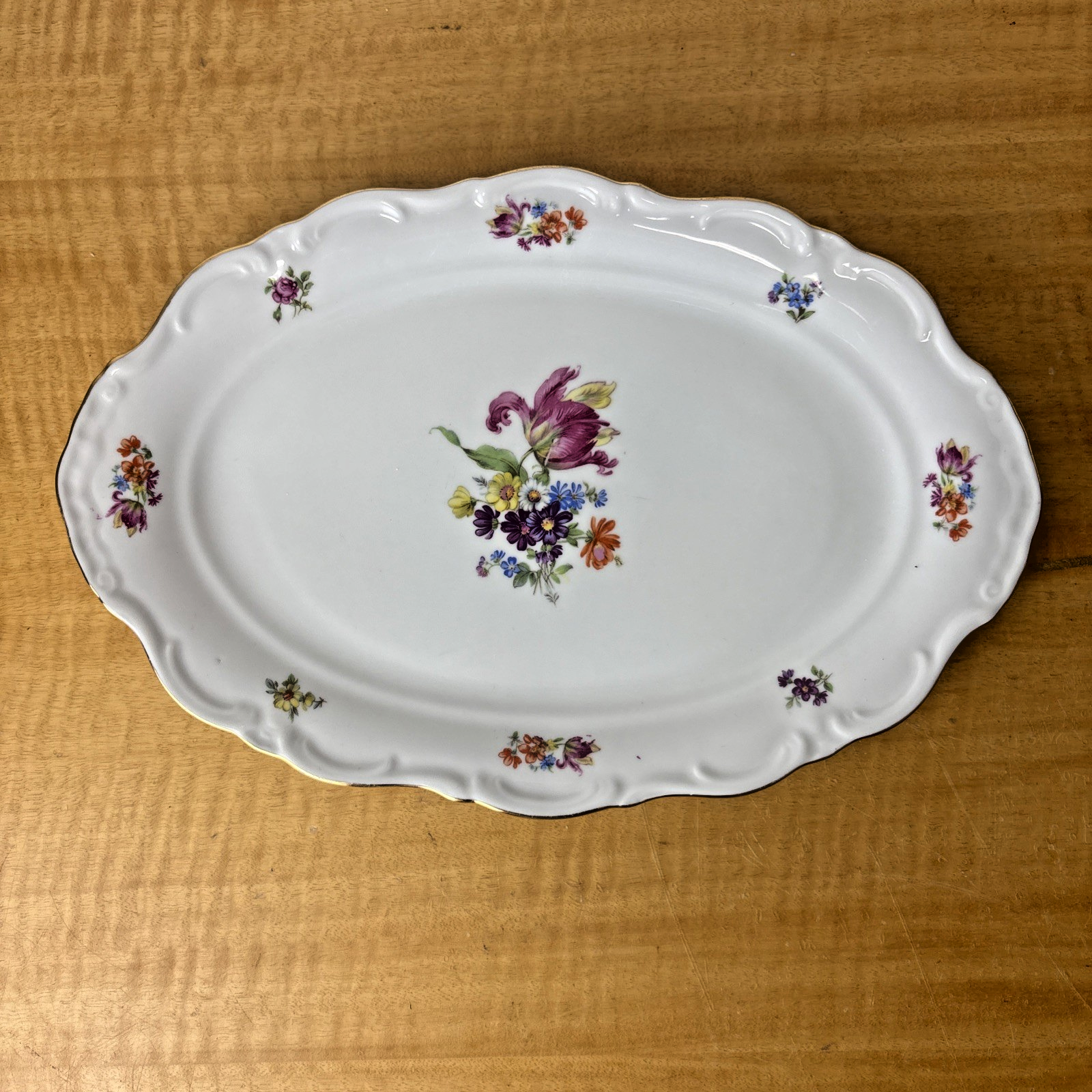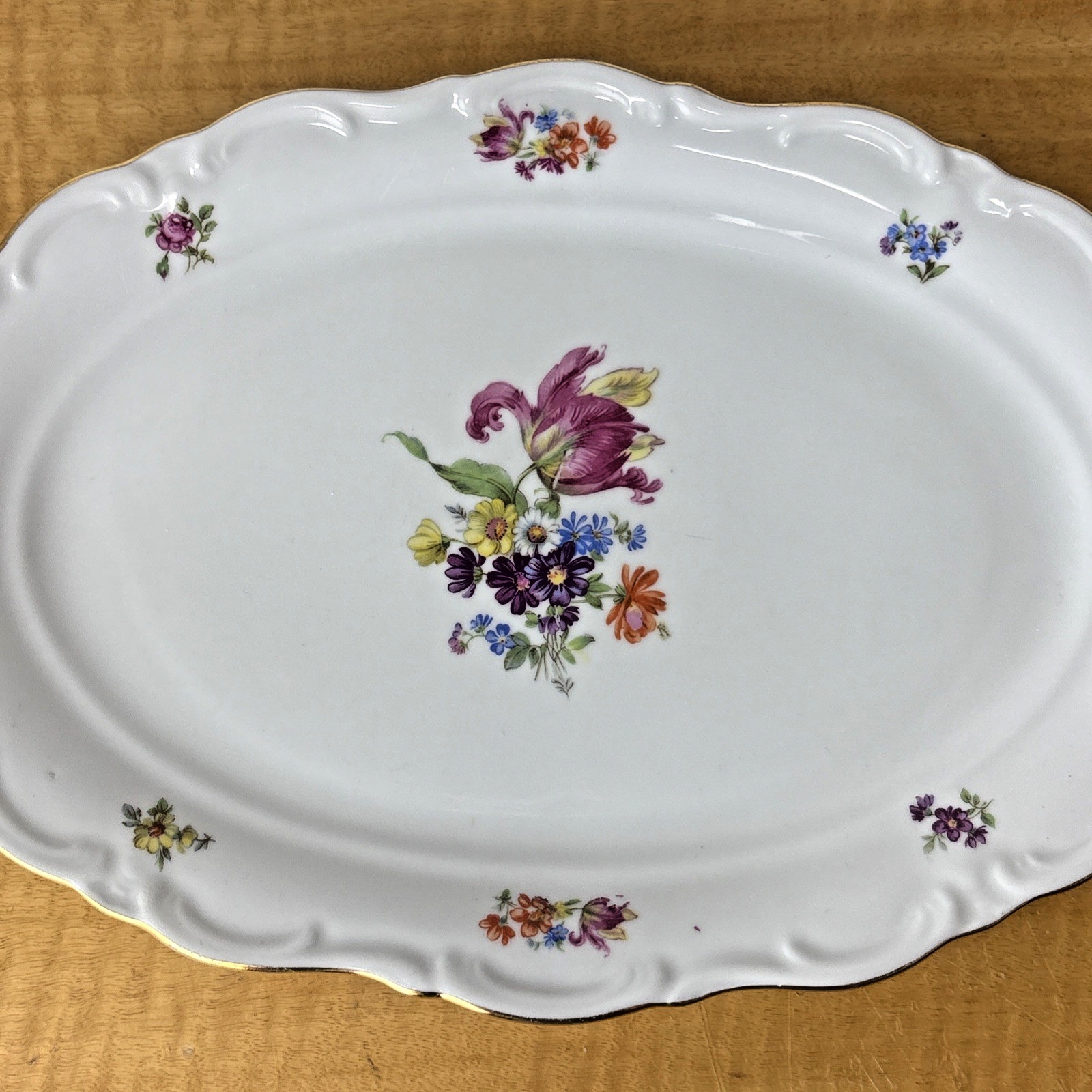 Royal Hanover , 13 x 8.5 Oval Serving Platter Floral w/Gold Trim Germany Bavaria