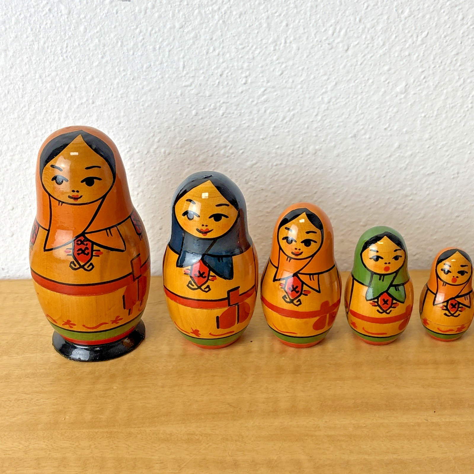 Russian Soviet USSR Multicolor Matryoshka Traditional Nesting Doll - Very Tiny !