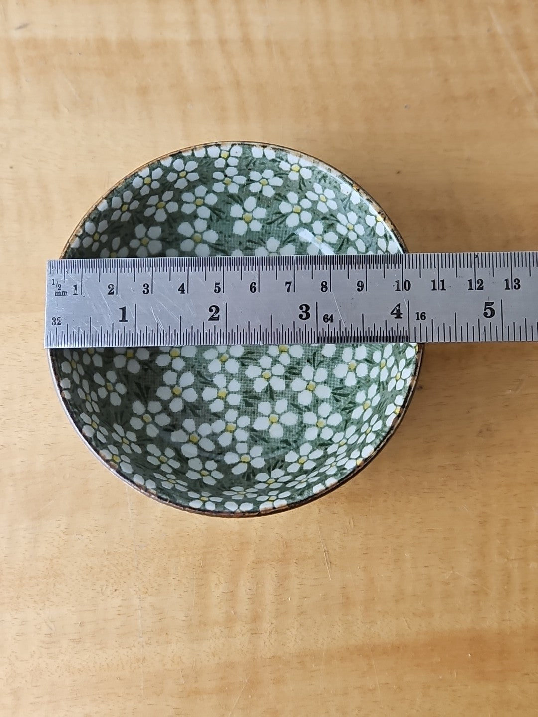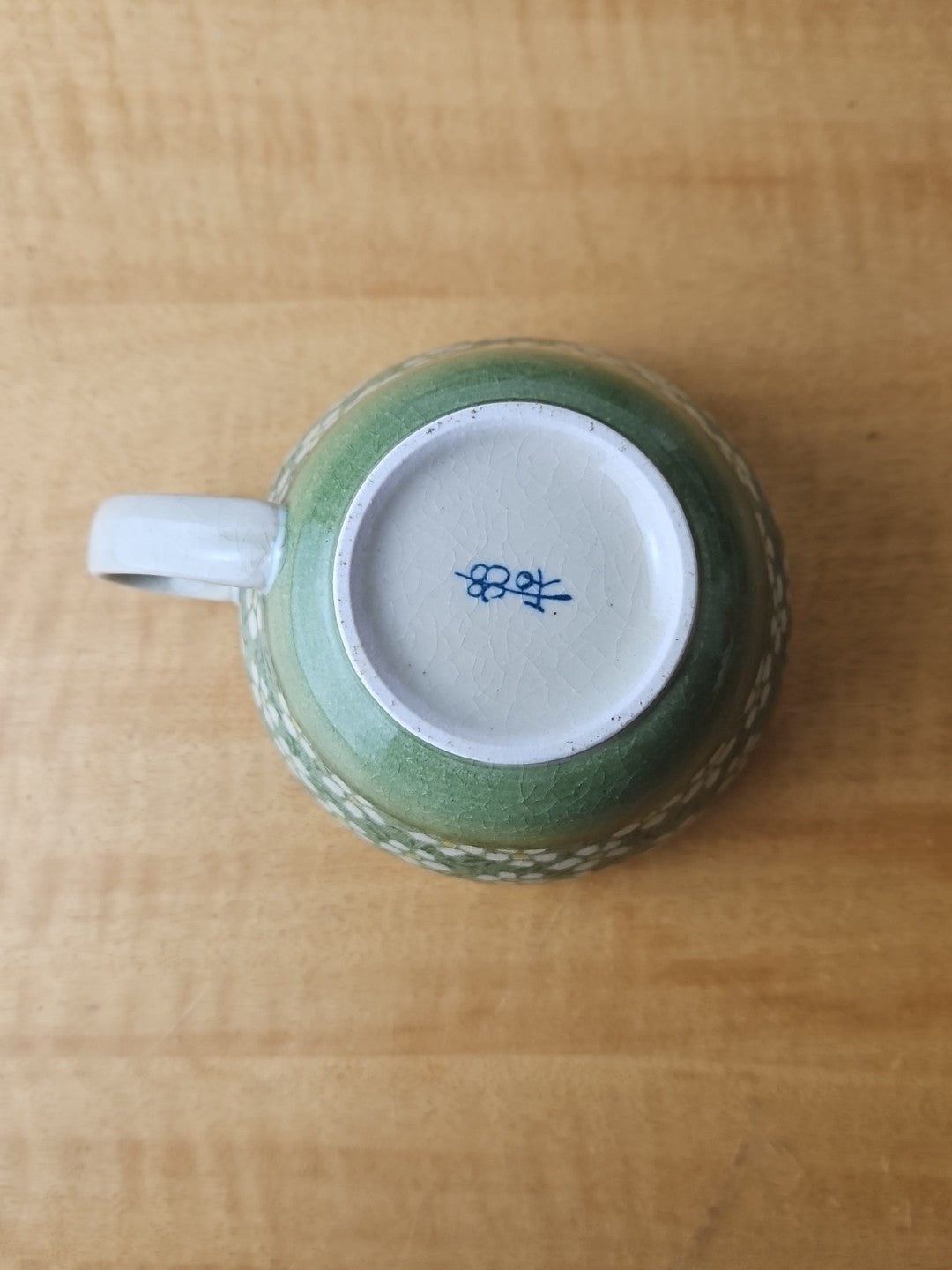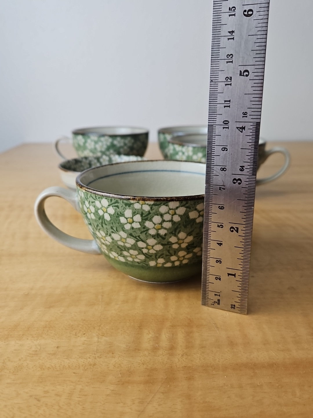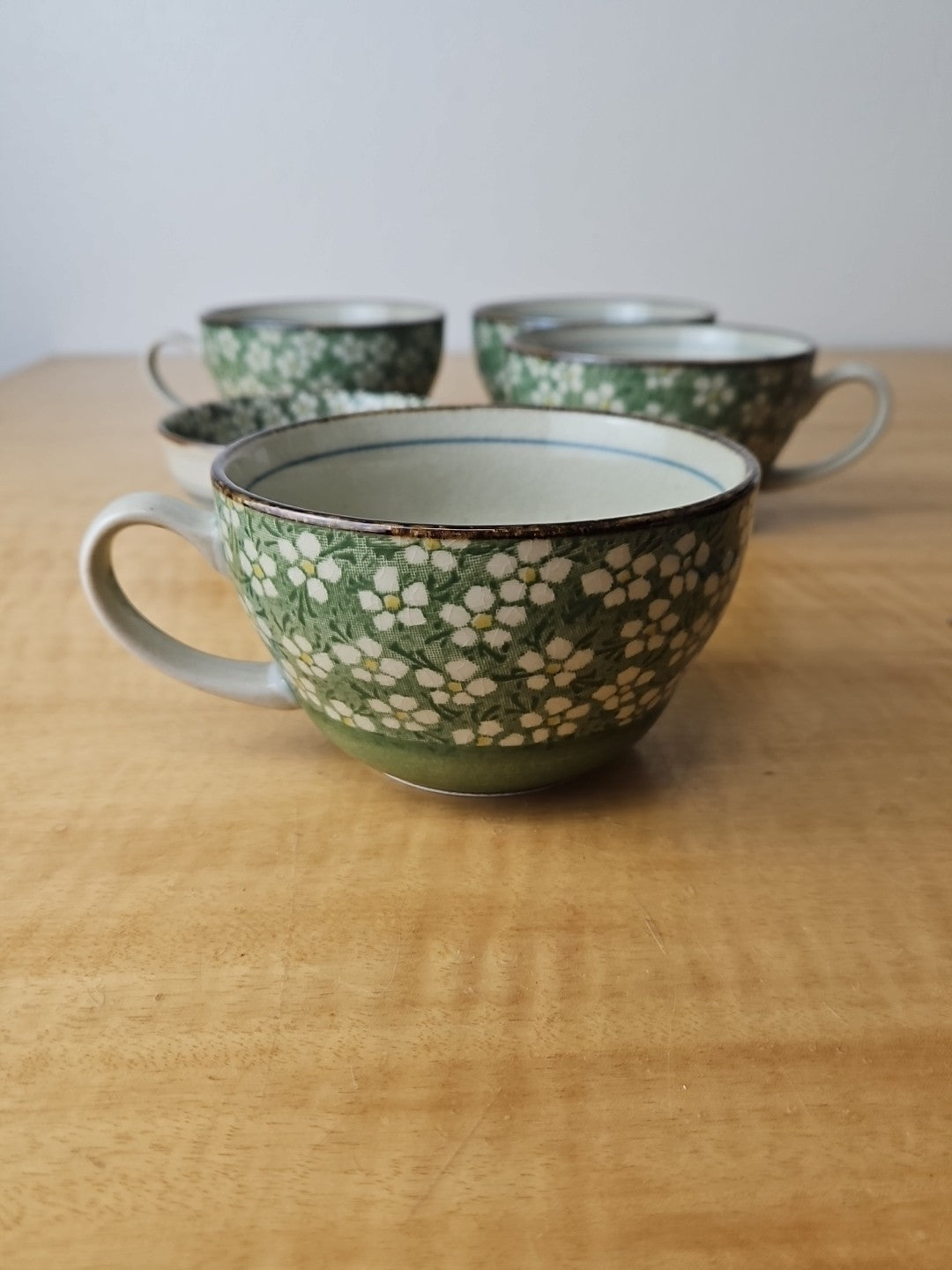 Sakura Japanese Cherry Blossom Tea Cups SET Of 4 with bowl, green, brown rim