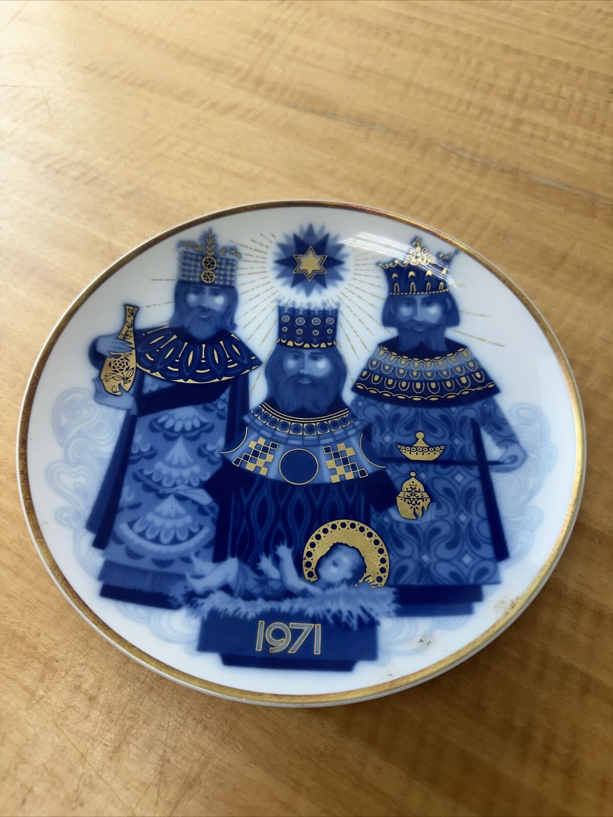 SANTA CLARA BLUE PORCELAIN COLLECTIBLE PLATE #7681 MARIA MENDEZ CHRISTMAS 1971