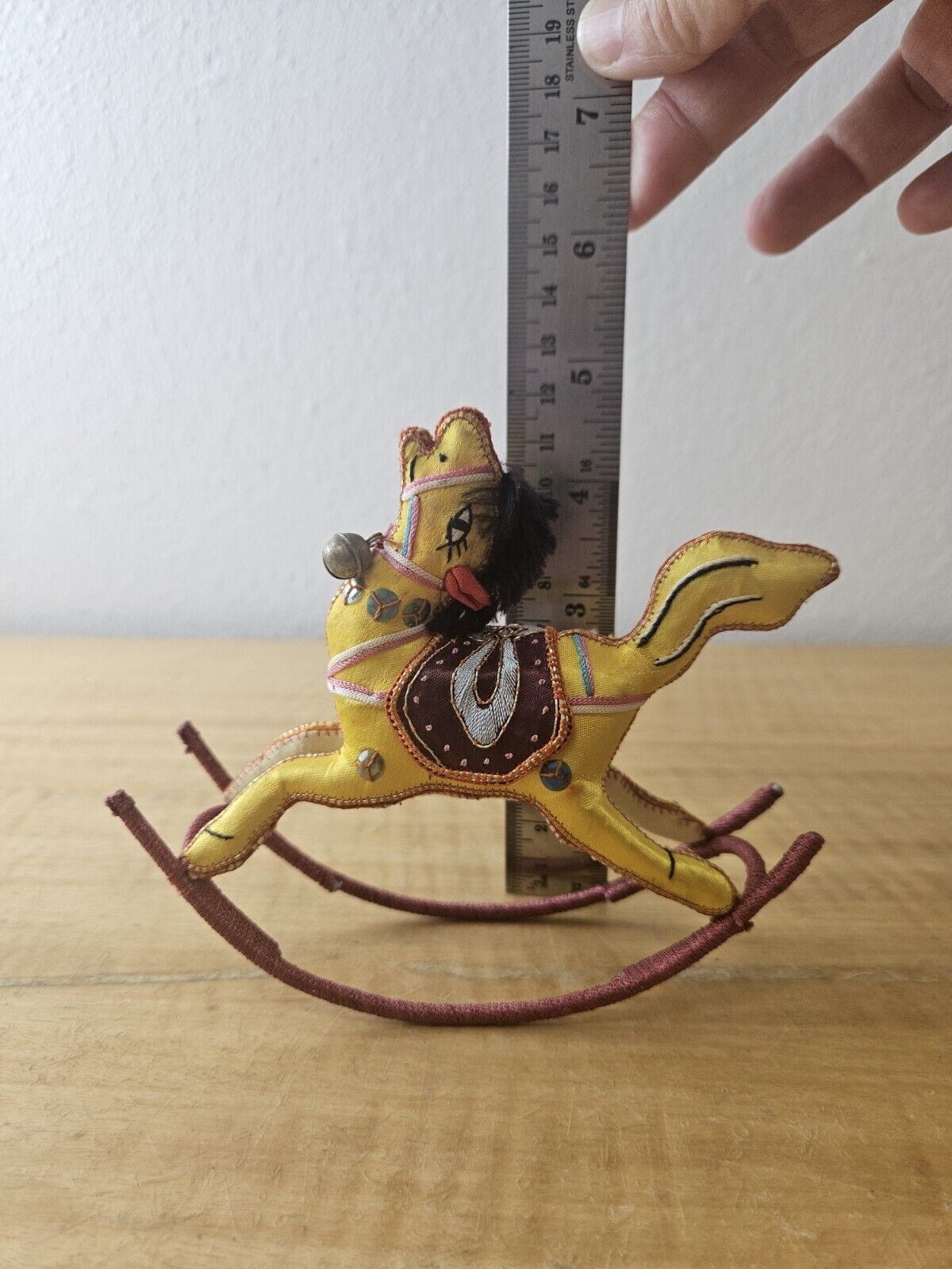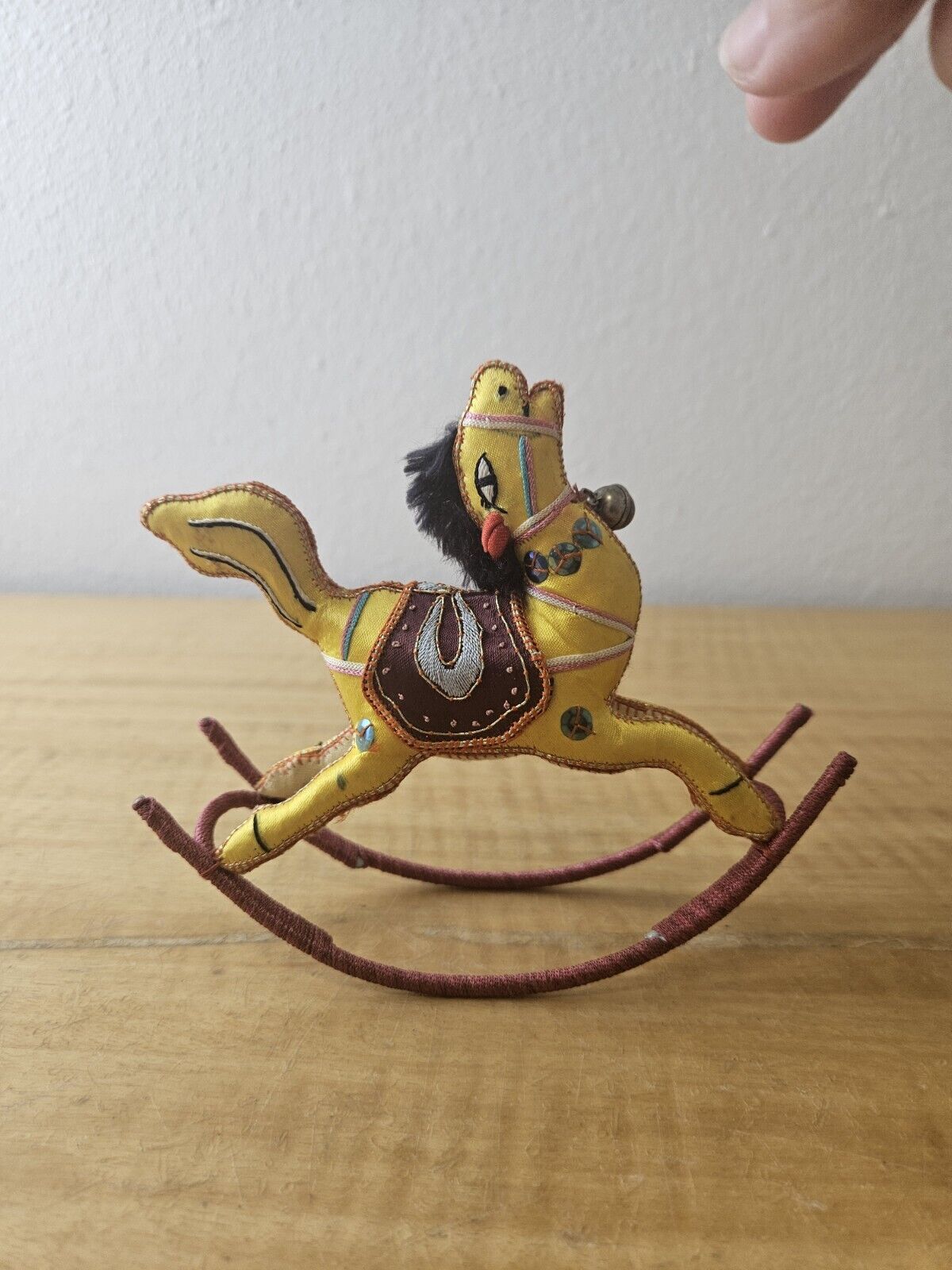 Satin Silk Rocking Horse Christmas Ornament Embroidered 1 piece, PINK