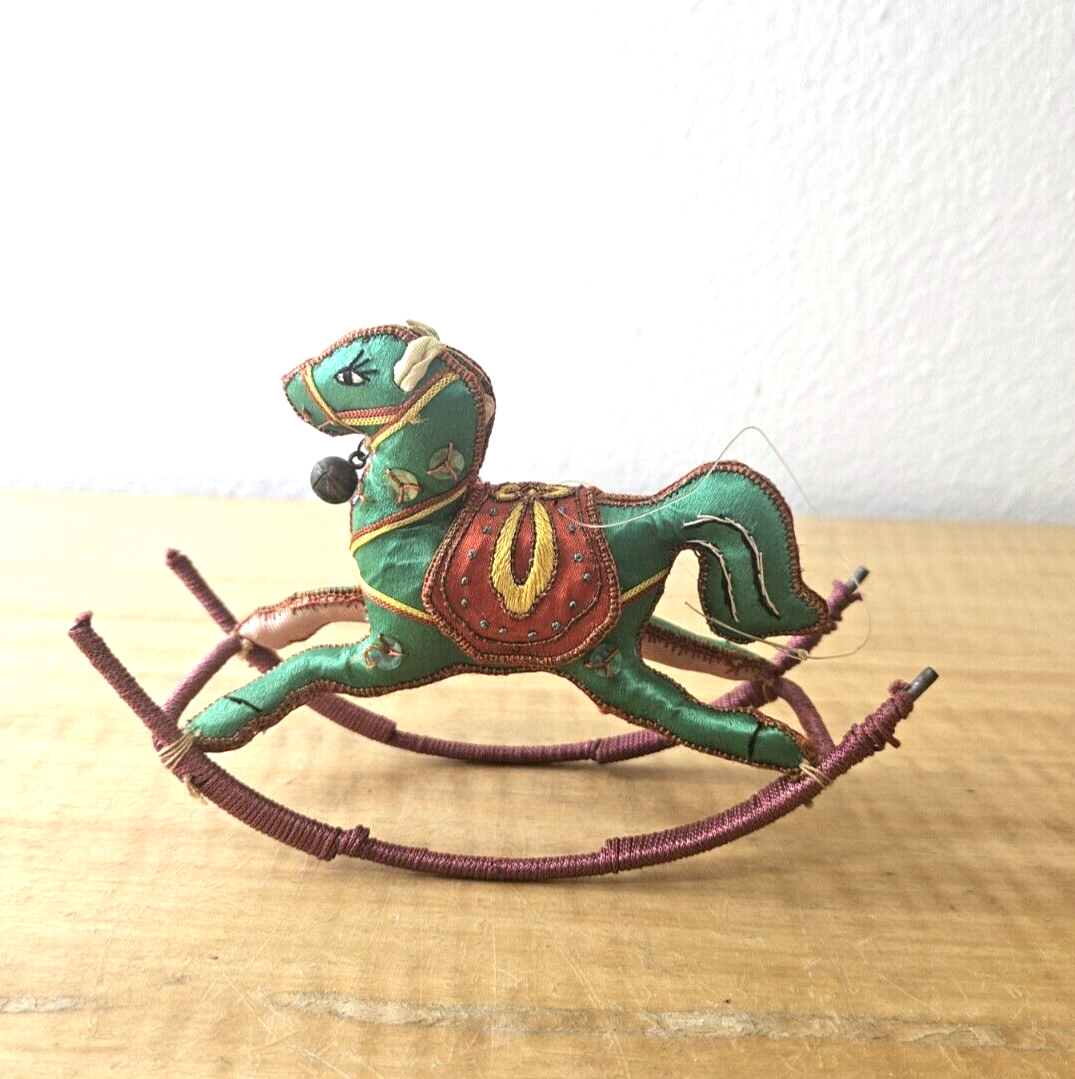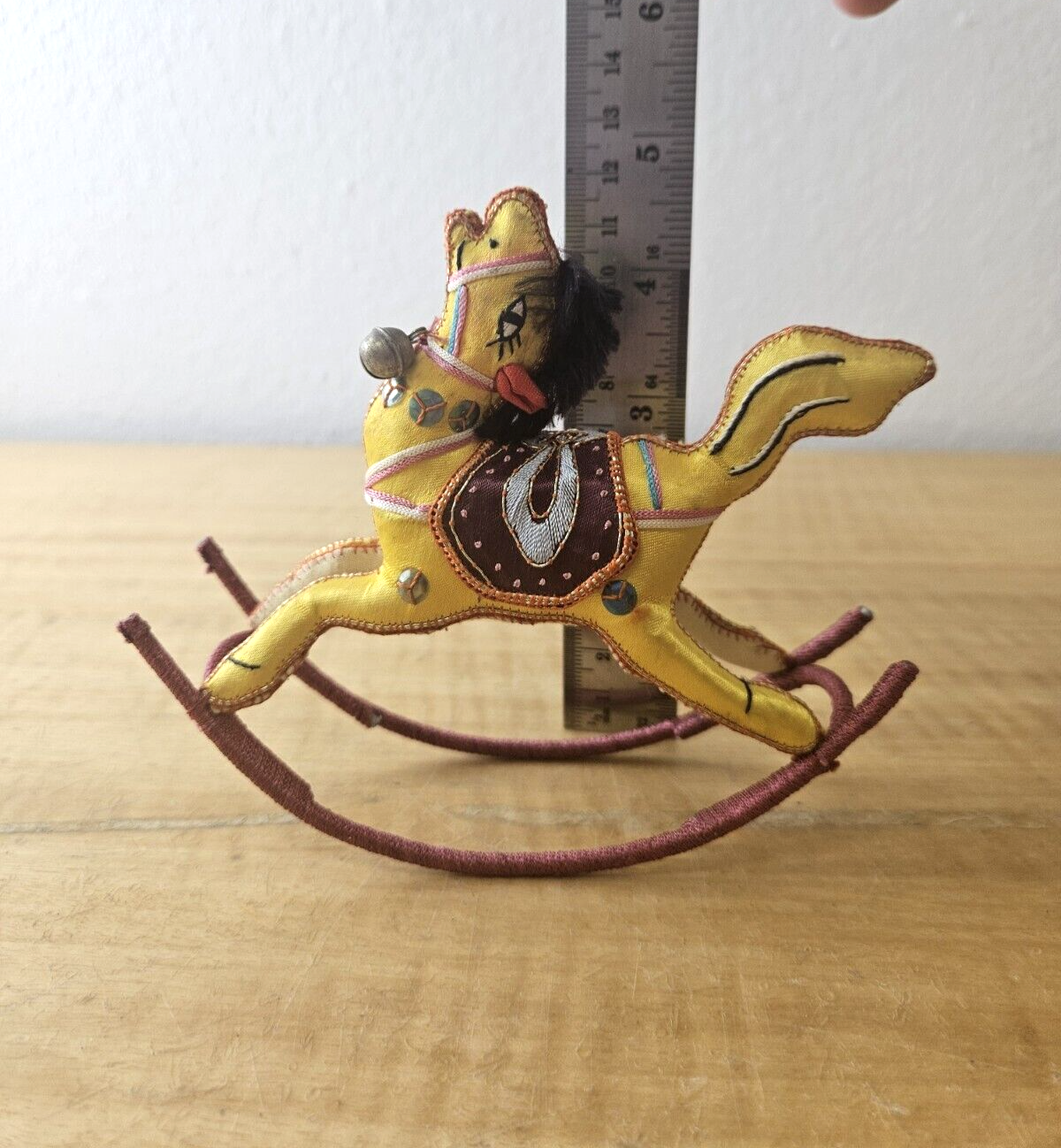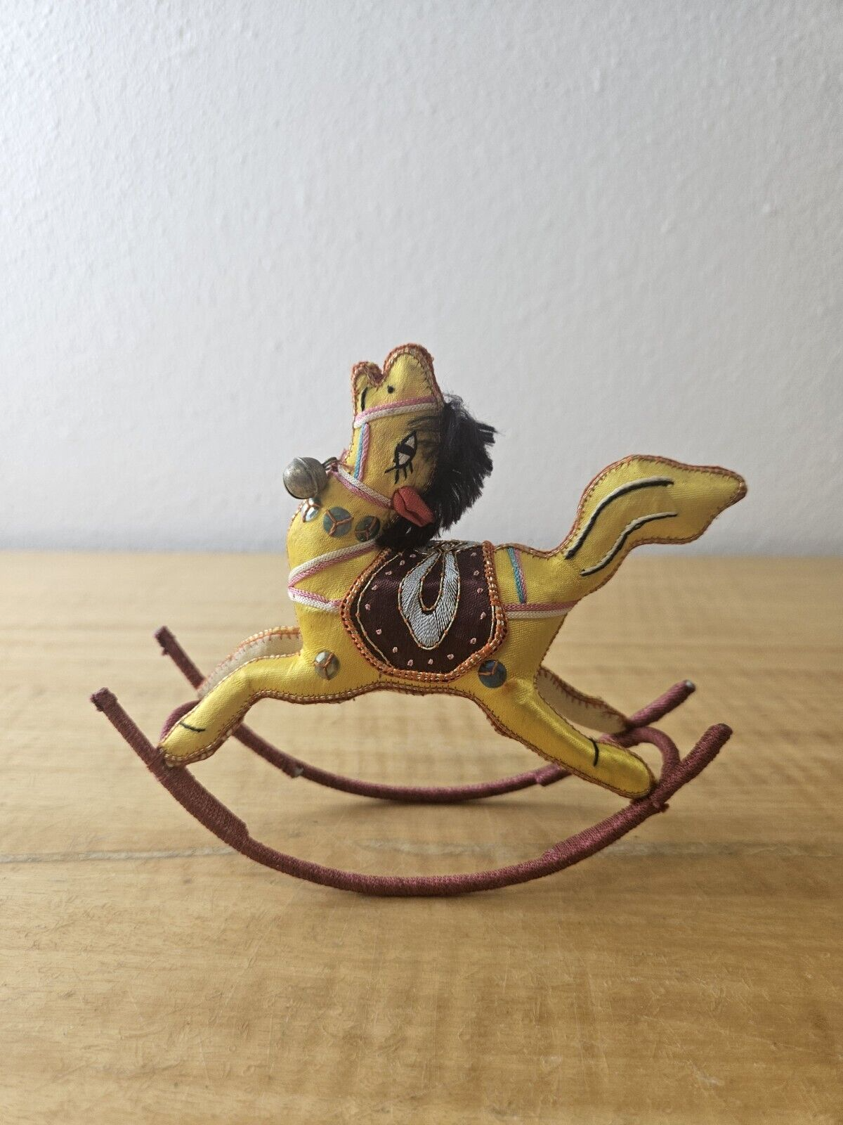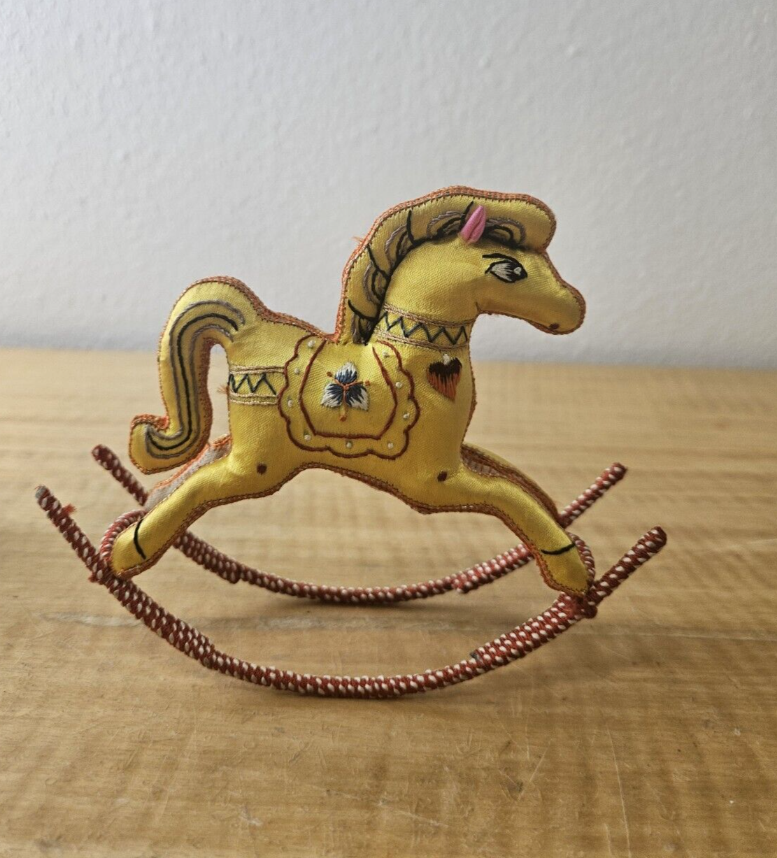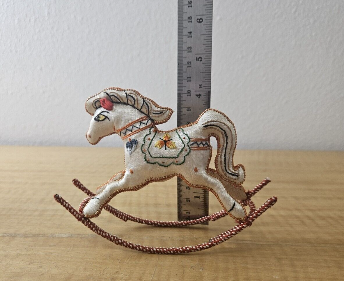 Satin Silk Rocking Horse Christmas Ornament Embroidered 1 piece, YELLOW