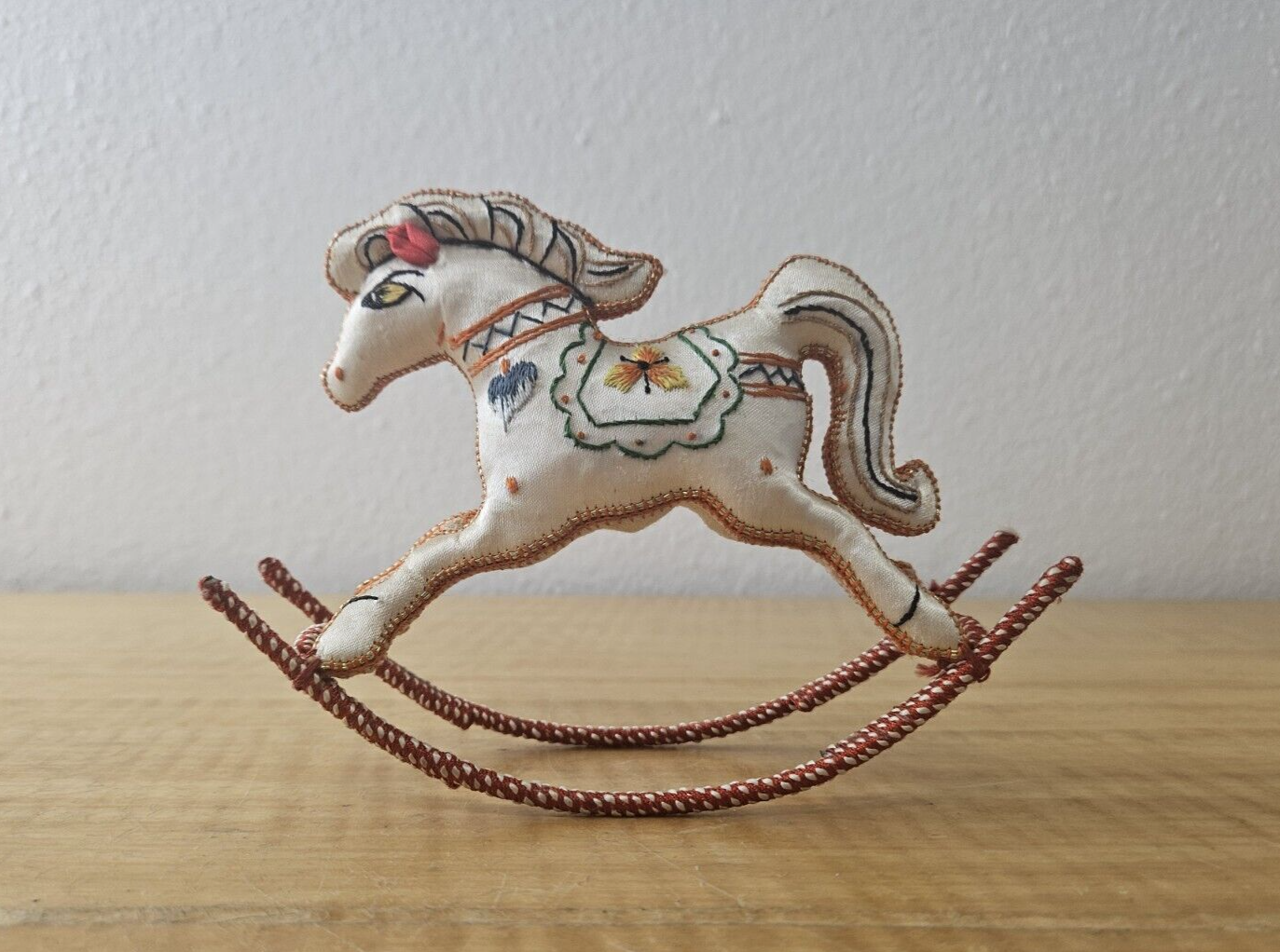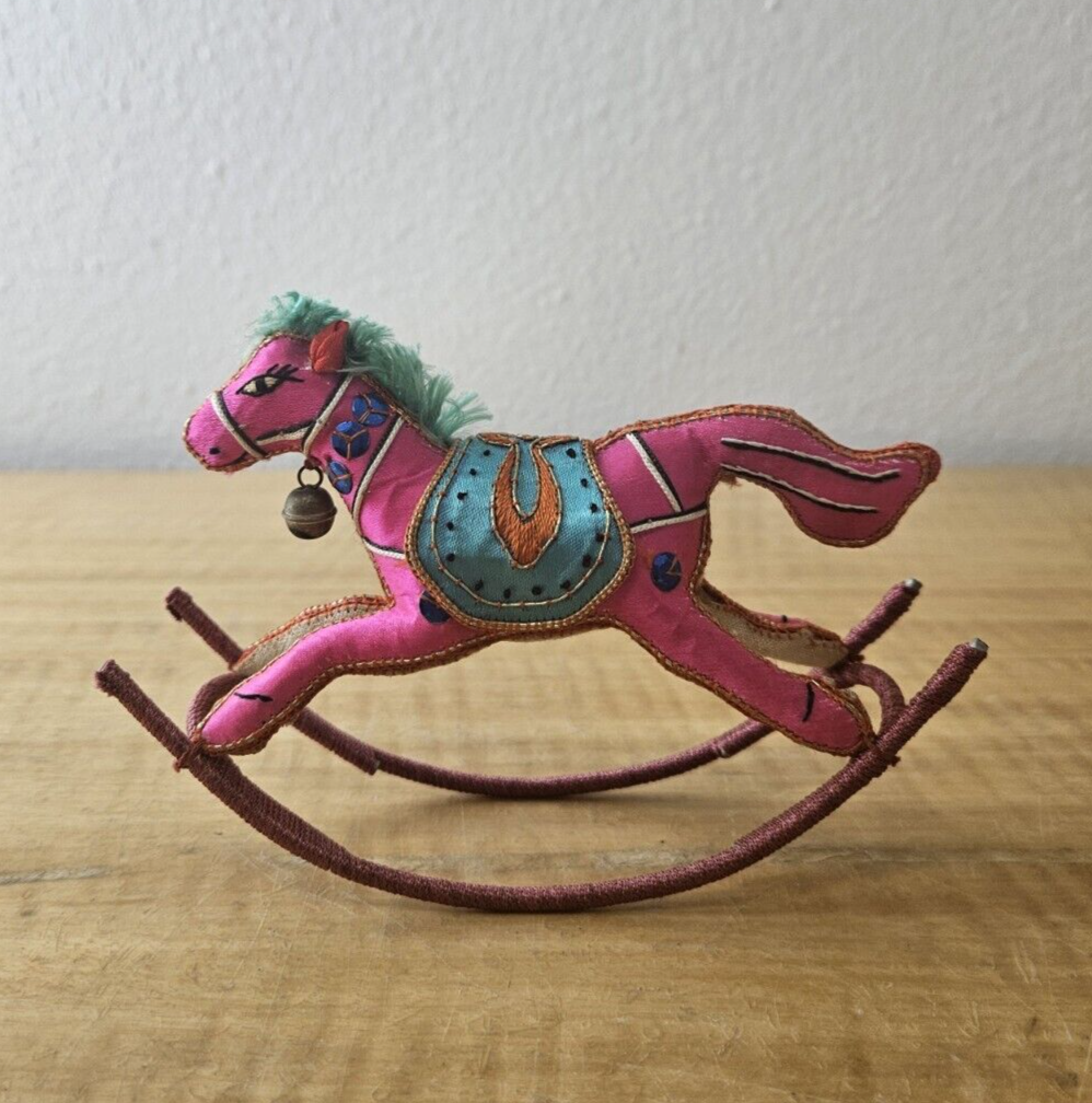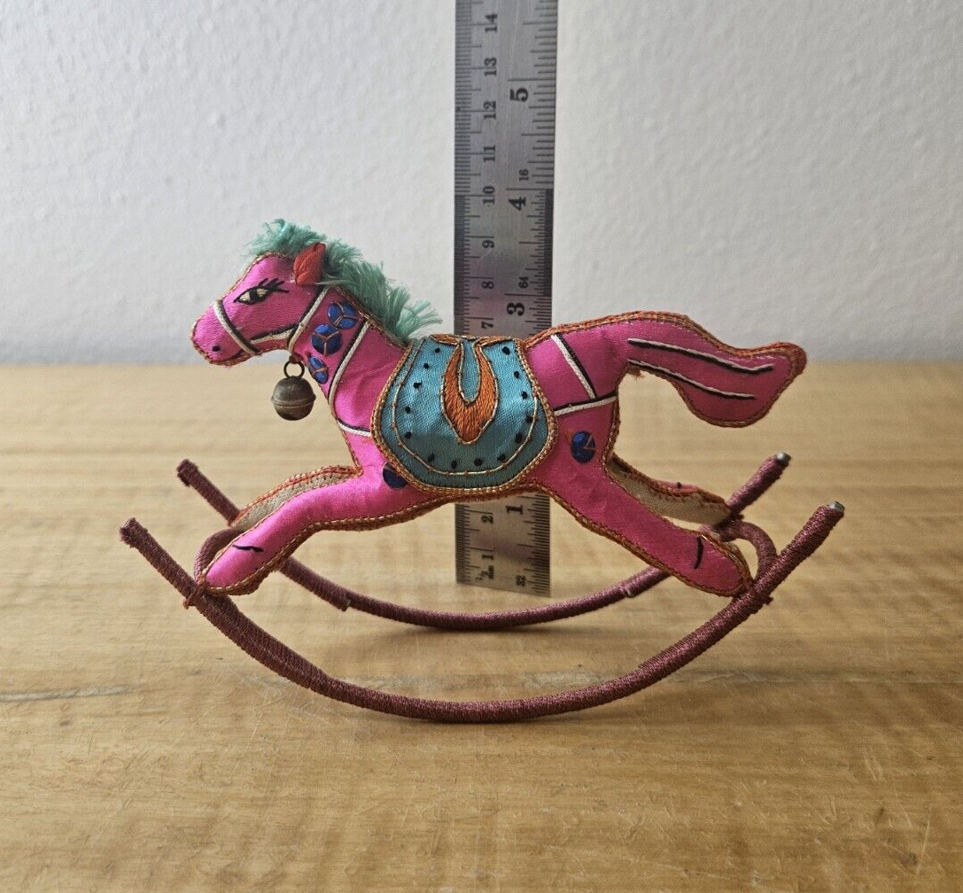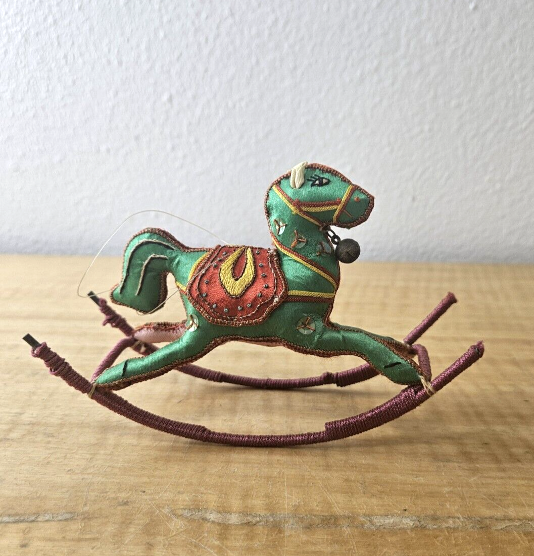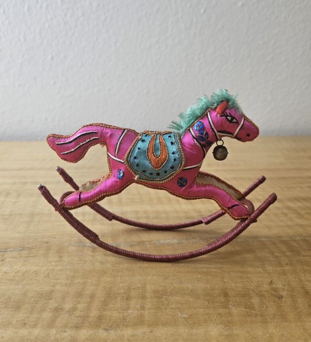 Satin Silk Rocking Horse Christmas Ornament Embroidered 1 piece, YELLOW