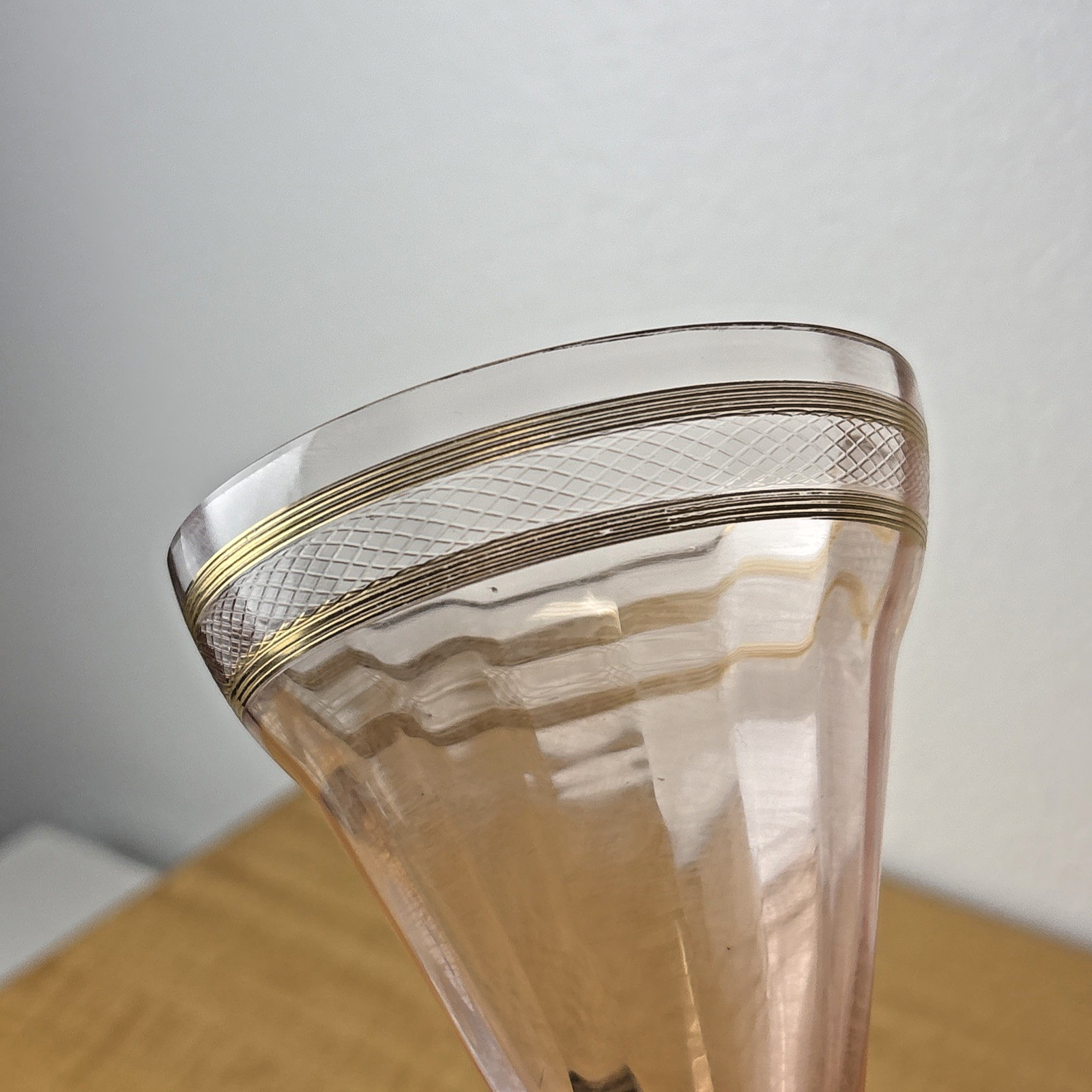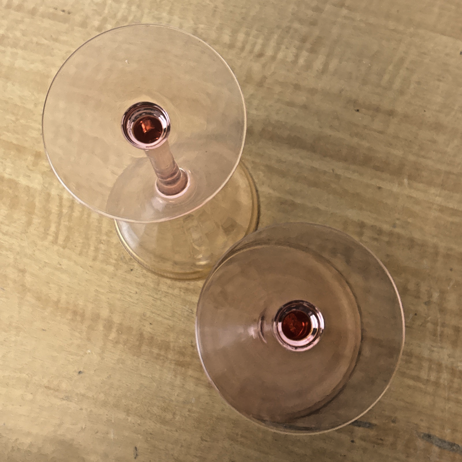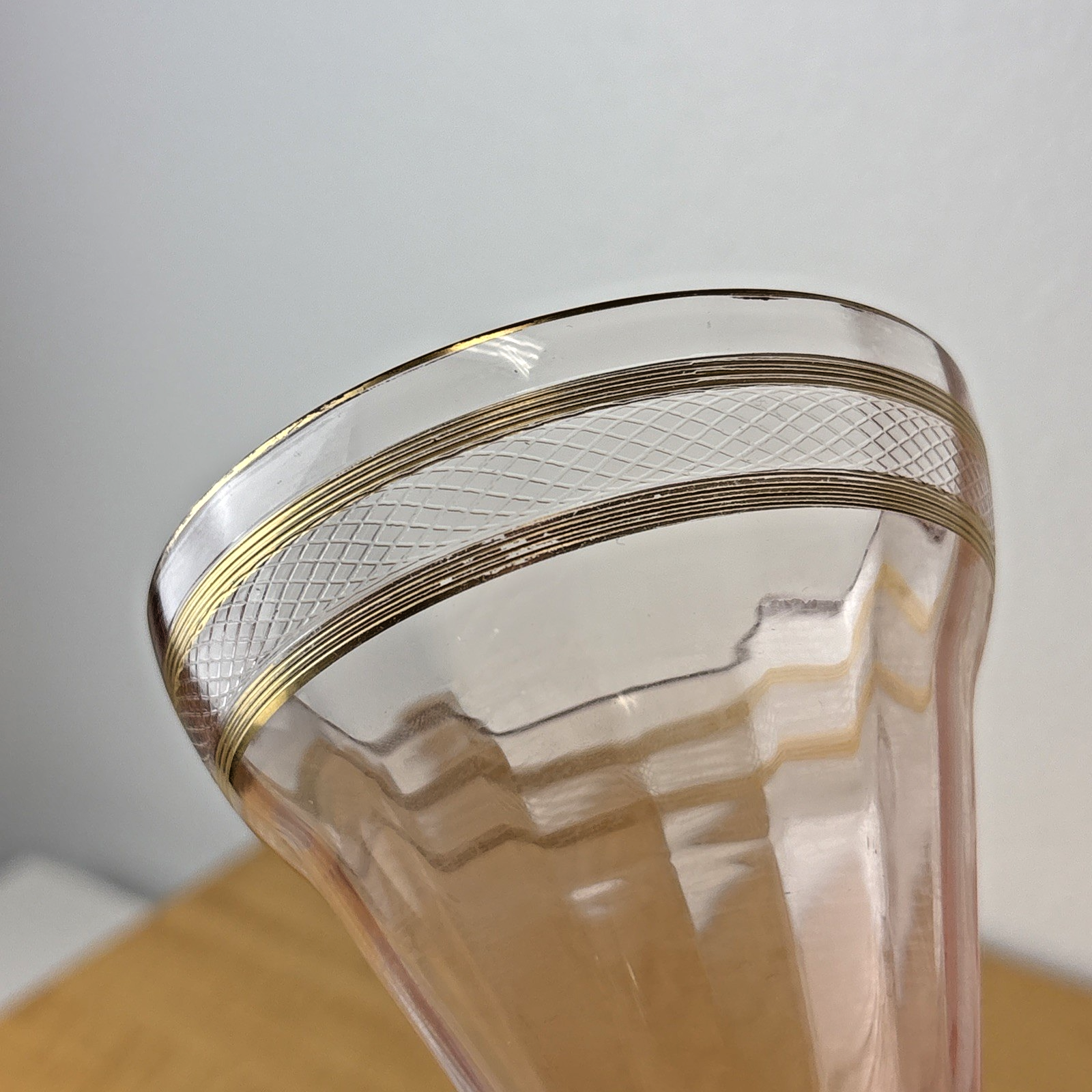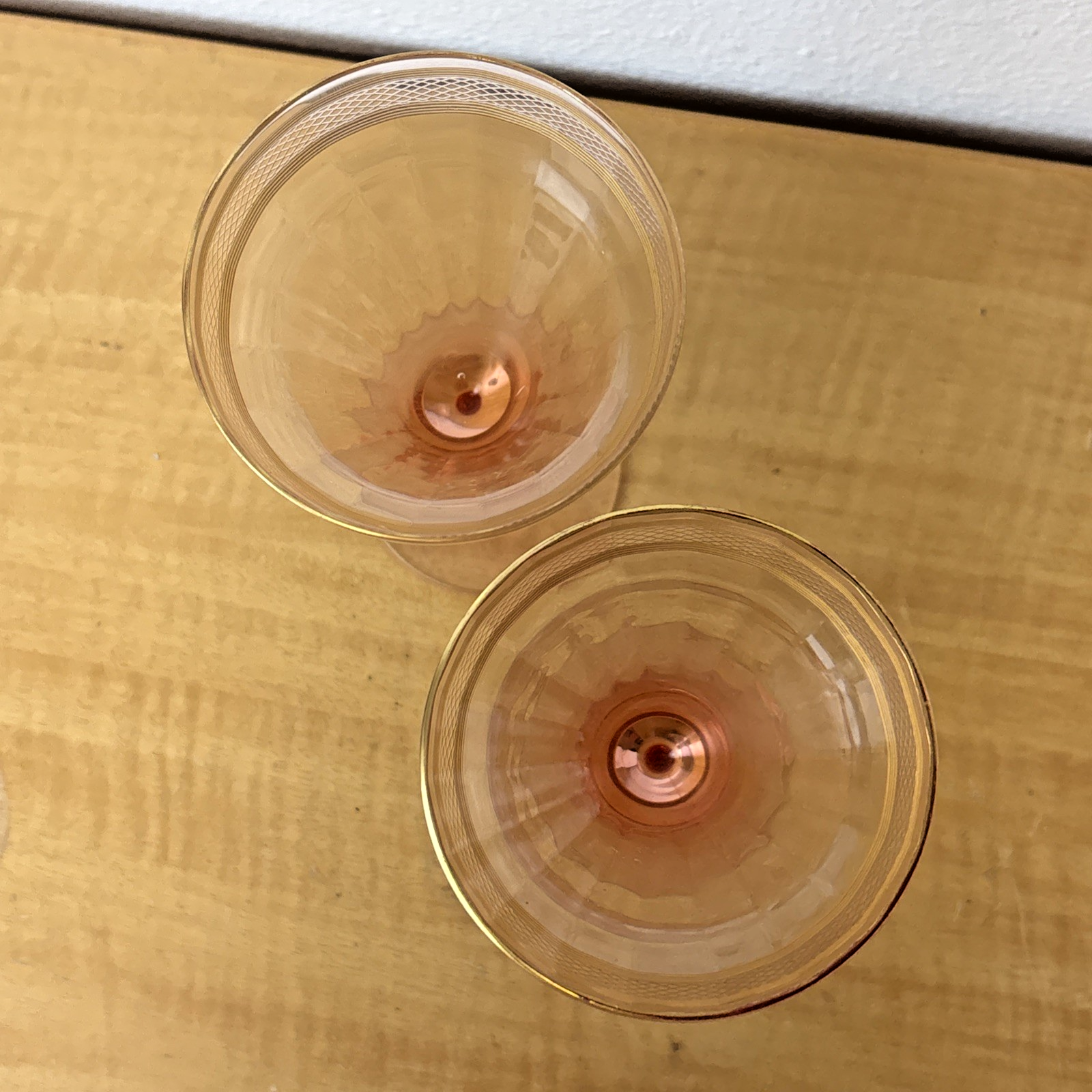 Set of 2 Pink Depression Glass Gold Trim & Etched Glasses