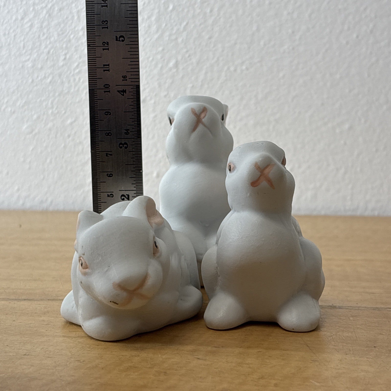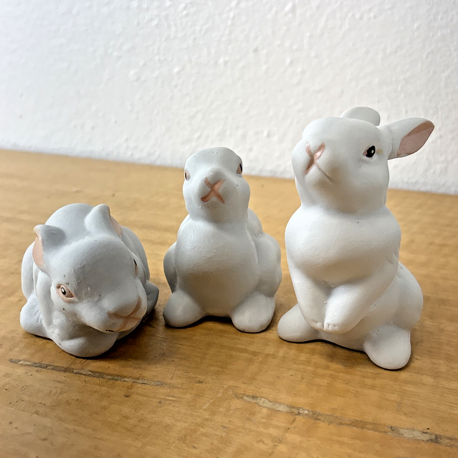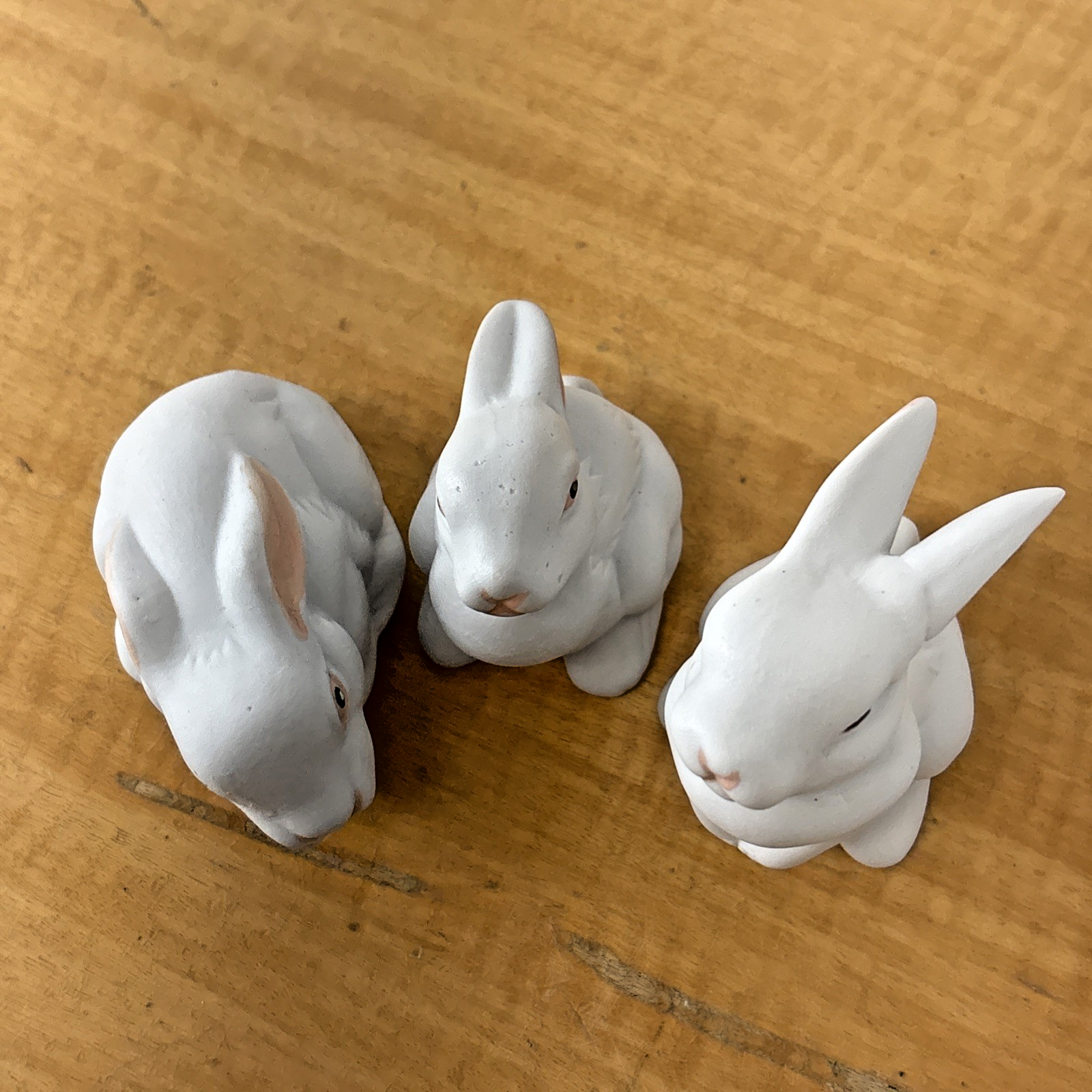 Set of 3 Ceramic White Bunny / Bunnies Pink Nose