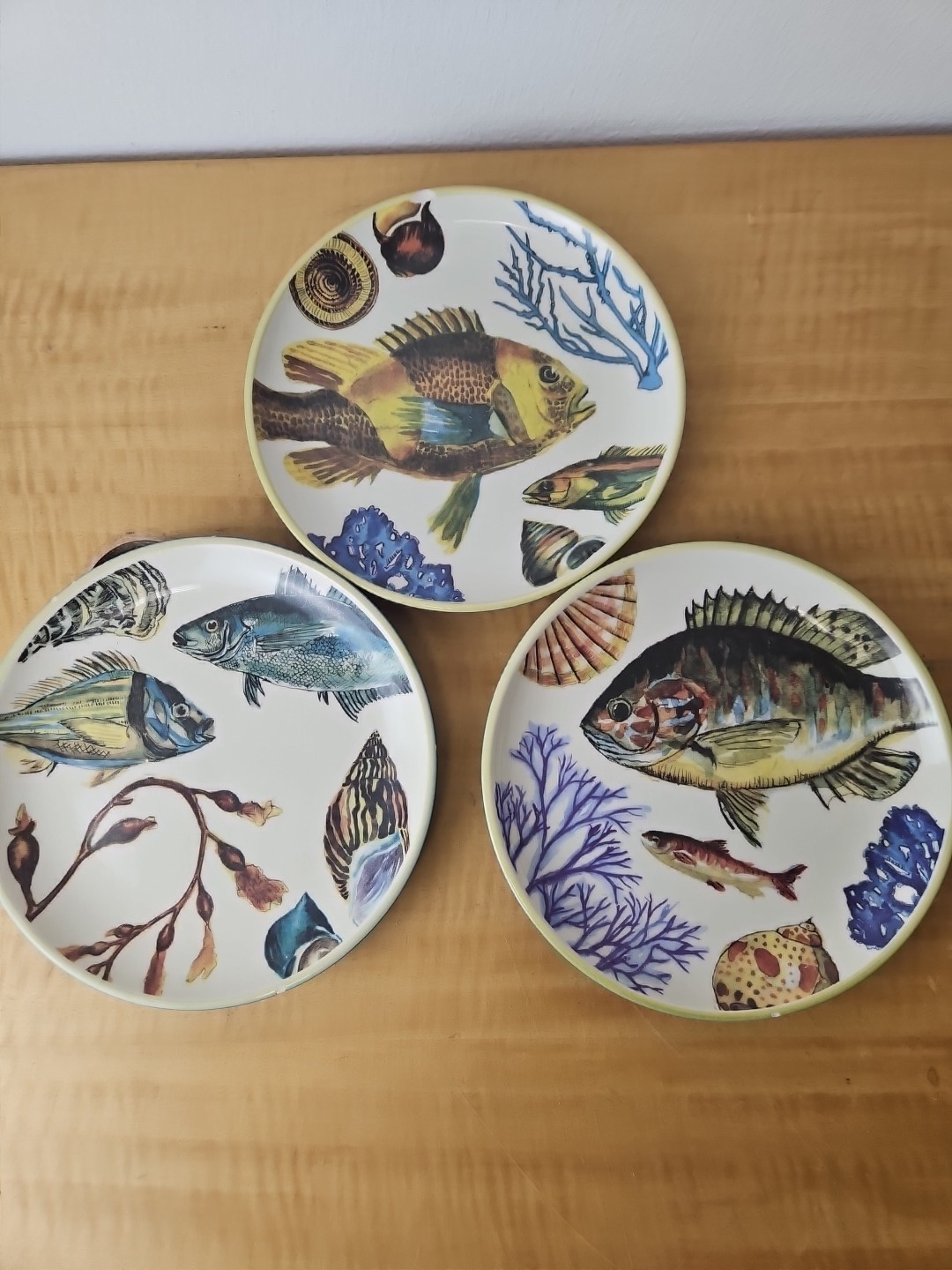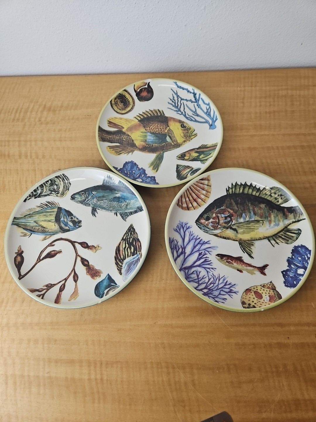 set of 3 Williams Sonoma 2012 POISSON MARC LACAZE fish plates 8 3/4"