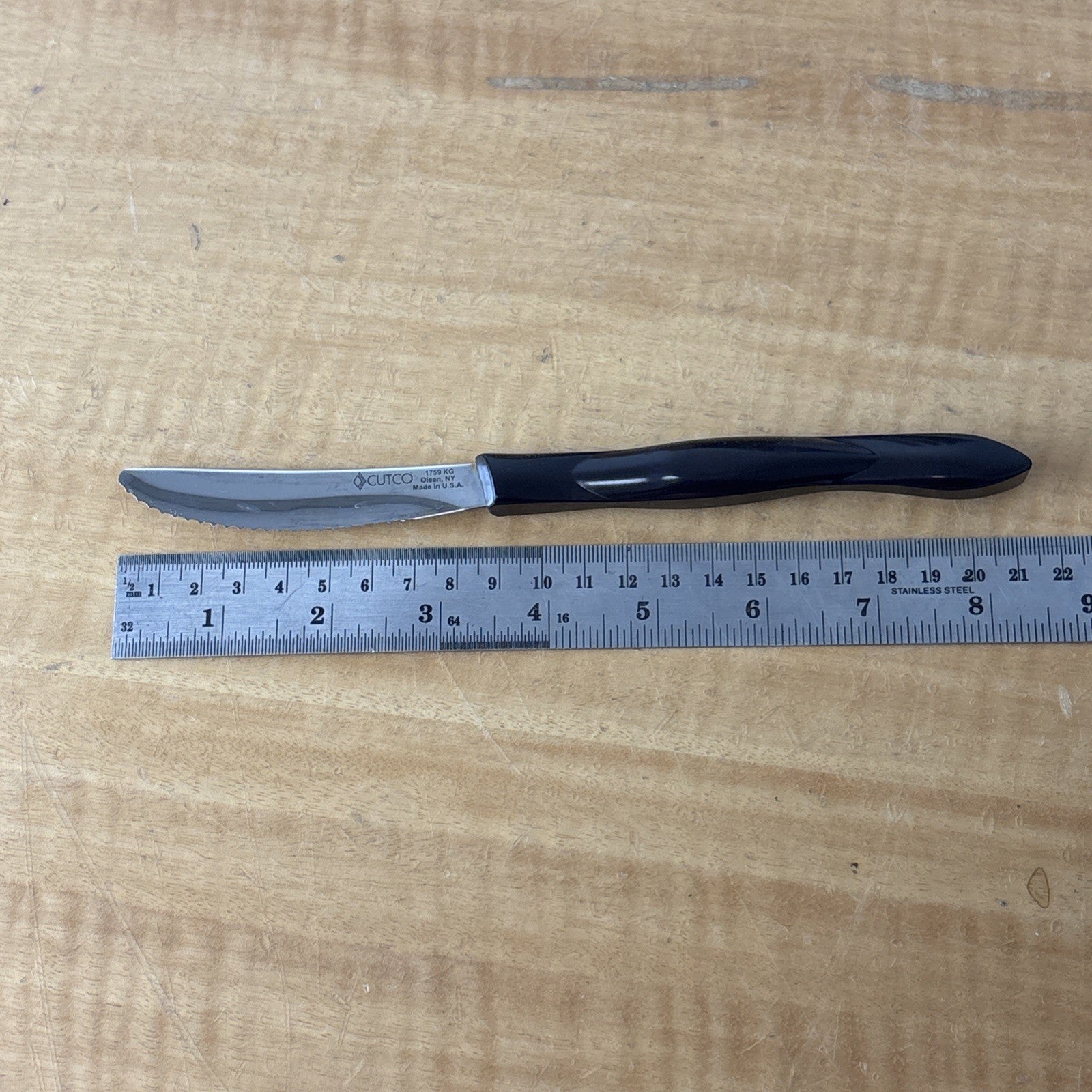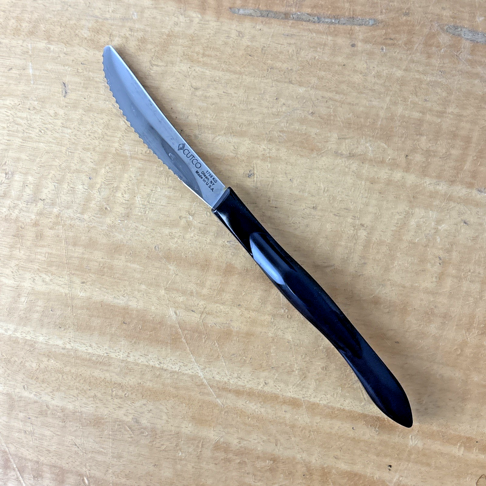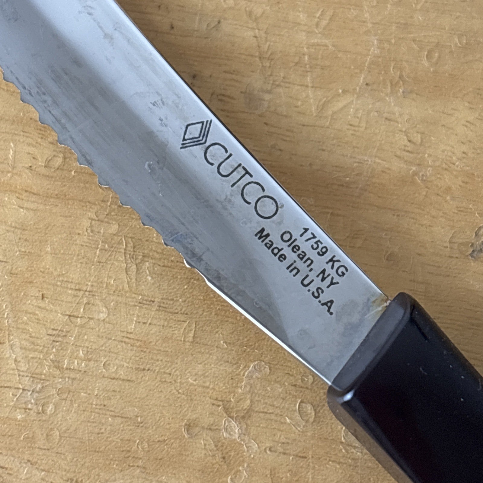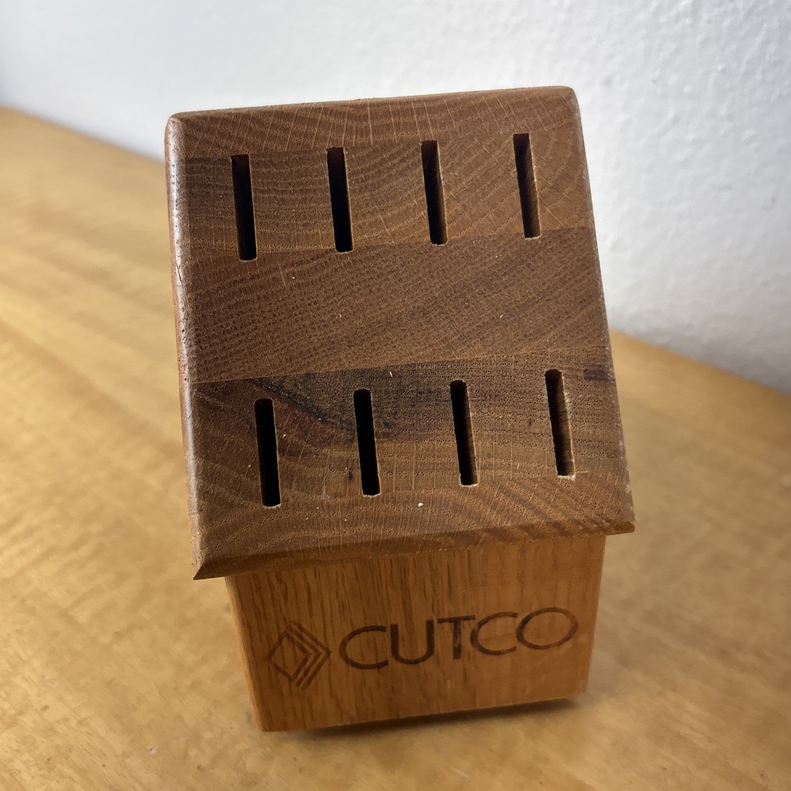 Set of 8 Eight Cutco 1759 KG Serrated Brown Handle Knives w/ Wooden Knife Block
