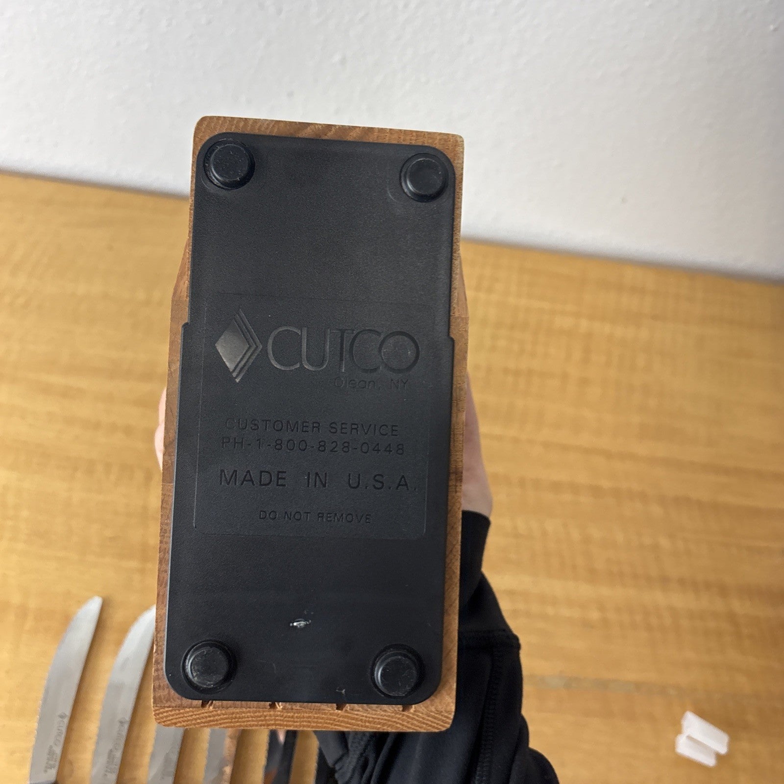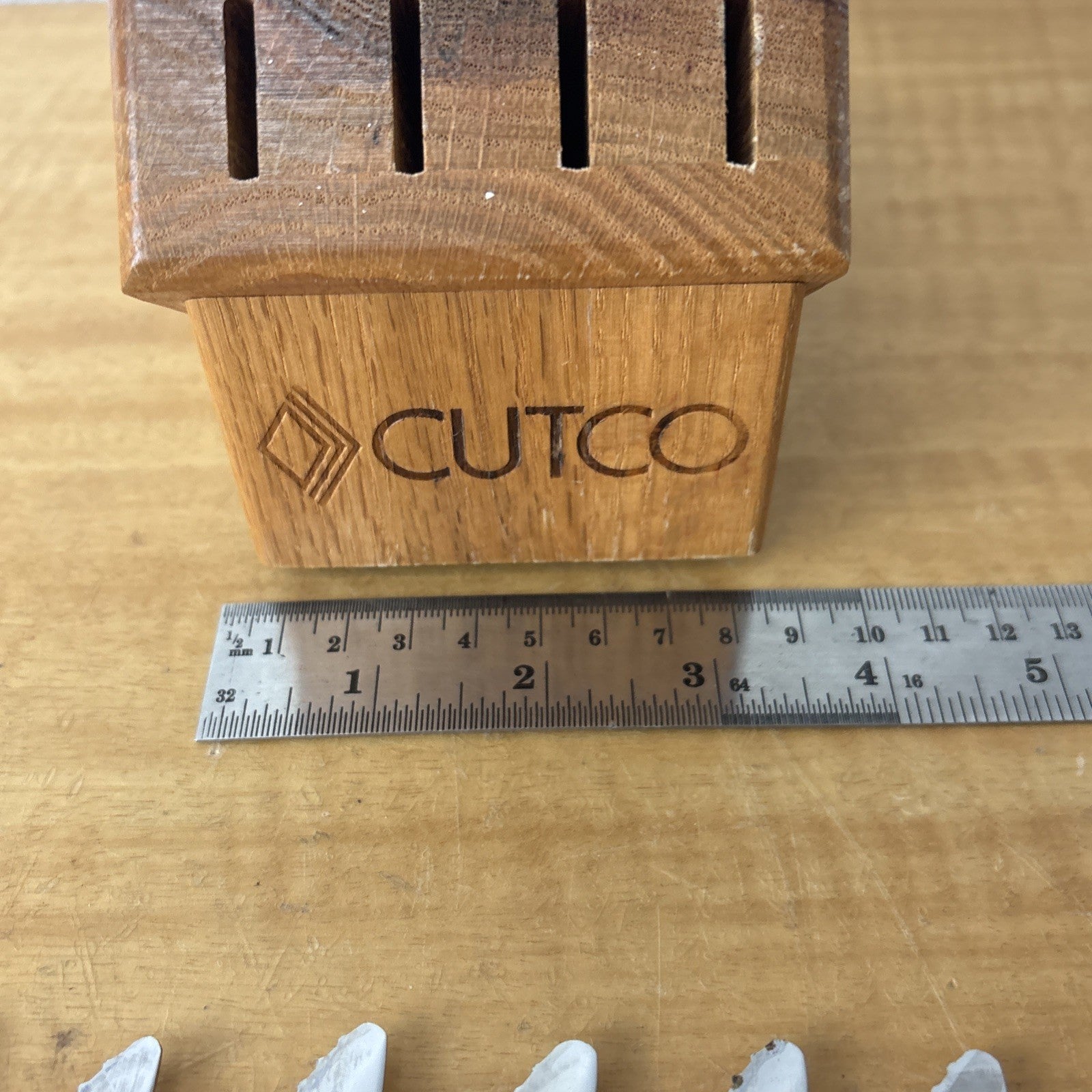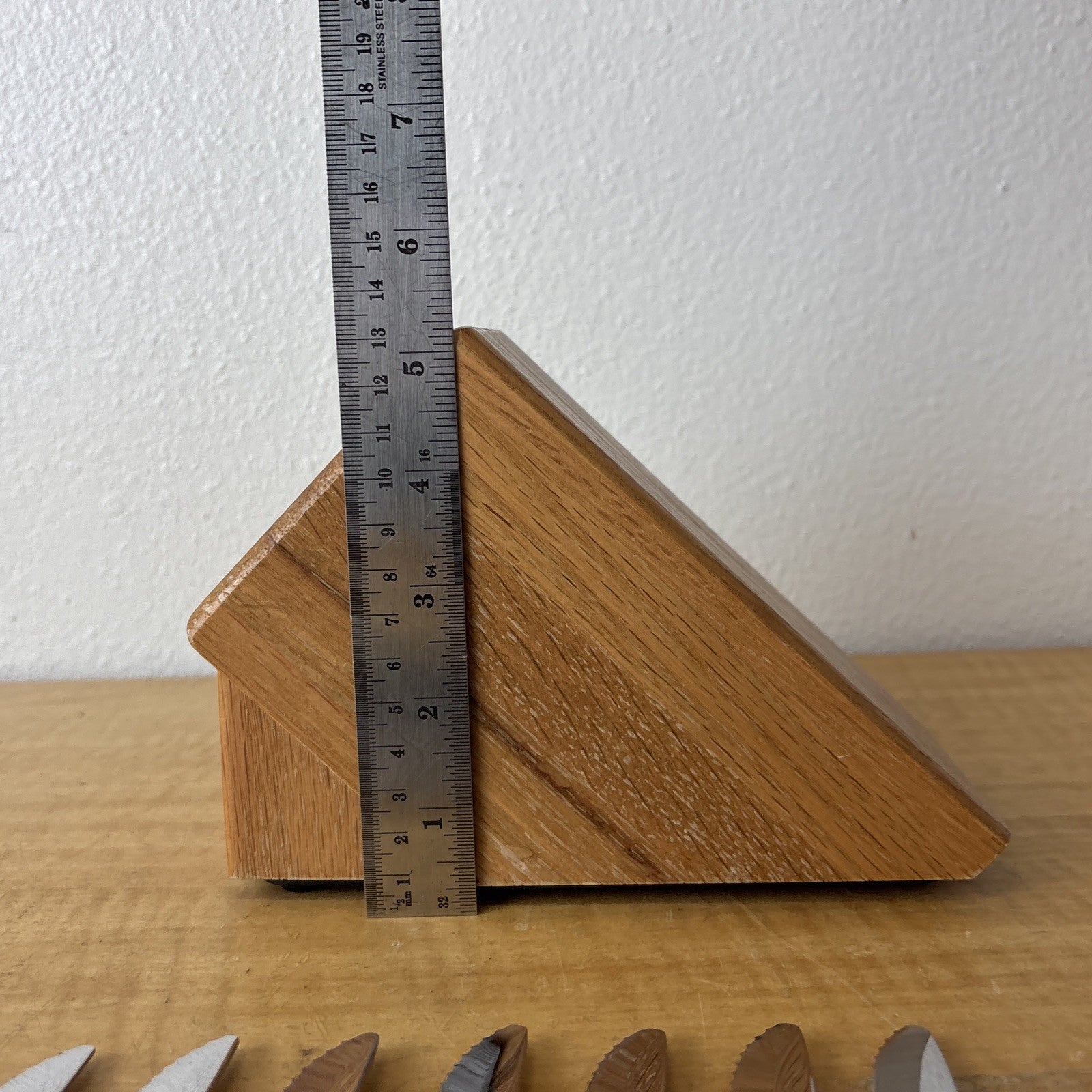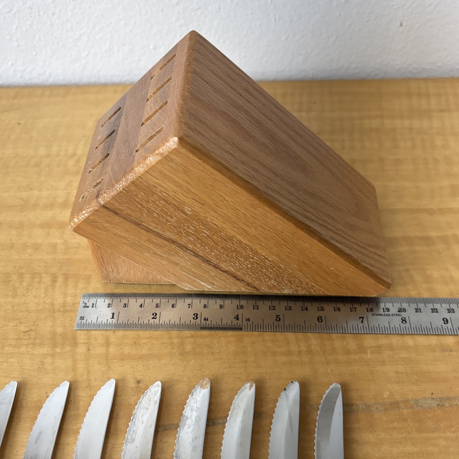 Set of 8 Eight Cutco 1759 KG Serrated Brown Handle Knives w/ Wooden Knife Block