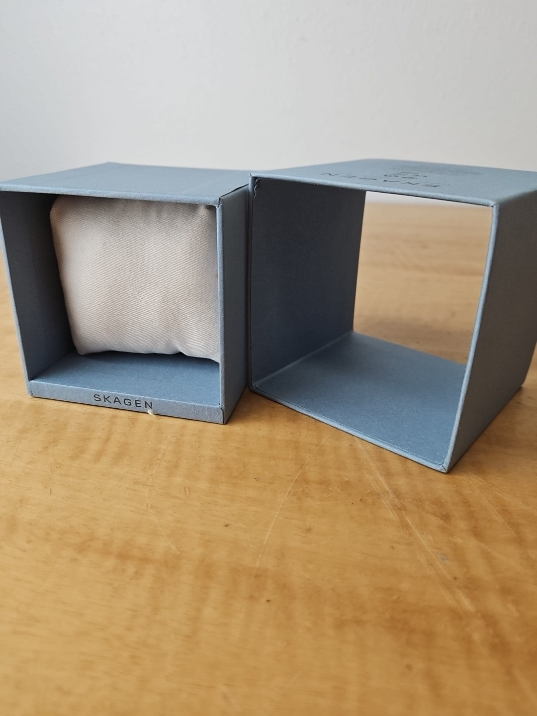 SKAGEN Storage Box with Pillow for a watch, empty blue, slide box