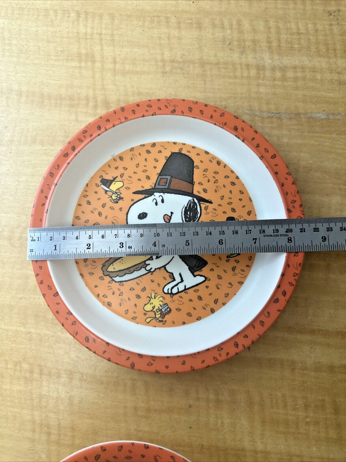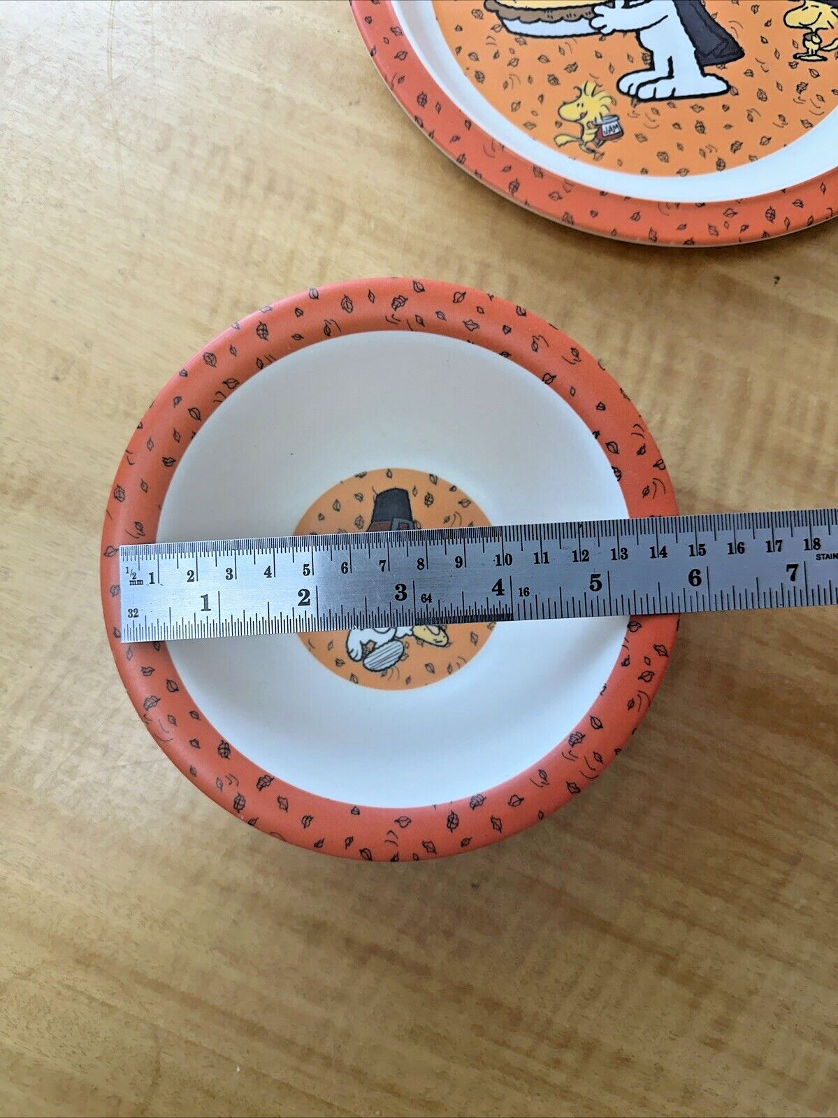 Snoopy Plate Bowl Thanksgiving Woodstock Pilgrim Peanuts Kids Set Melamine