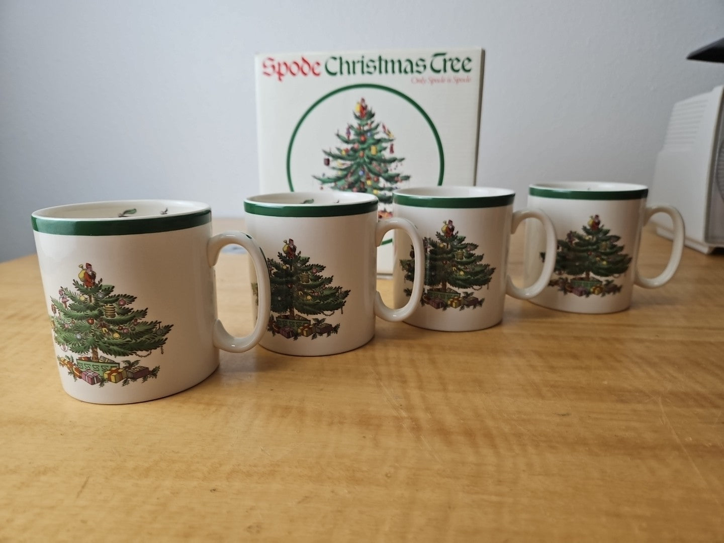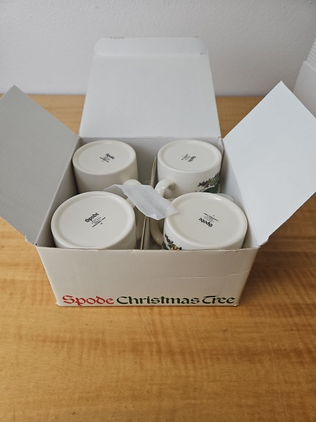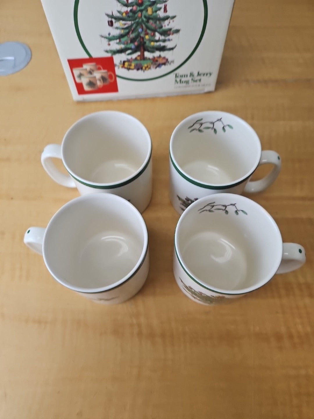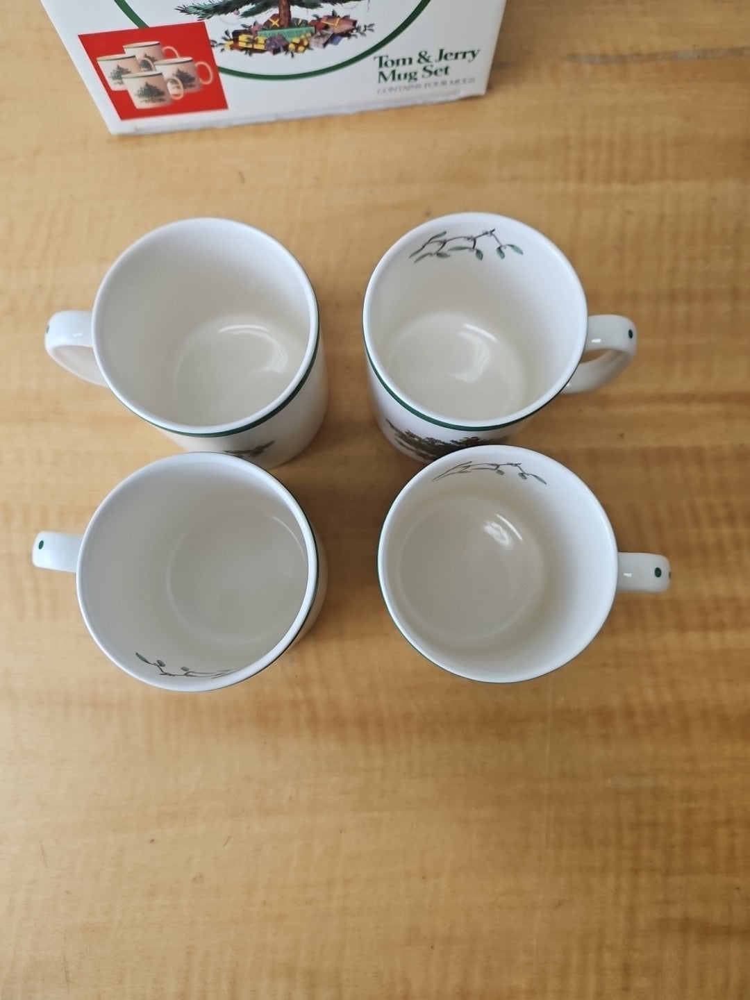SPODE Christmas Tree Tom & Jerry Mug SET of 4 Mugs Vintage Holiday ENGLAND box