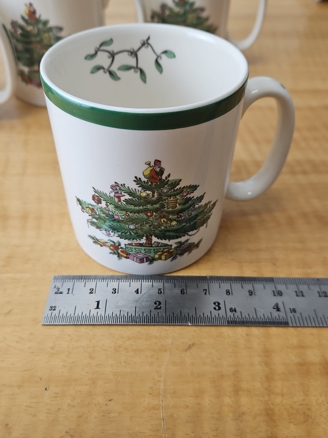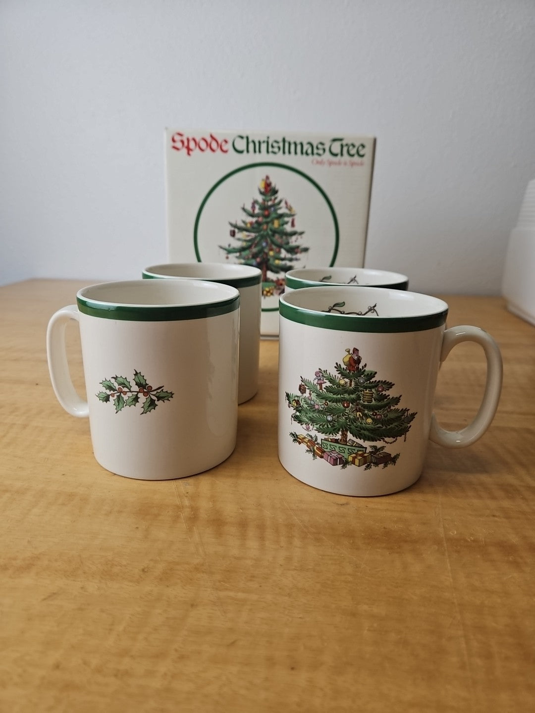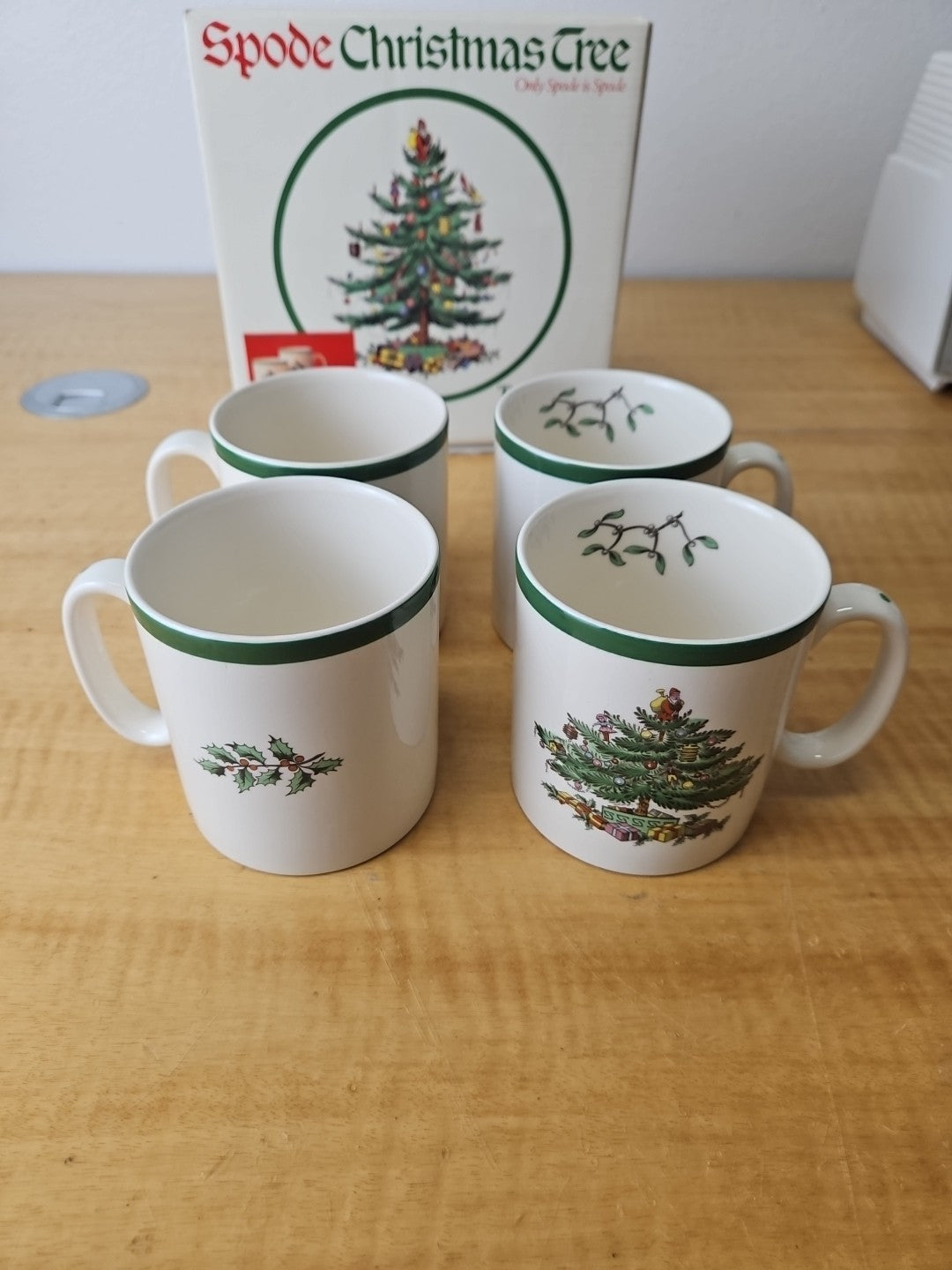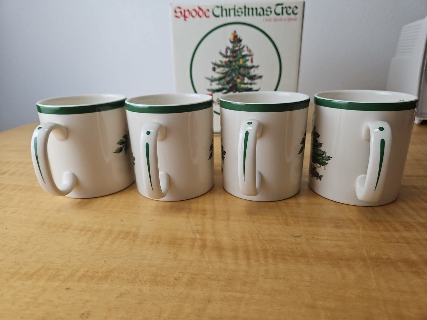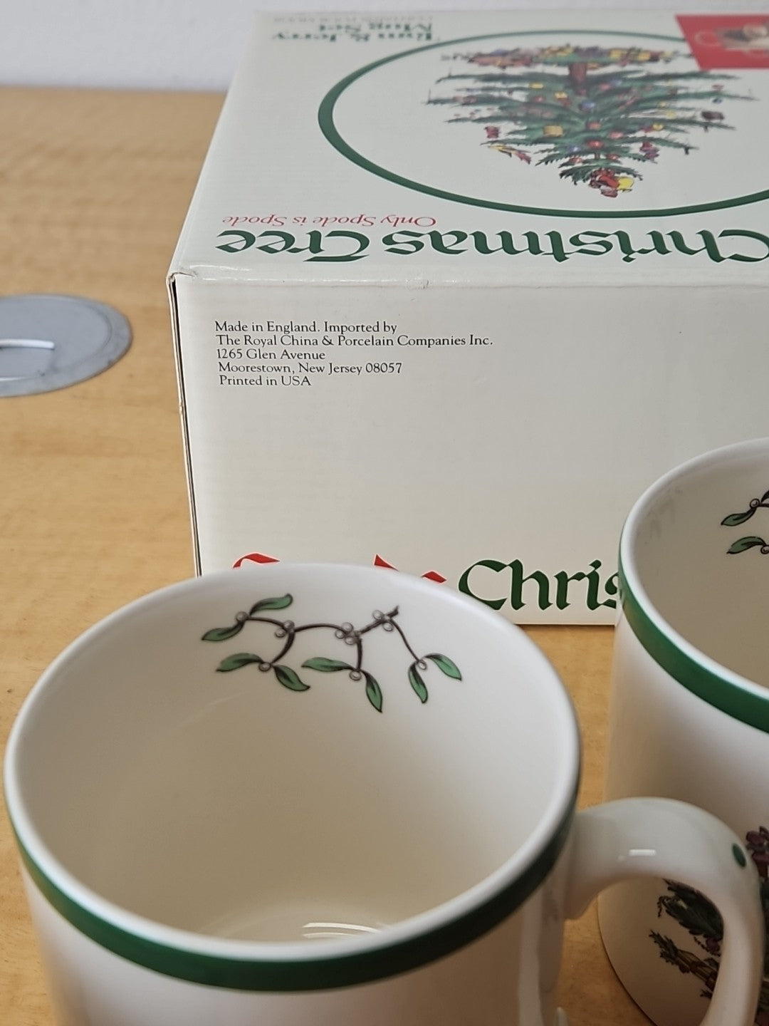 SPODE Christmas Tree Tom & Jerry Mug SET of 4 Mugs Vintage Holiday ENGLAND box