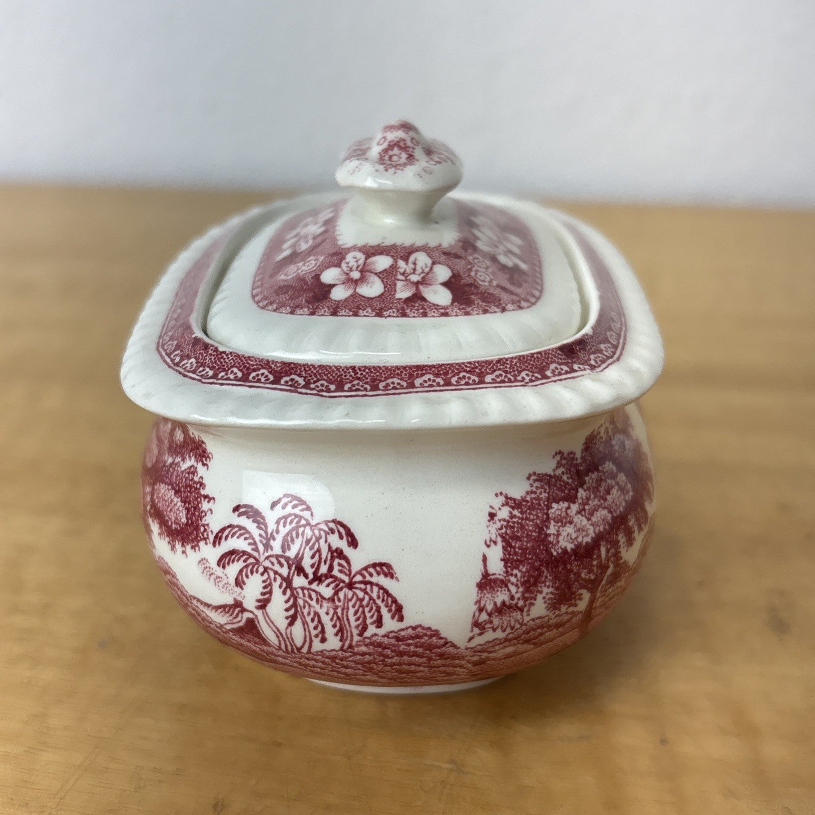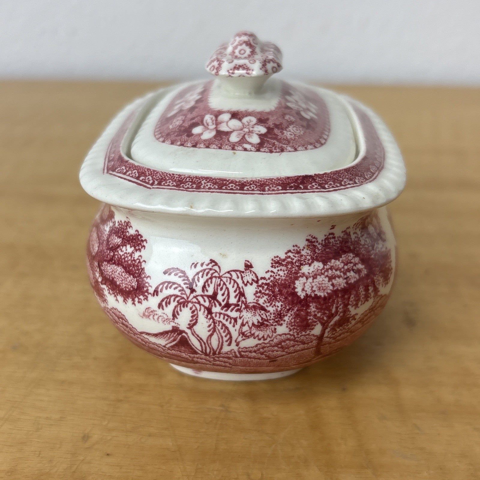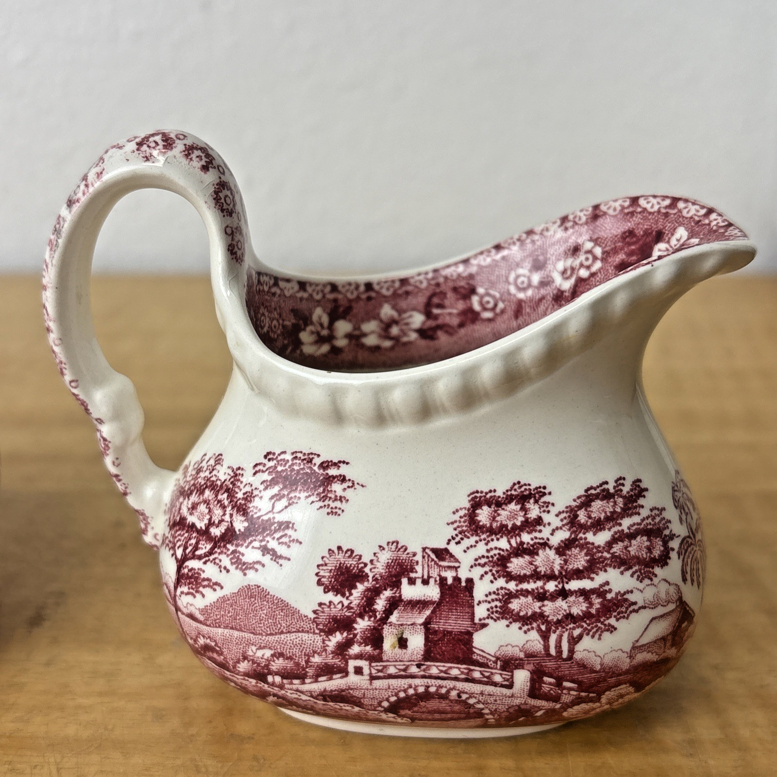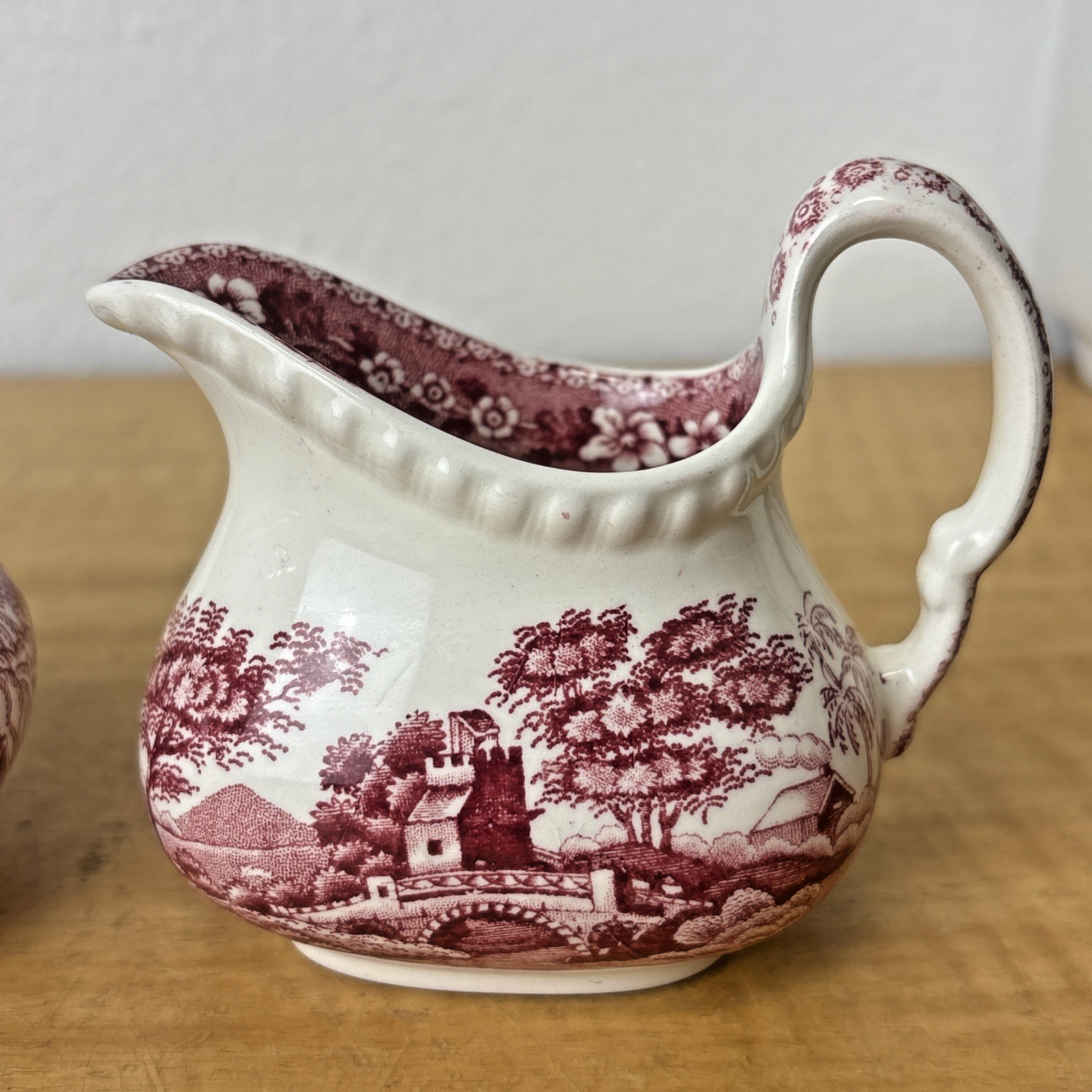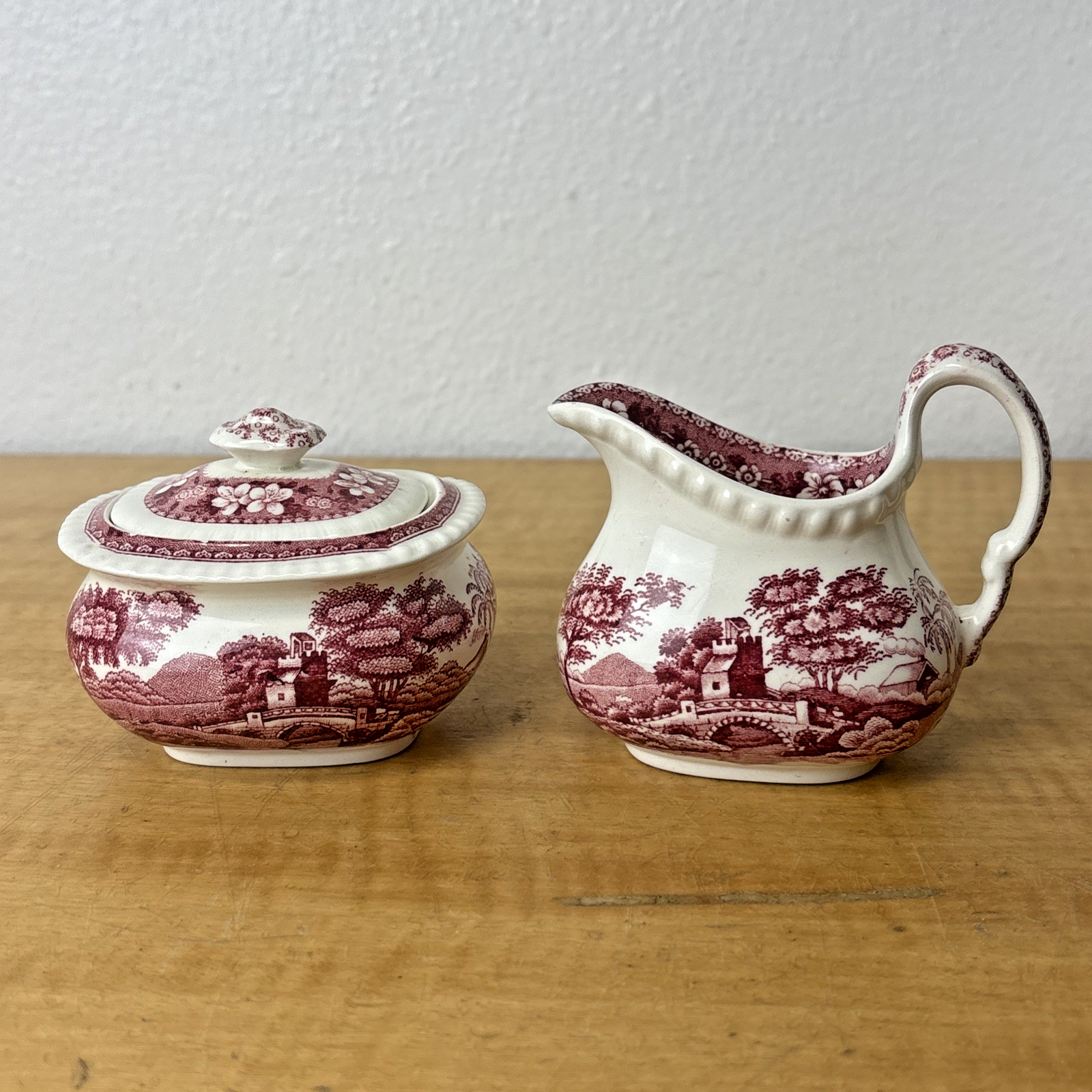 Spode Pink Tower Creamer and Covered Sugar Bowl Bone China England Old Mark