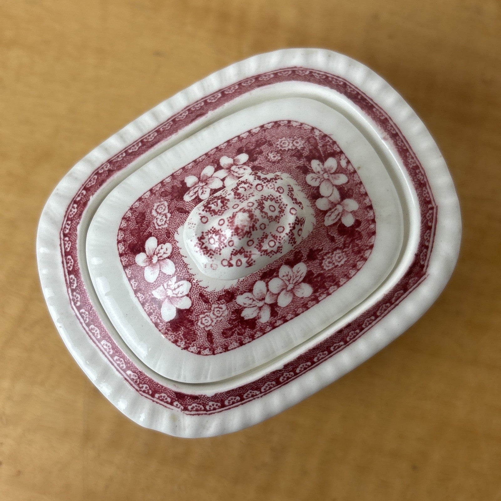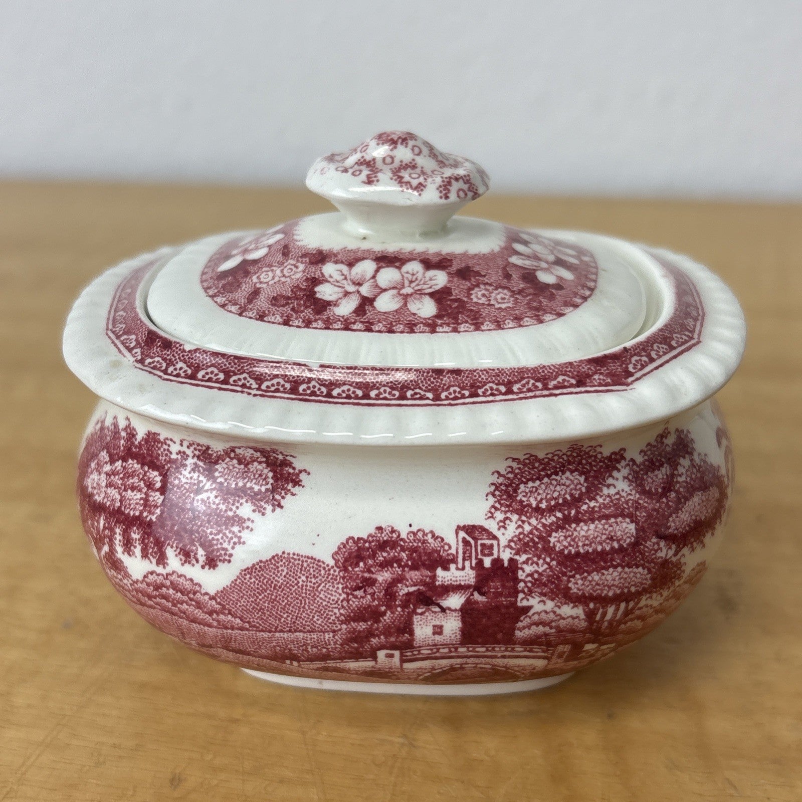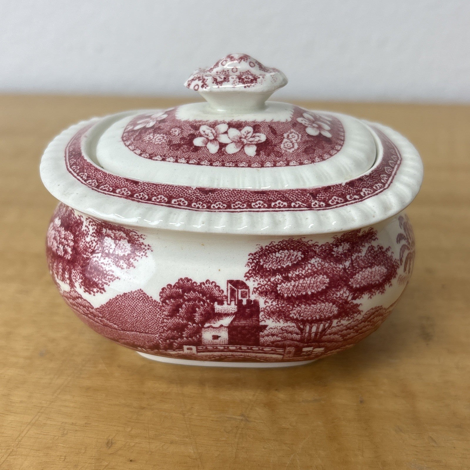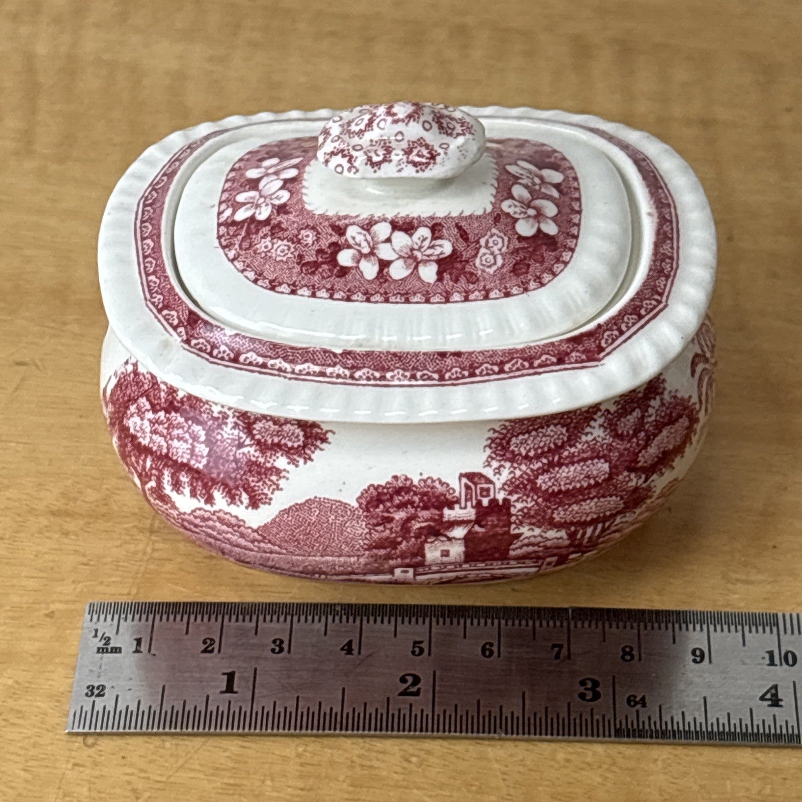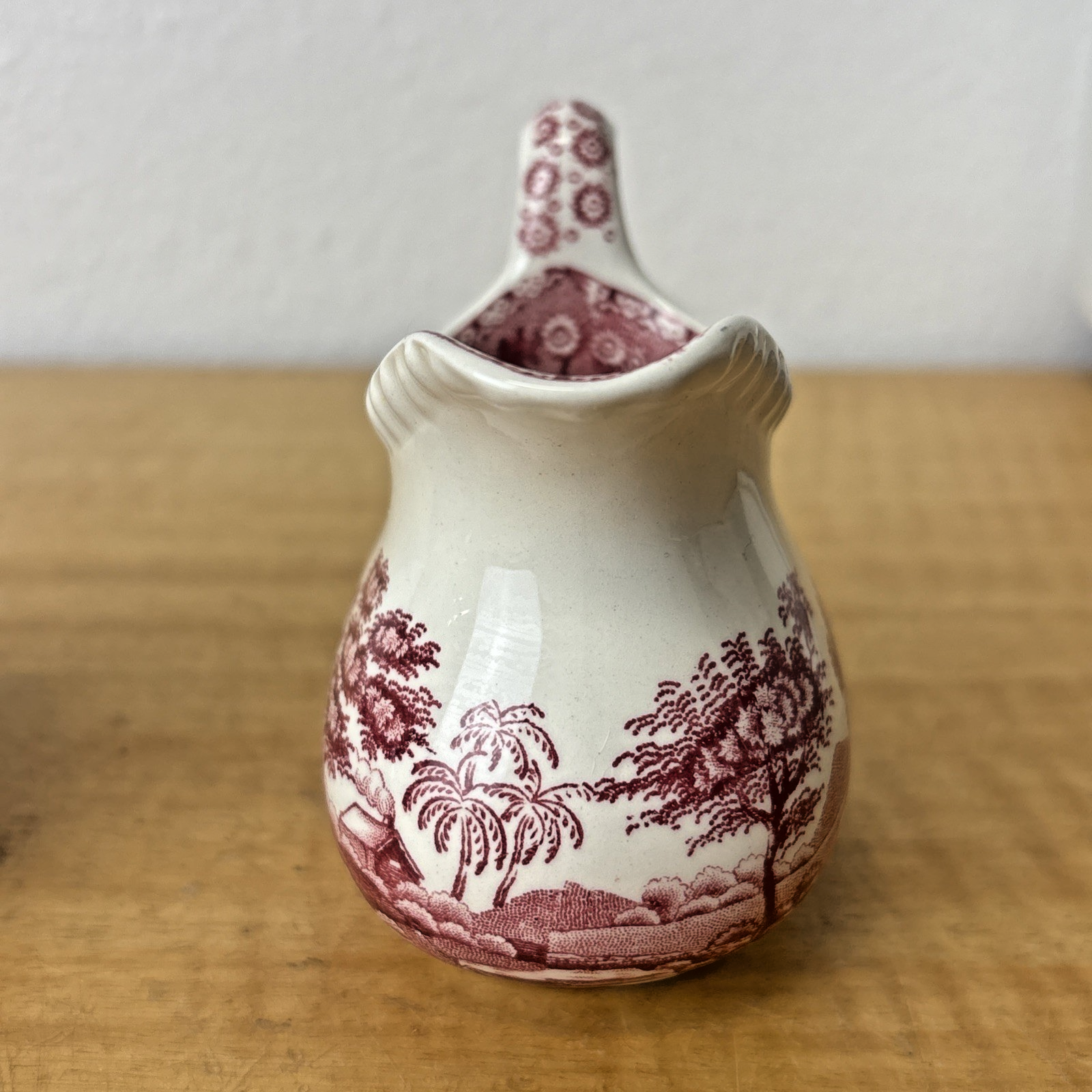 Spode Pink Tower Creamer and Covered Sugar Bowl Bone China England Old Mark