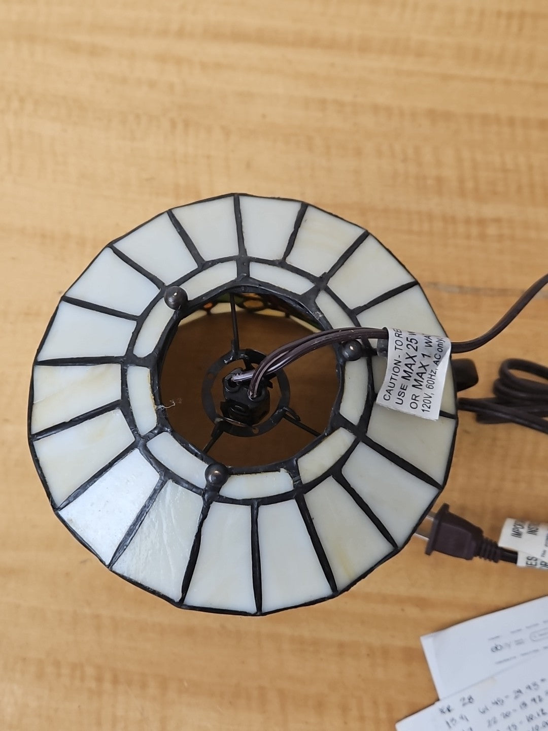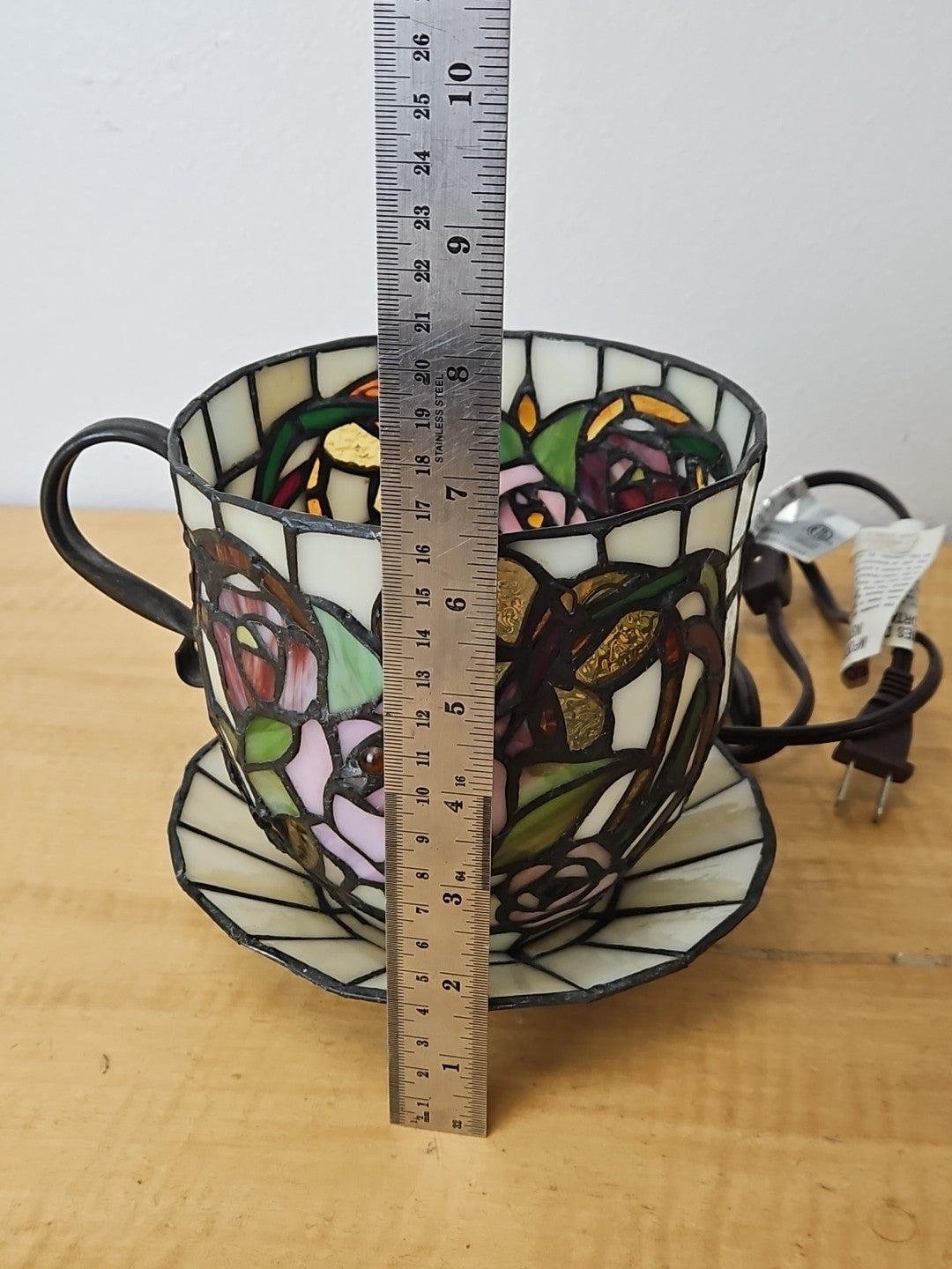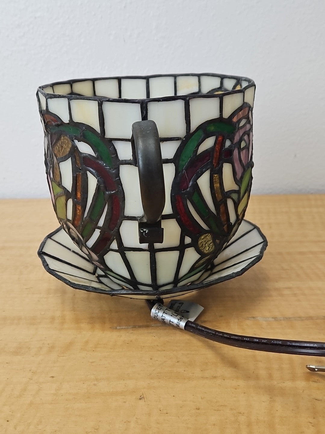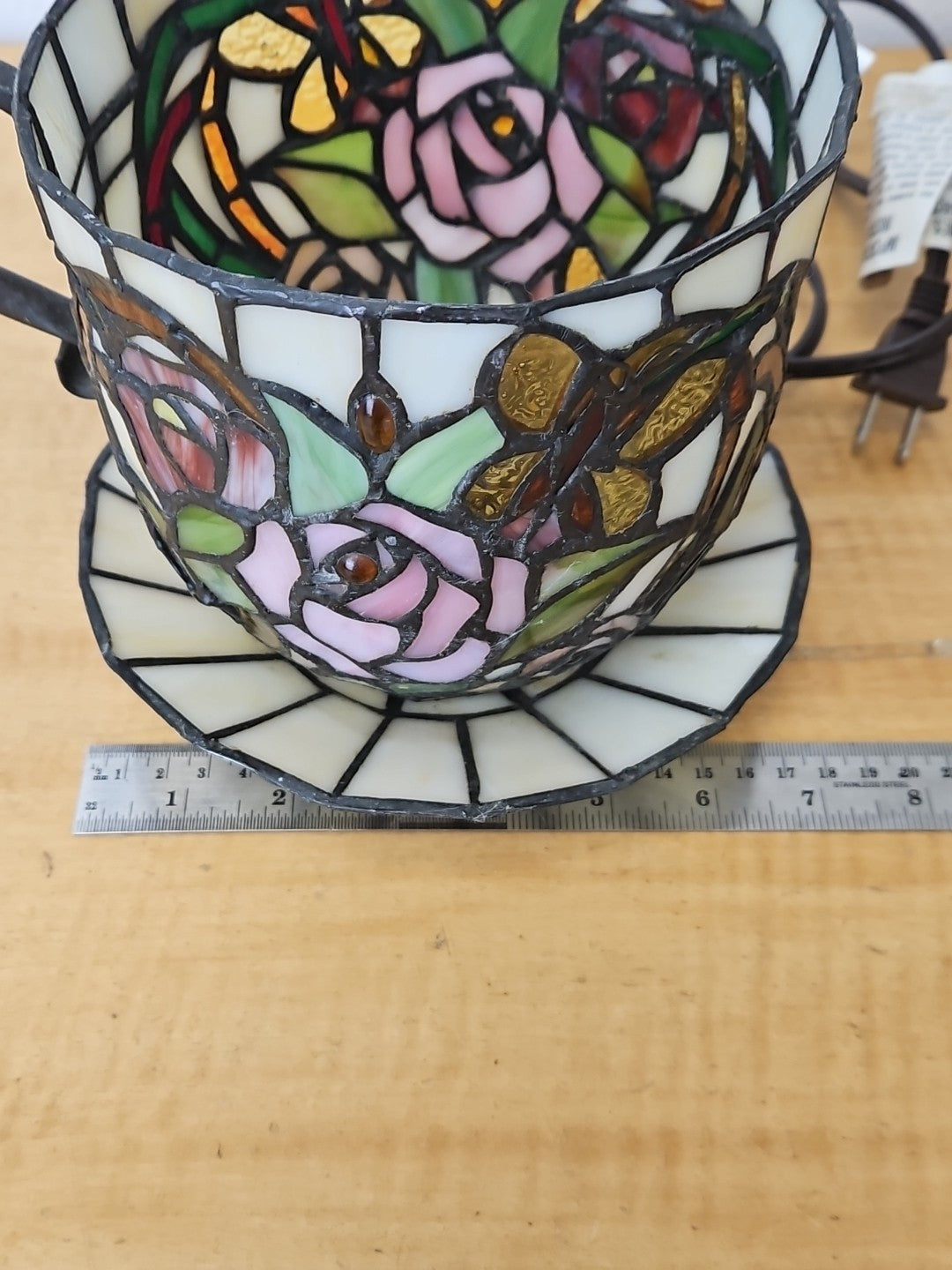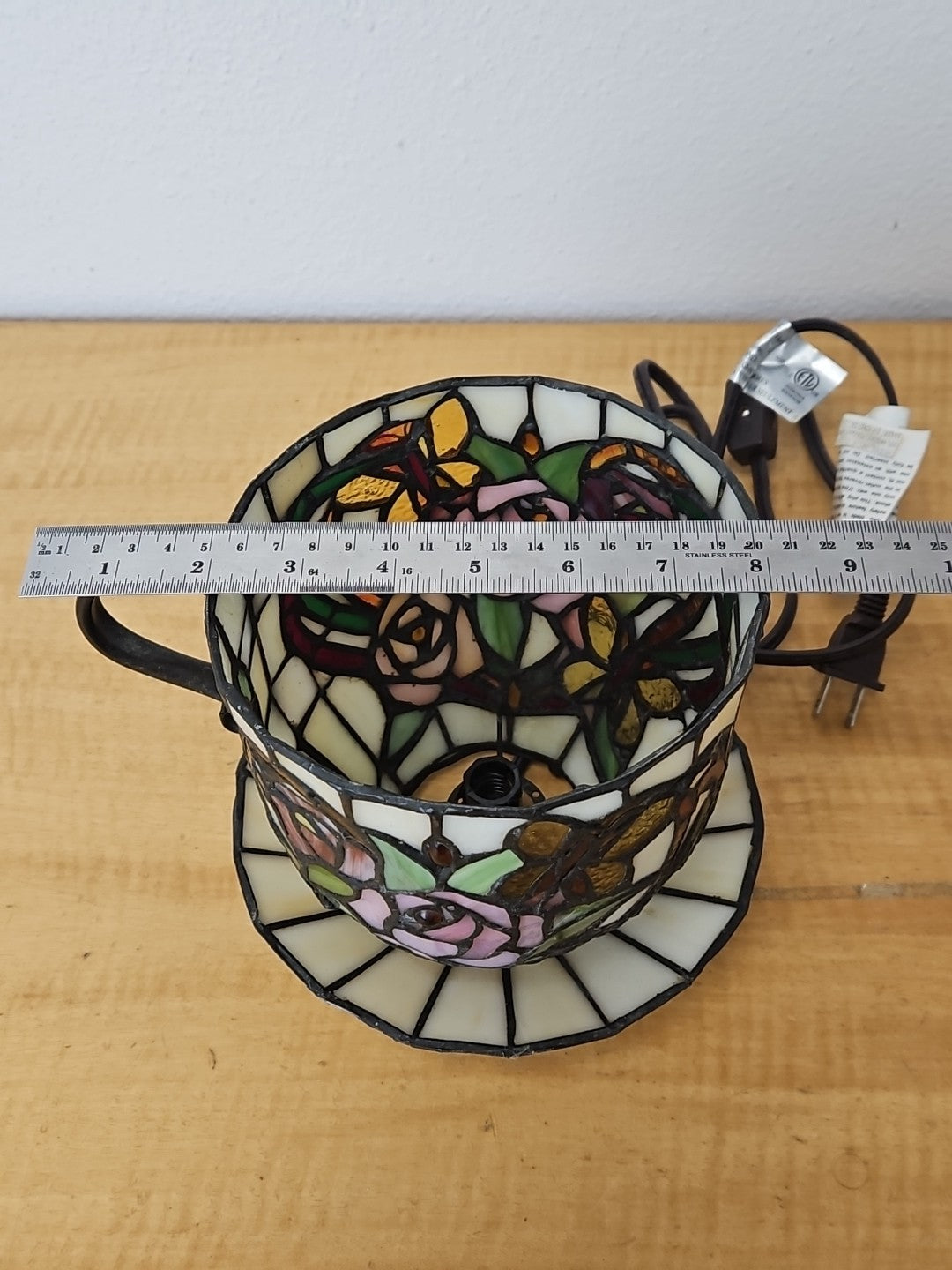 Stained Glass Tiffany Style Lamp TEA CUP 6 3/8" roses butterfly untested