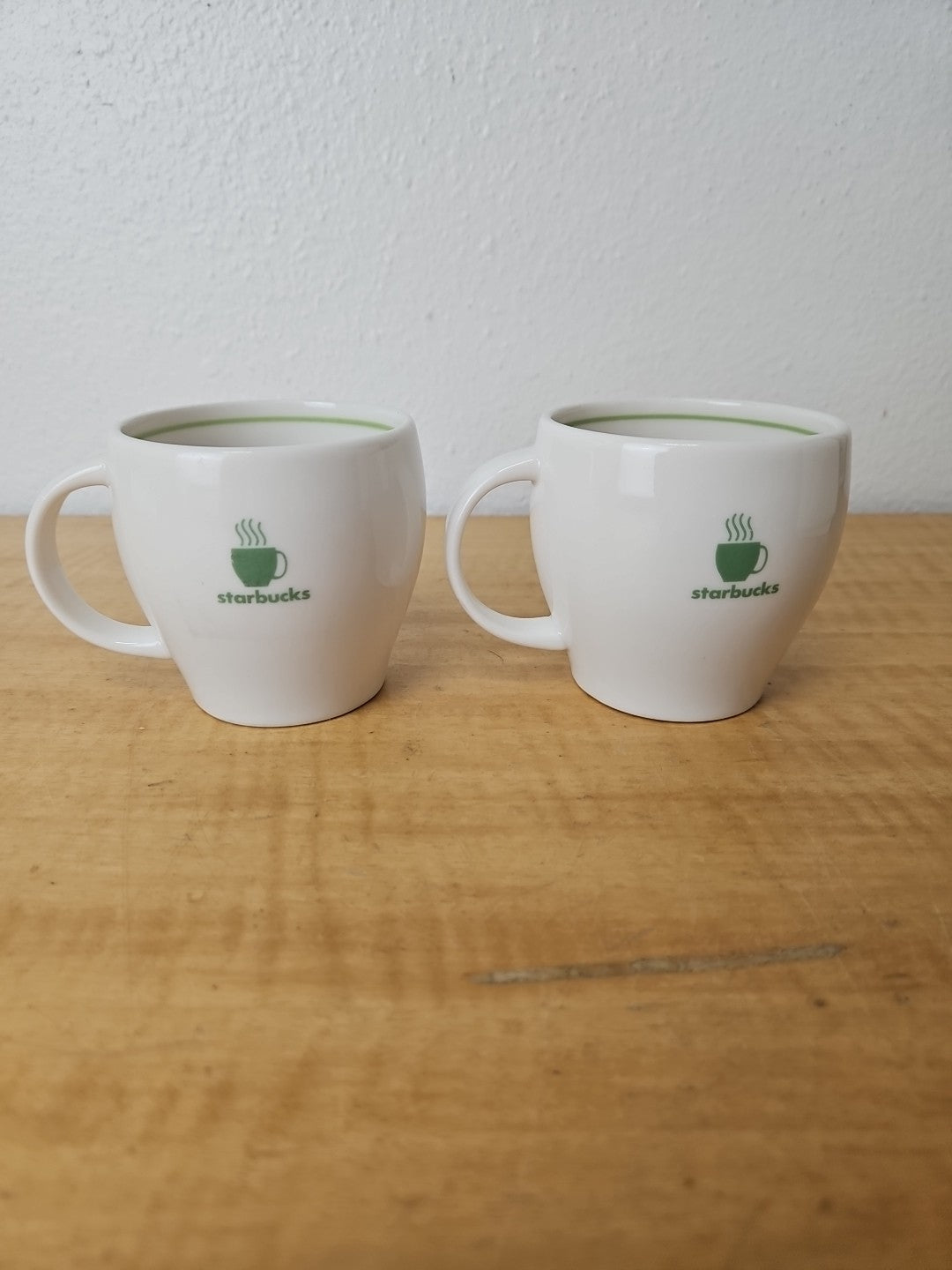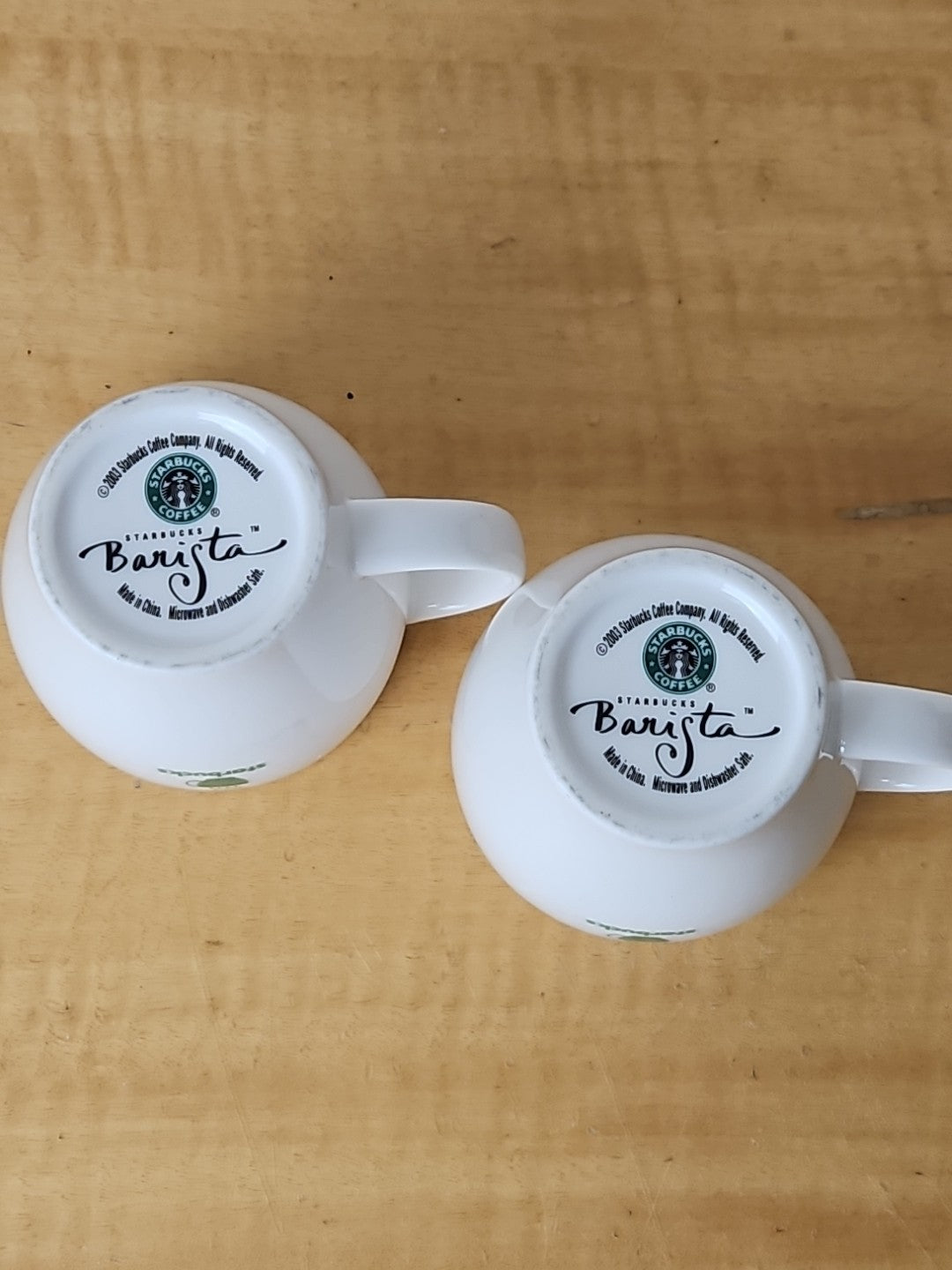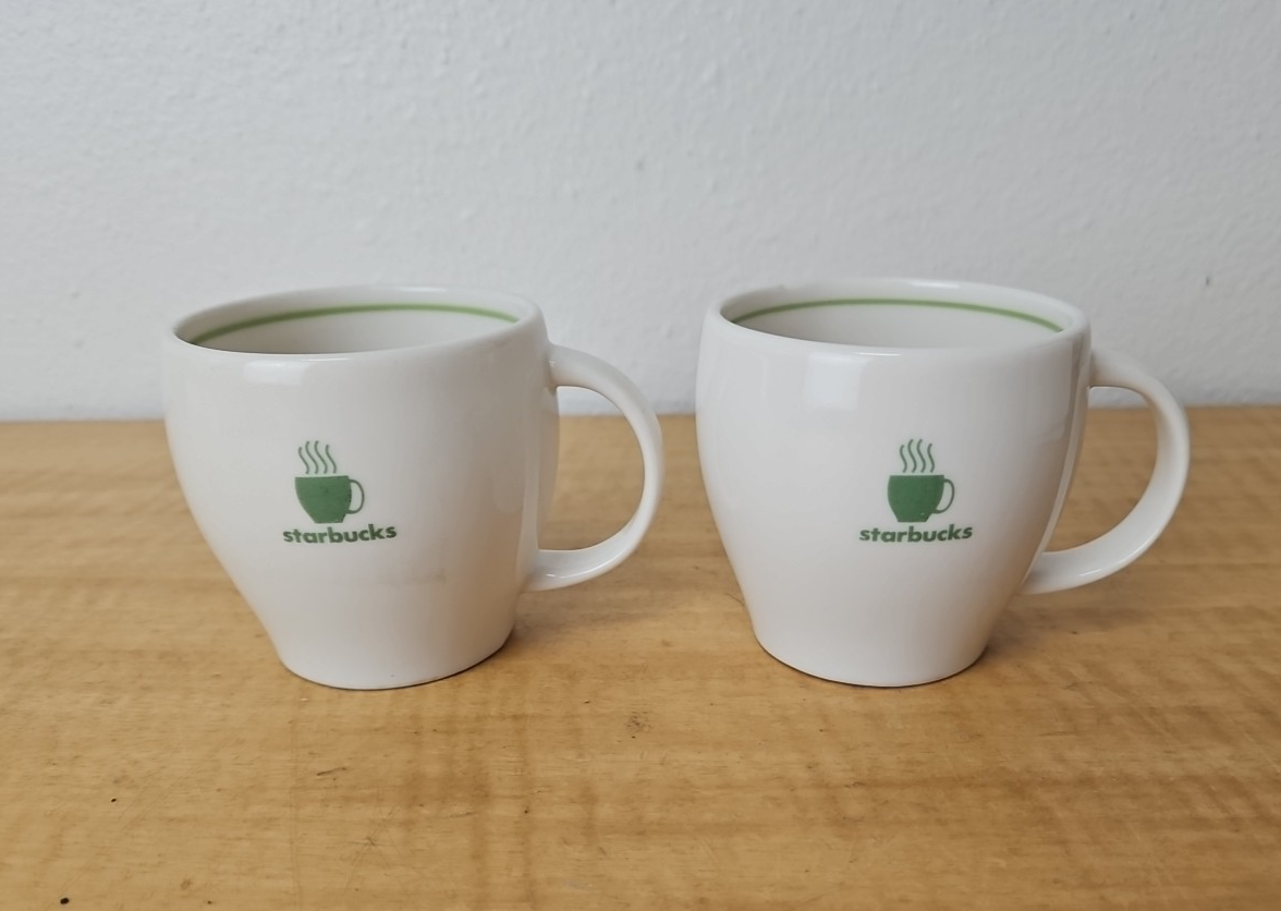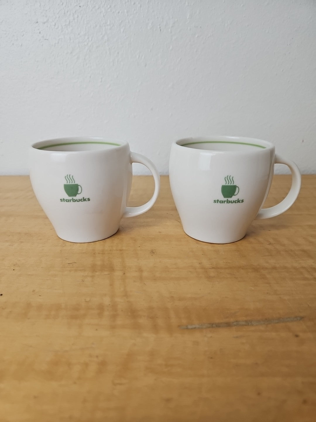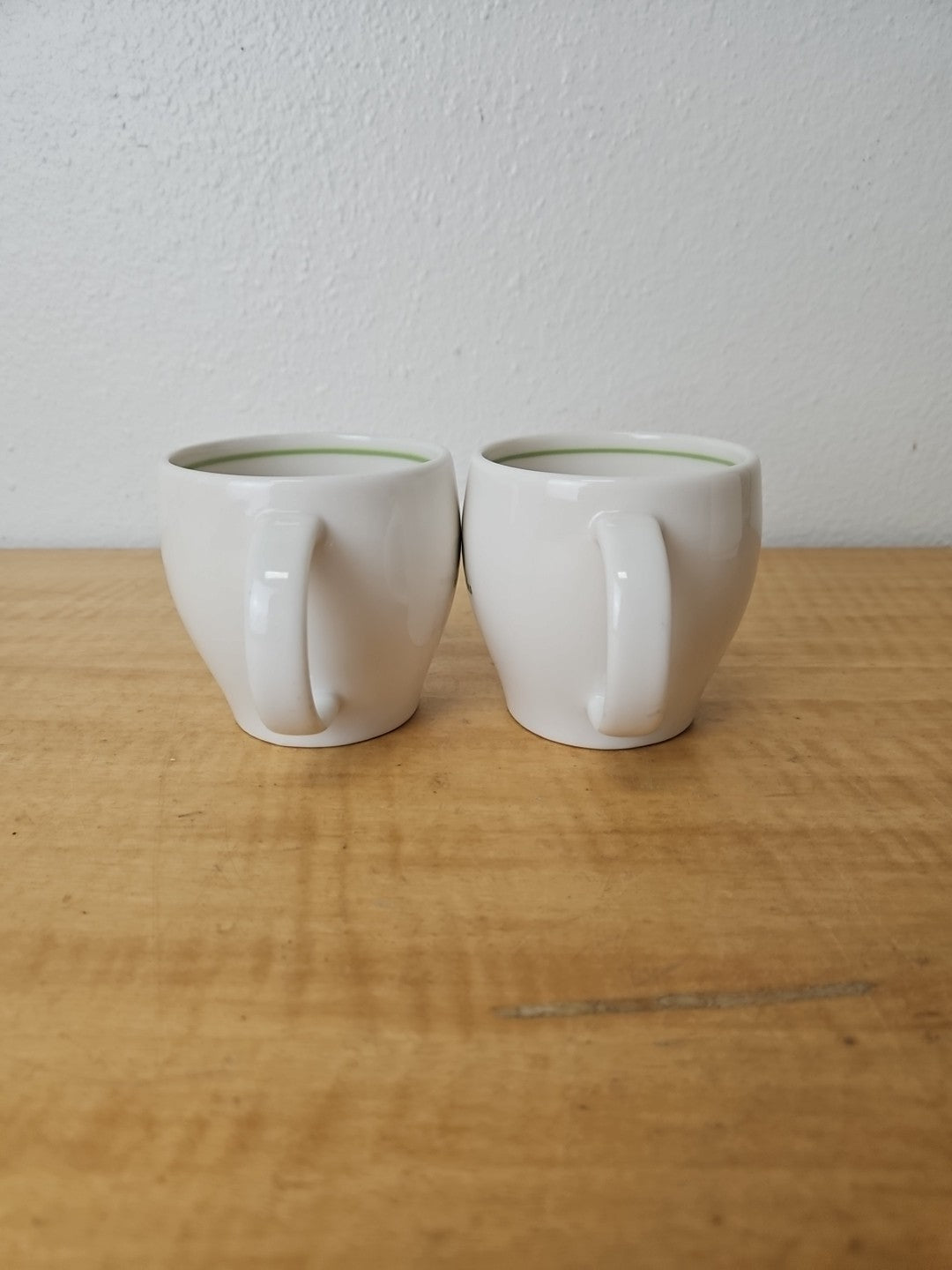 STARBUCKS Barista Abbey mugs 2003 *SET OF 2* green logo and stripe