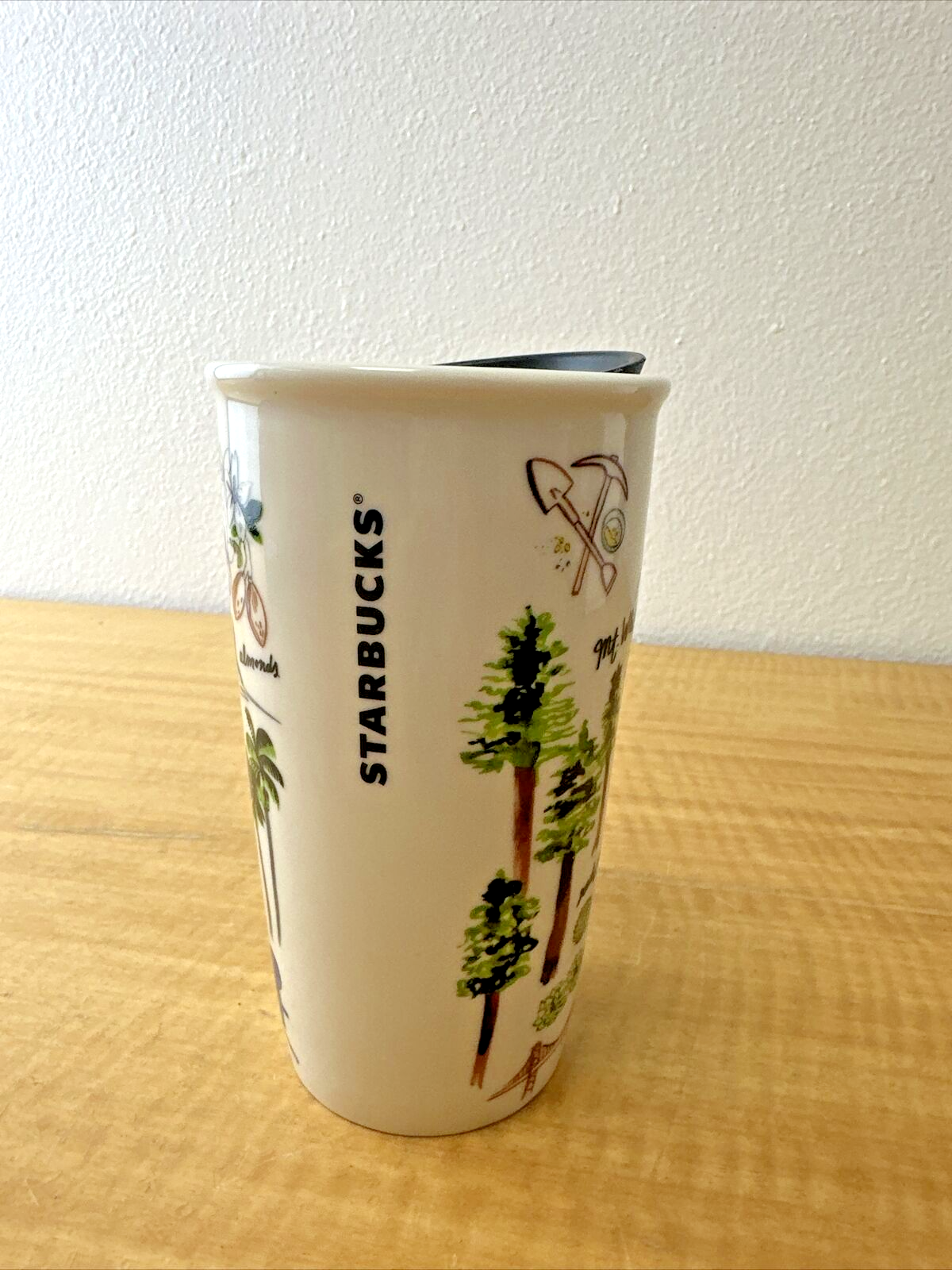 STARBUCKS CALIFORNIA TRAVEL COFFEE MUG CERAMIC 2016 TUMBLER W/LID 10 OUNCE CUP