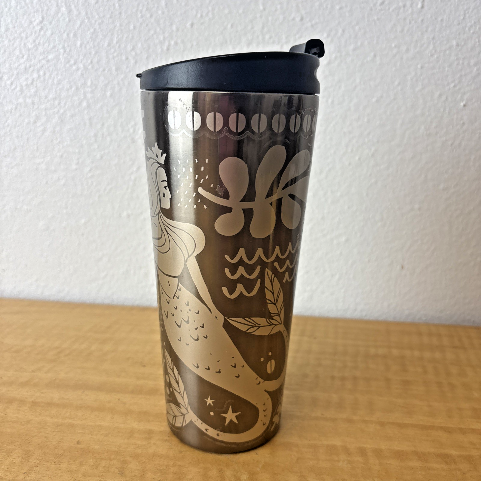 Starbucks Coffee Travel Mug Tumbler 16 oz 2017 Metallic on Black Siren Mermaid