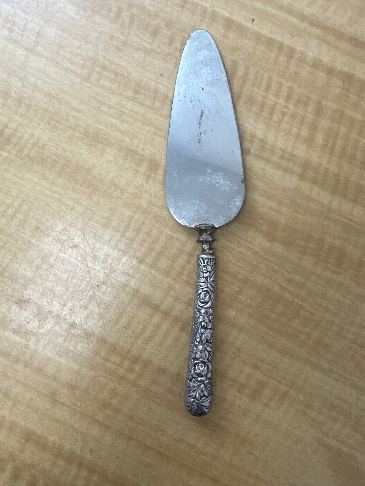 Sterling Embossed Rose Handle Serrated Pie Server 9-3/4"