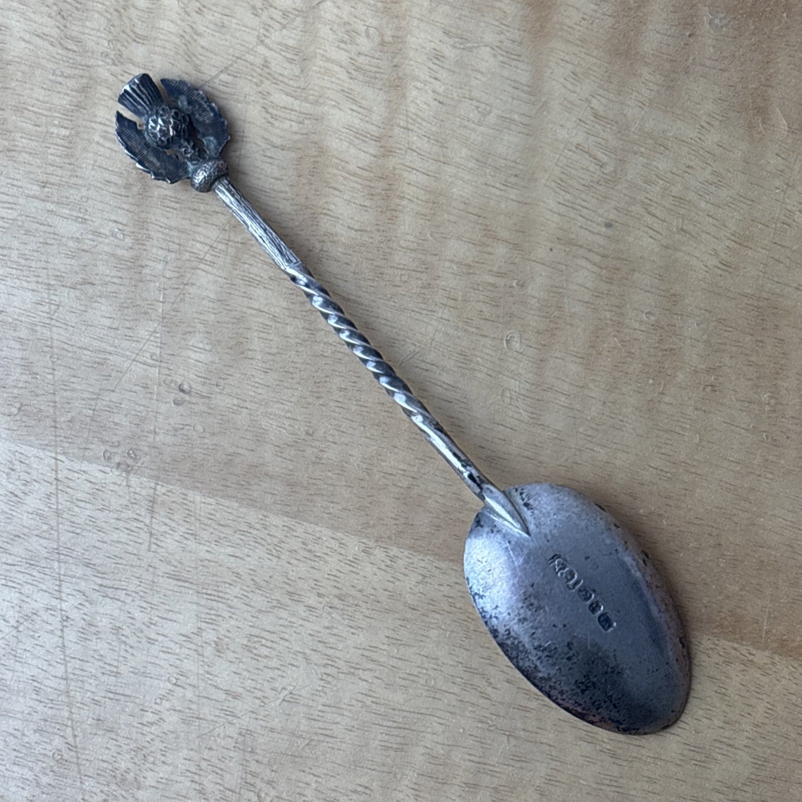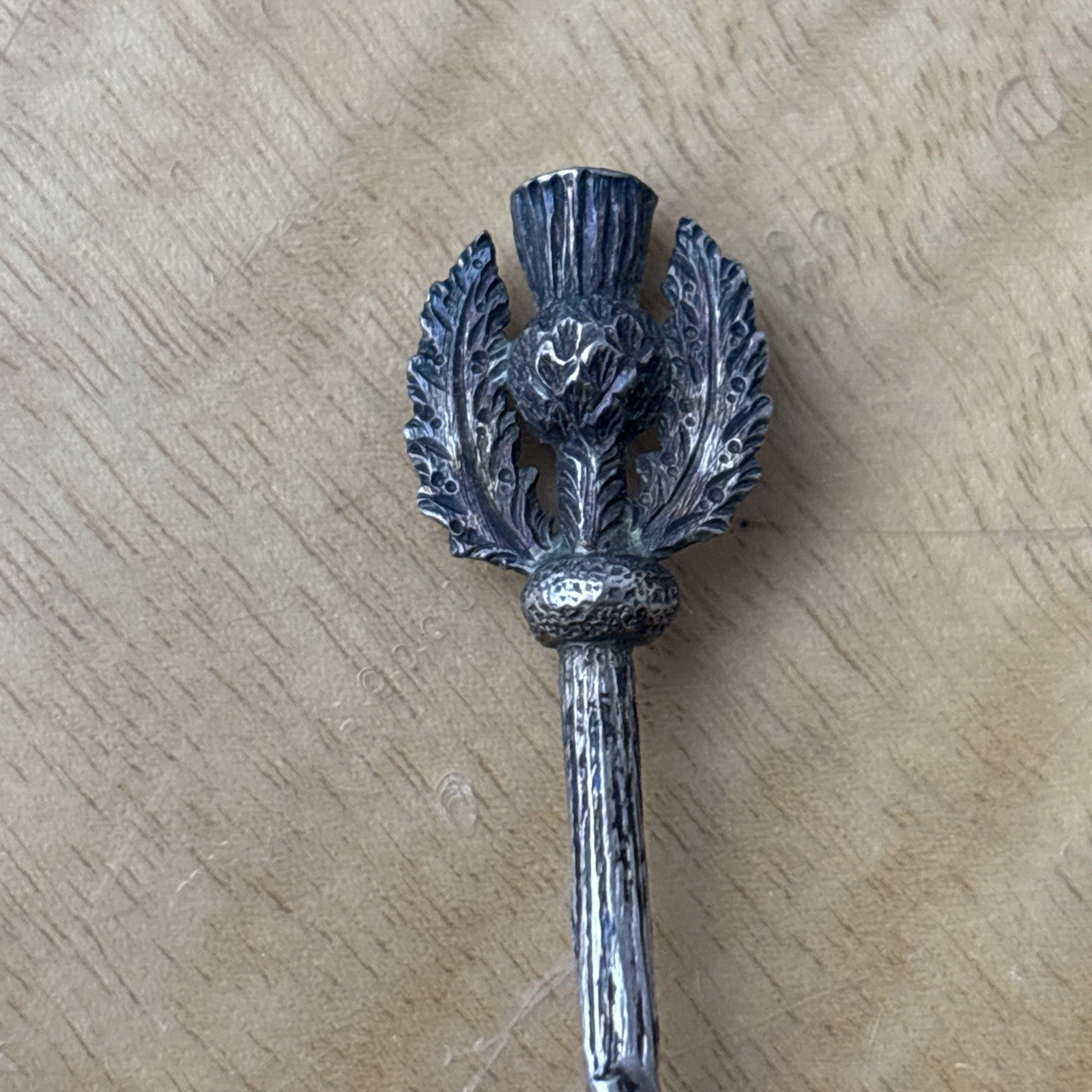 Stokes Ireland SIL Sterling Silver Thistle Flower Antique Demitasse Spoon