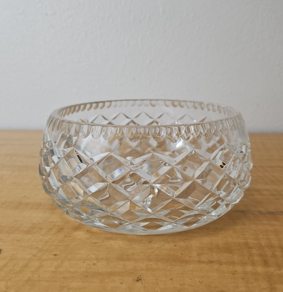 Stunning Crystal Bowl approx 7.5" flat bottom diamond pattern