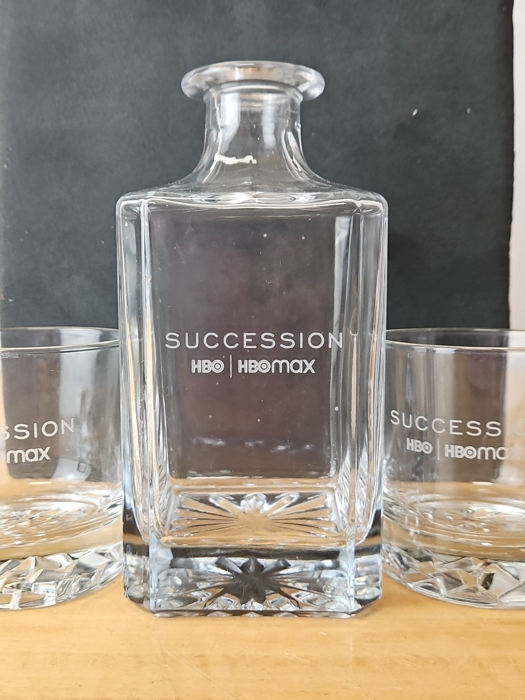 Succesion HBO Etched Decanter and Old Fashioned Whiskey Glass Set