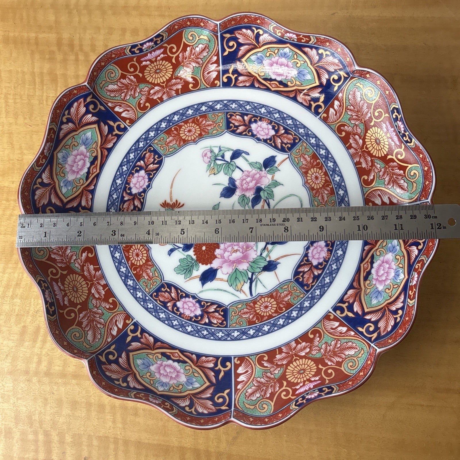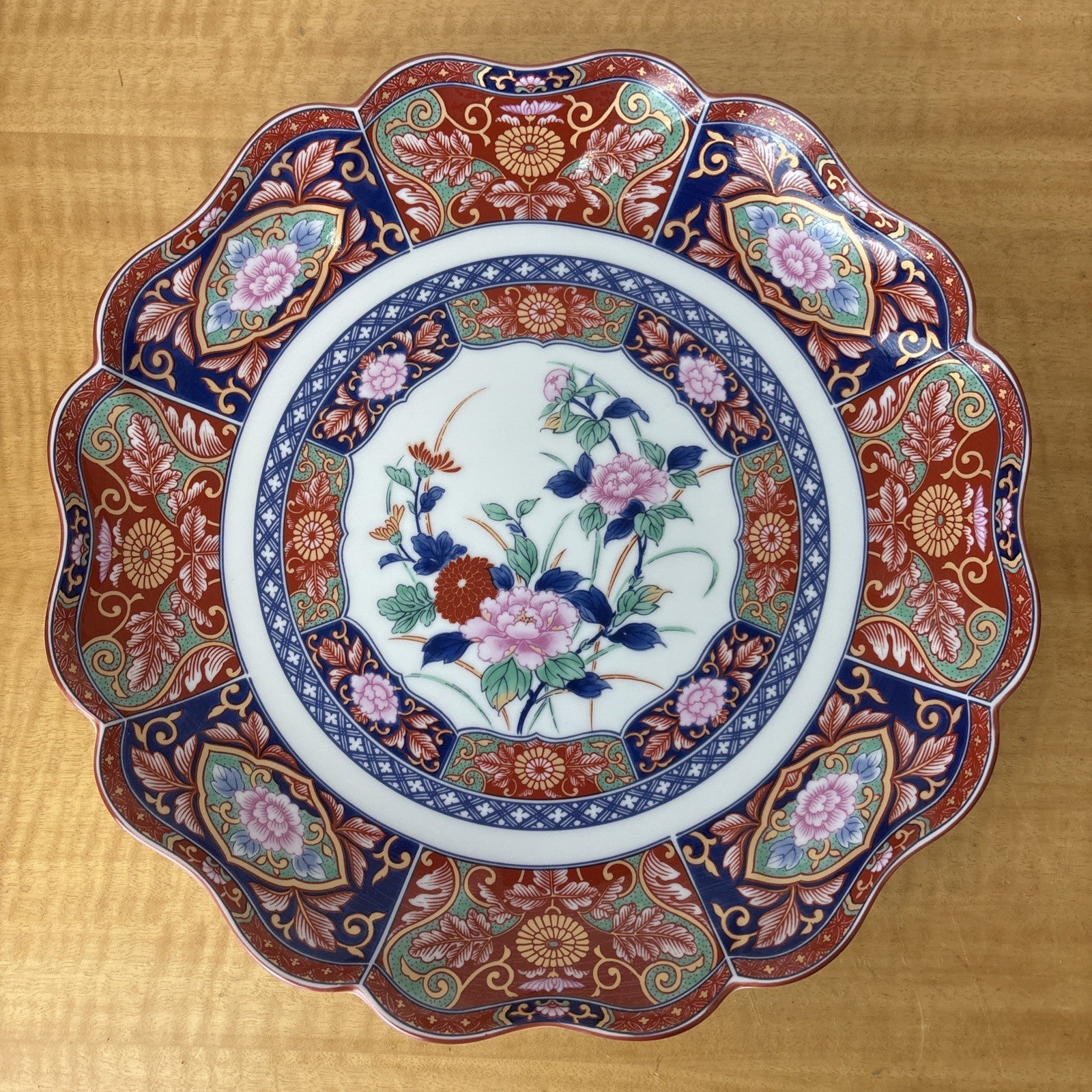 Tao Feng Chinese Imari Floral Pattern Scalloped Edge Serving Bowl / Dish