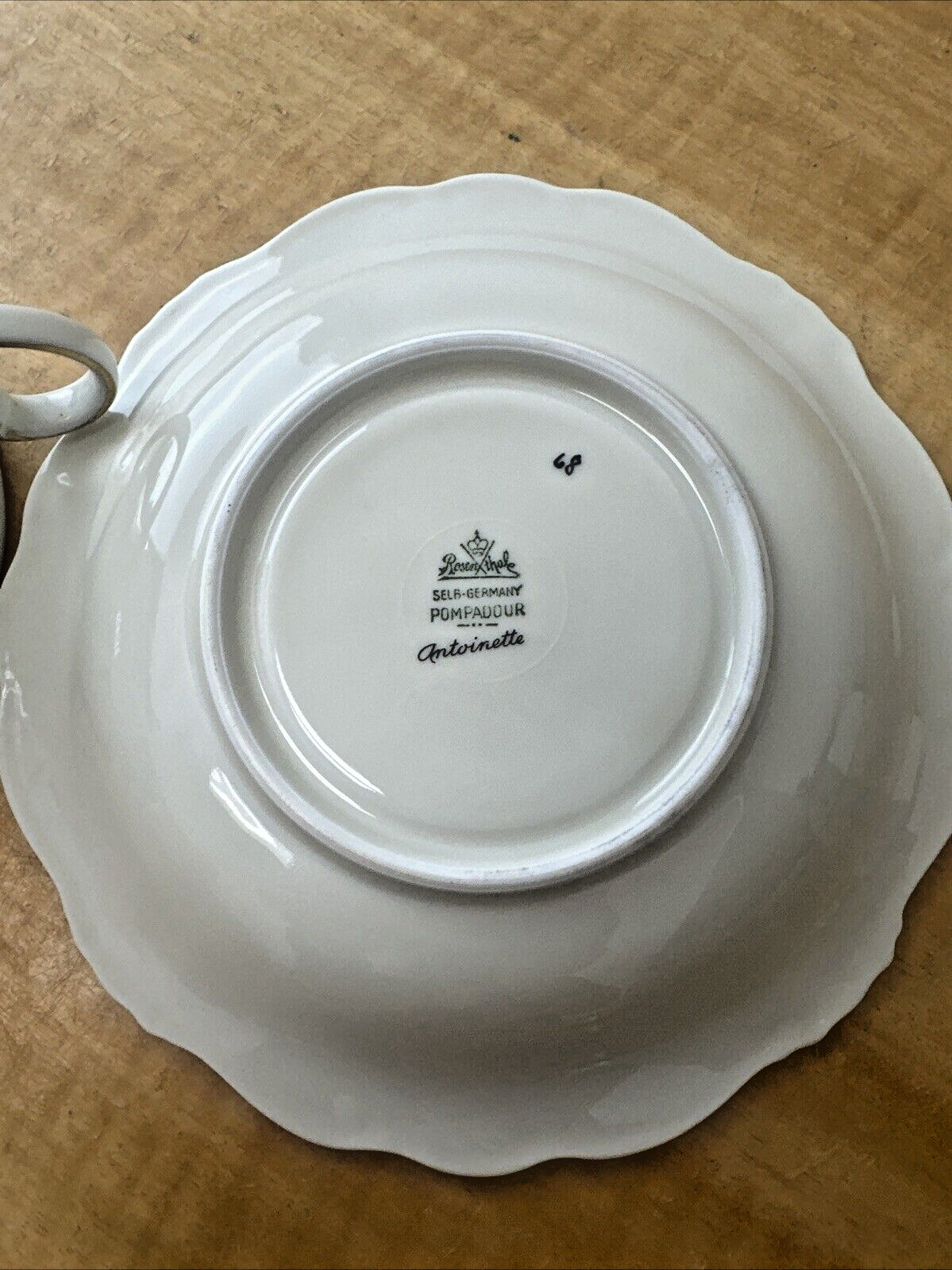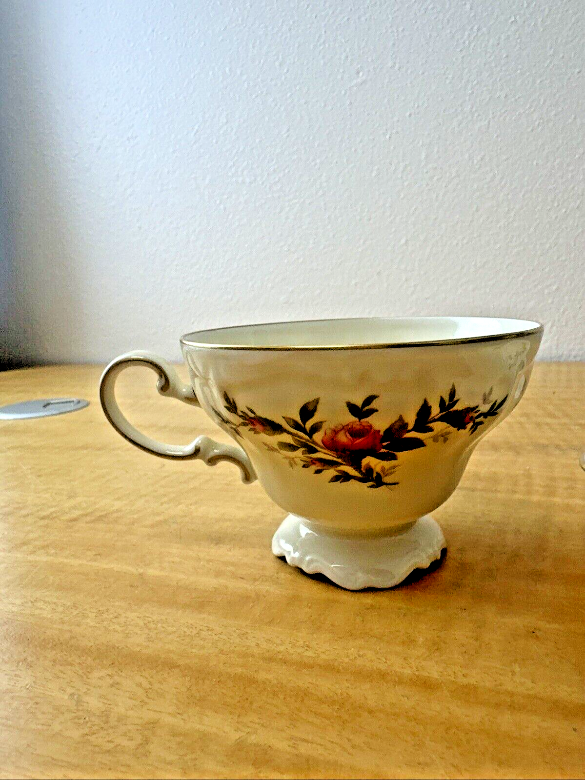 Tea Cup Moss Rose Haviland Bavaria Germany Footed 24kt Gold Edges Rims Vintage