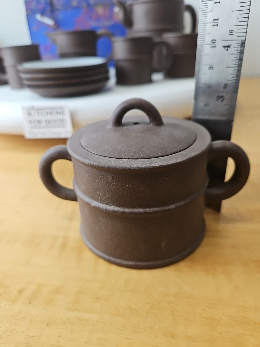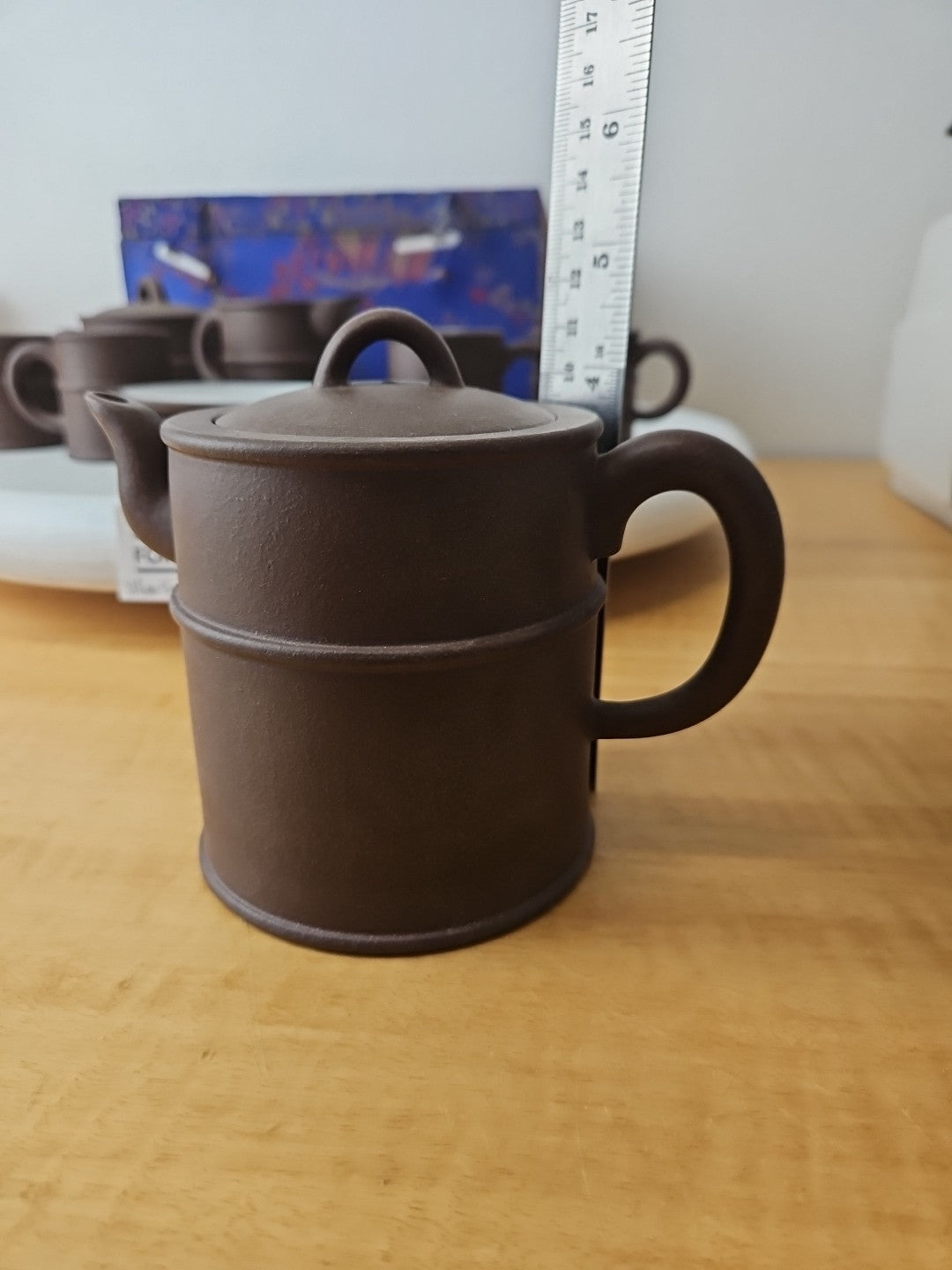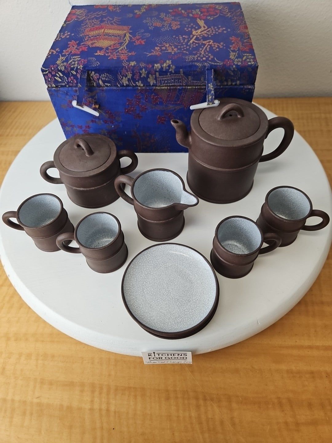 Tea Set for 4 in Box, 11 pieces. Yixing "three line" design Gu Jignzhou style
