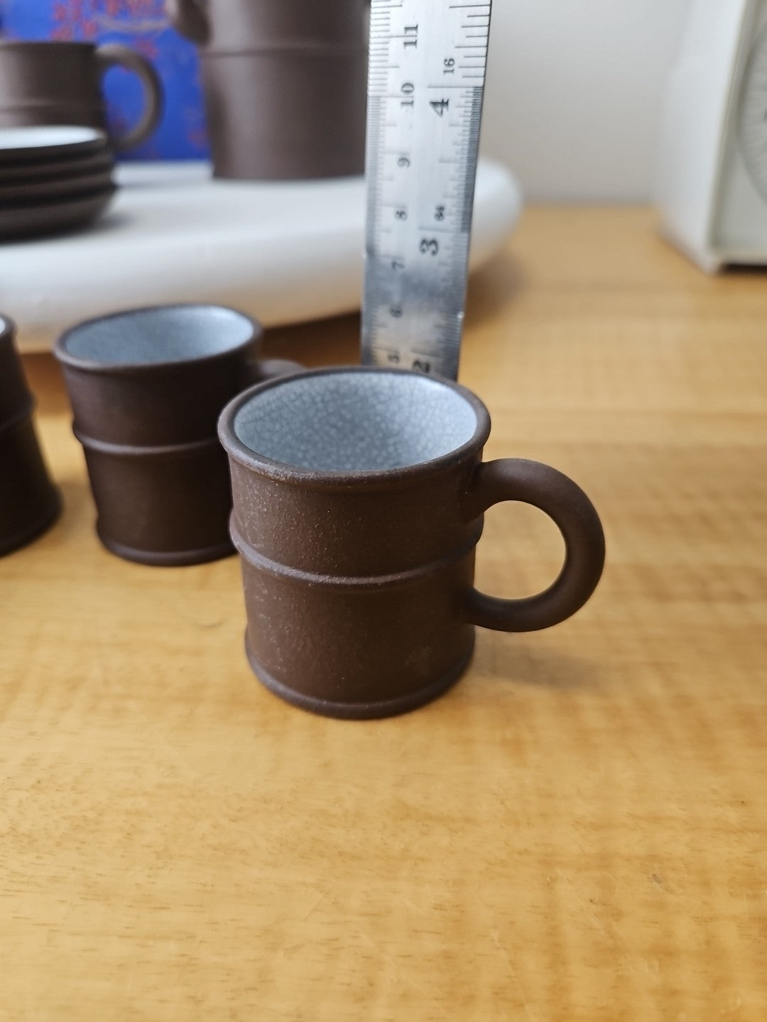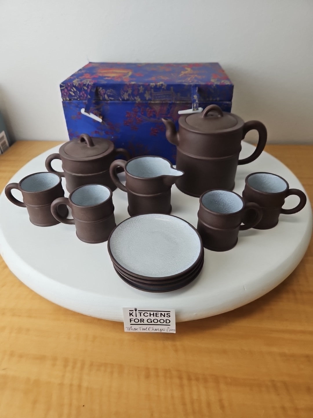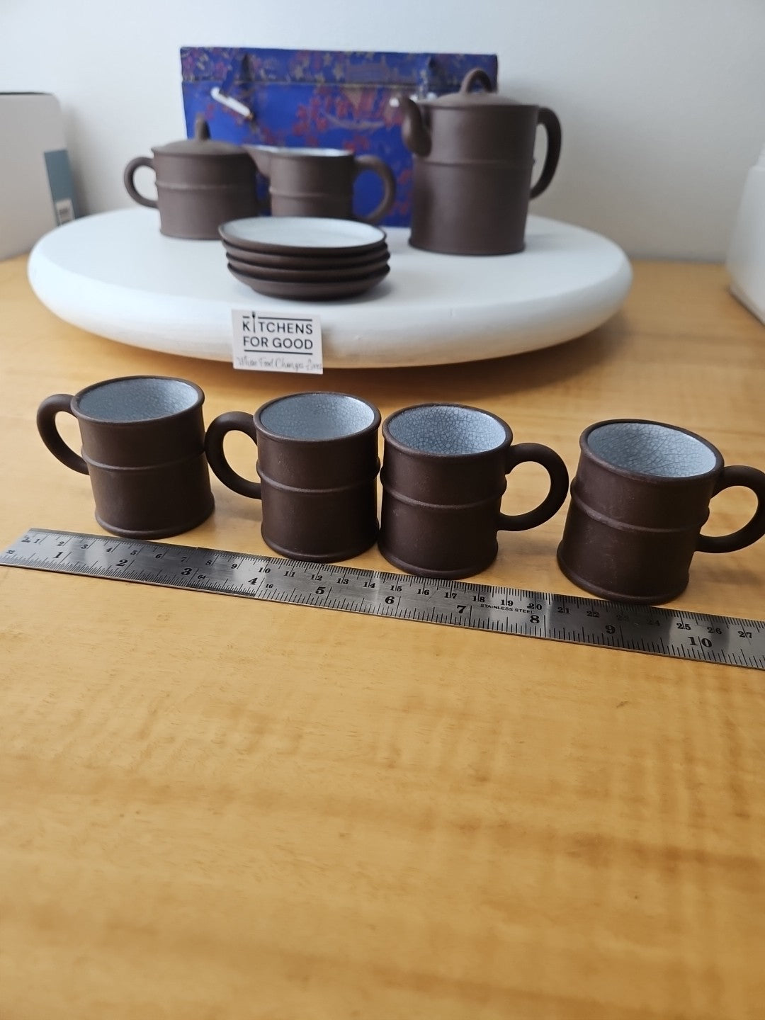 Tea Set for 4 in Box, 11 pieces. Yixing "three line" design Gu Jignzhou style