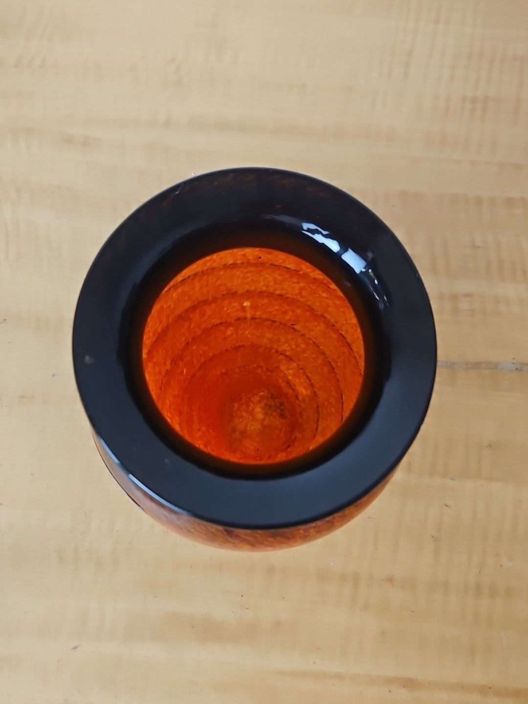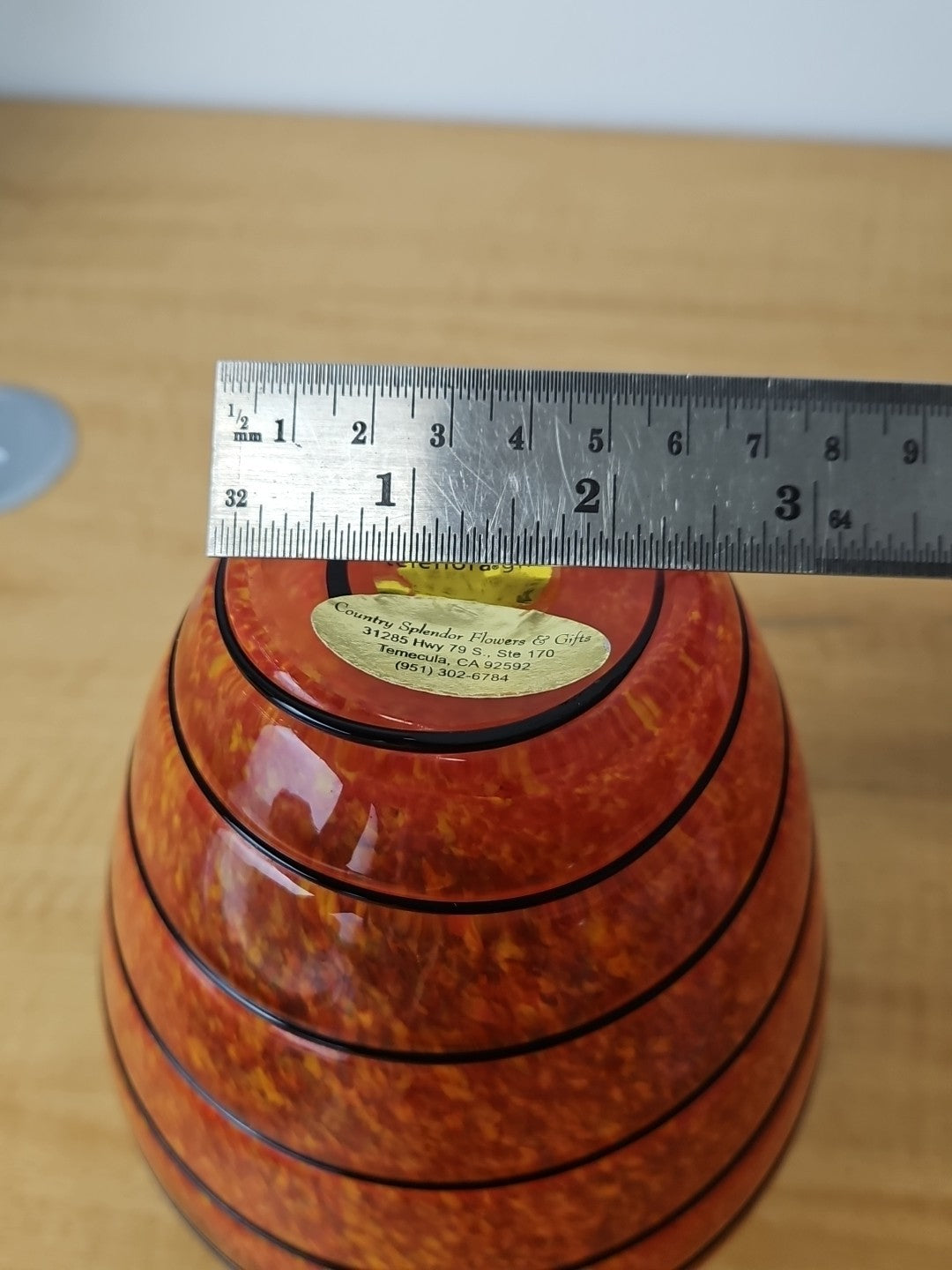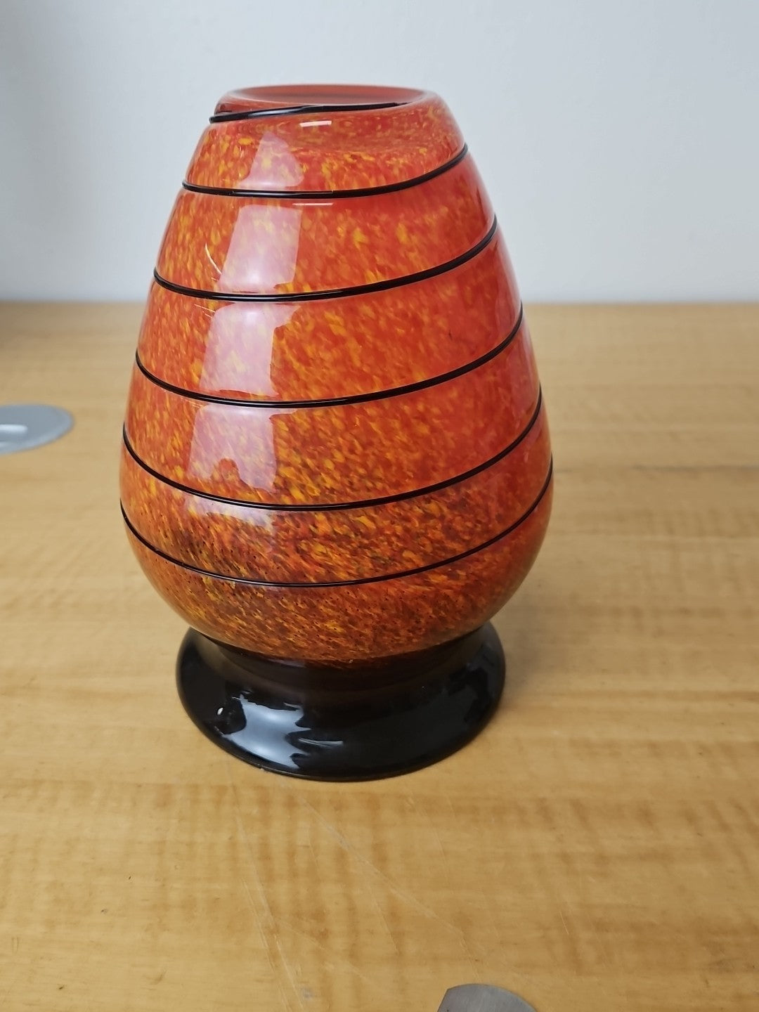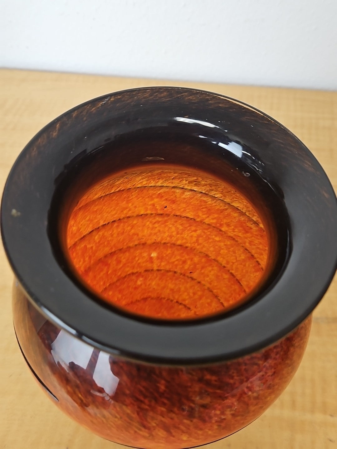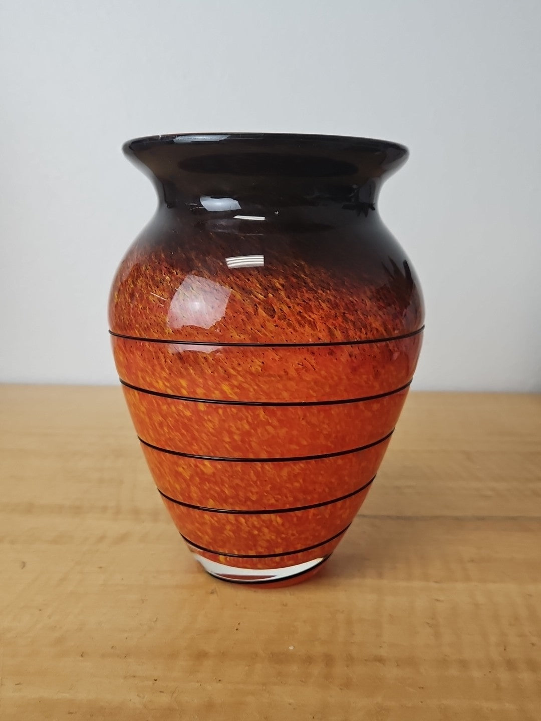 Teleflora Orange and Brown Ombre Hand Blown Glass Vase 7 3/8" speckled with rope