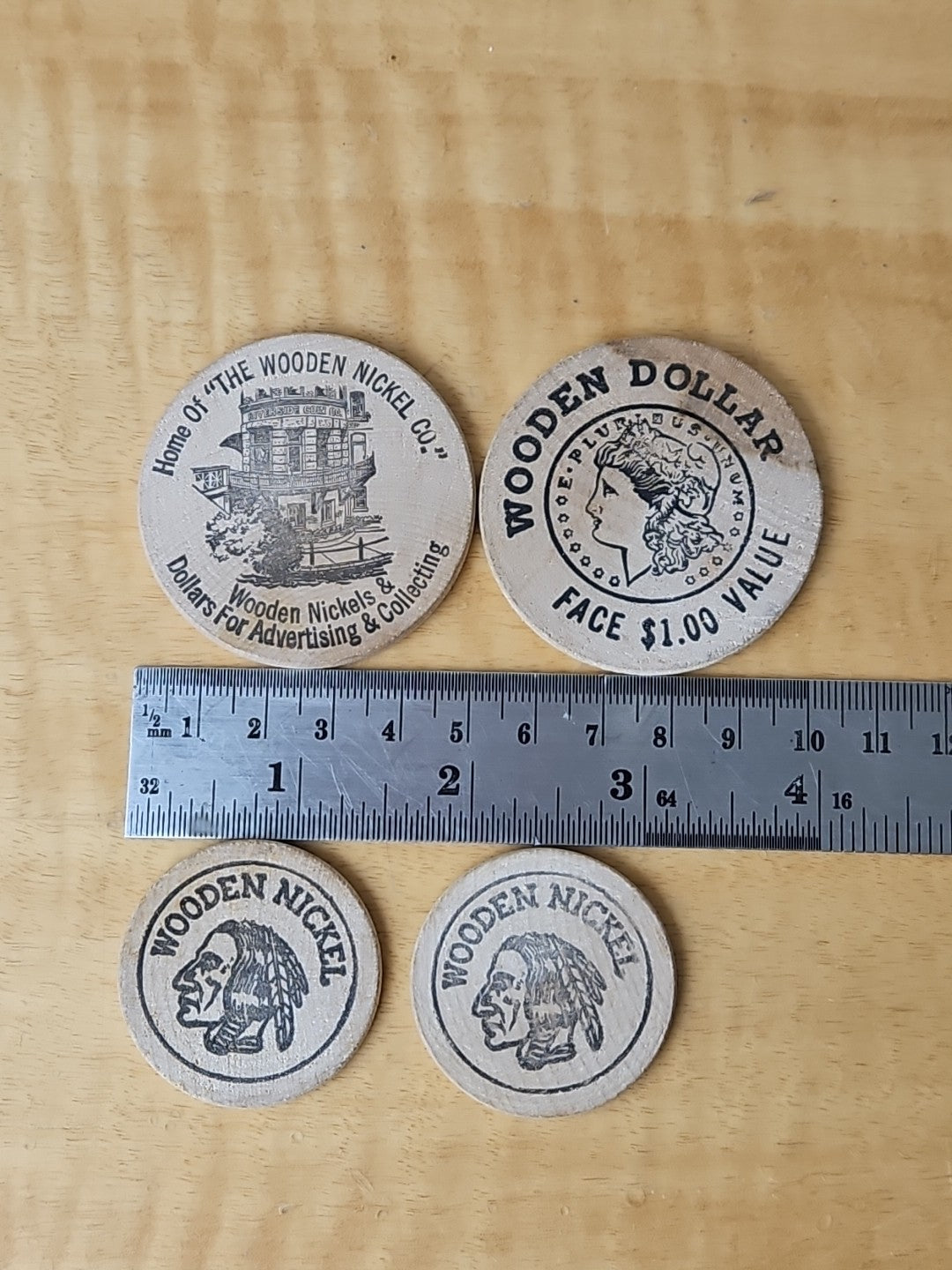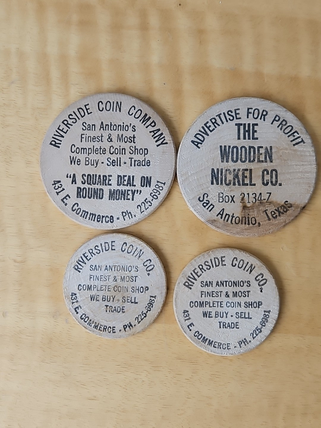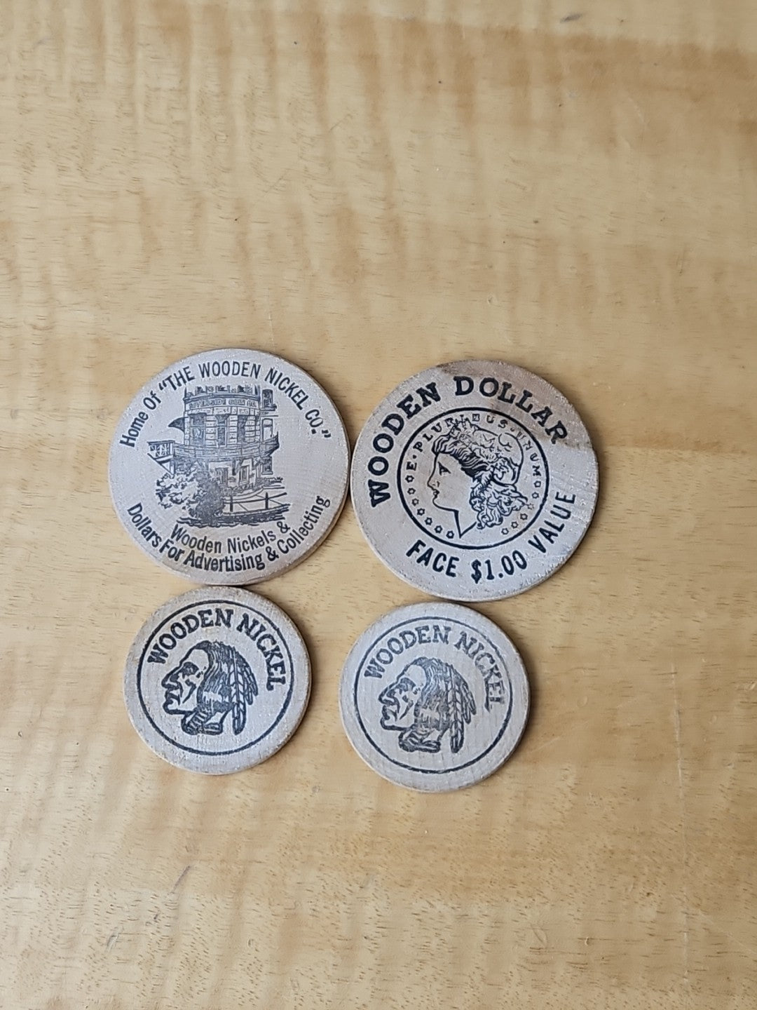The Wooden Nickel Company, San Antonio, TX, Wooden Nickel SET of 4 Wooden Dollar