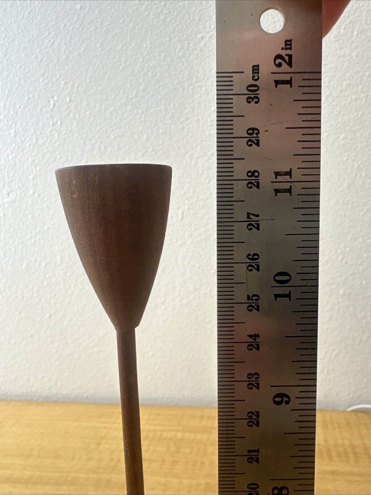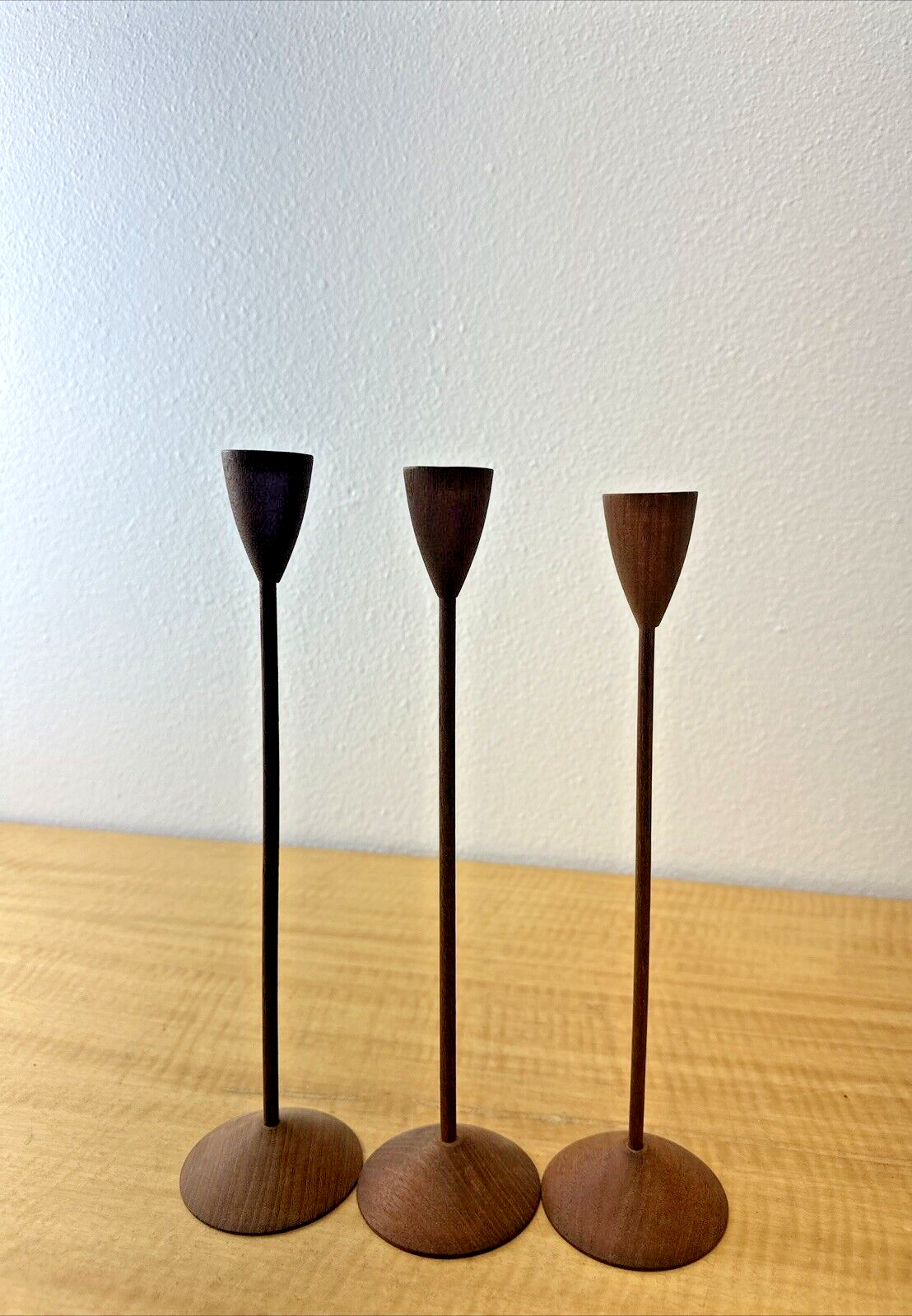 Three Shigemichi Aomine Slender Teak Candlesticks Japan MCM Taper Candle Holders