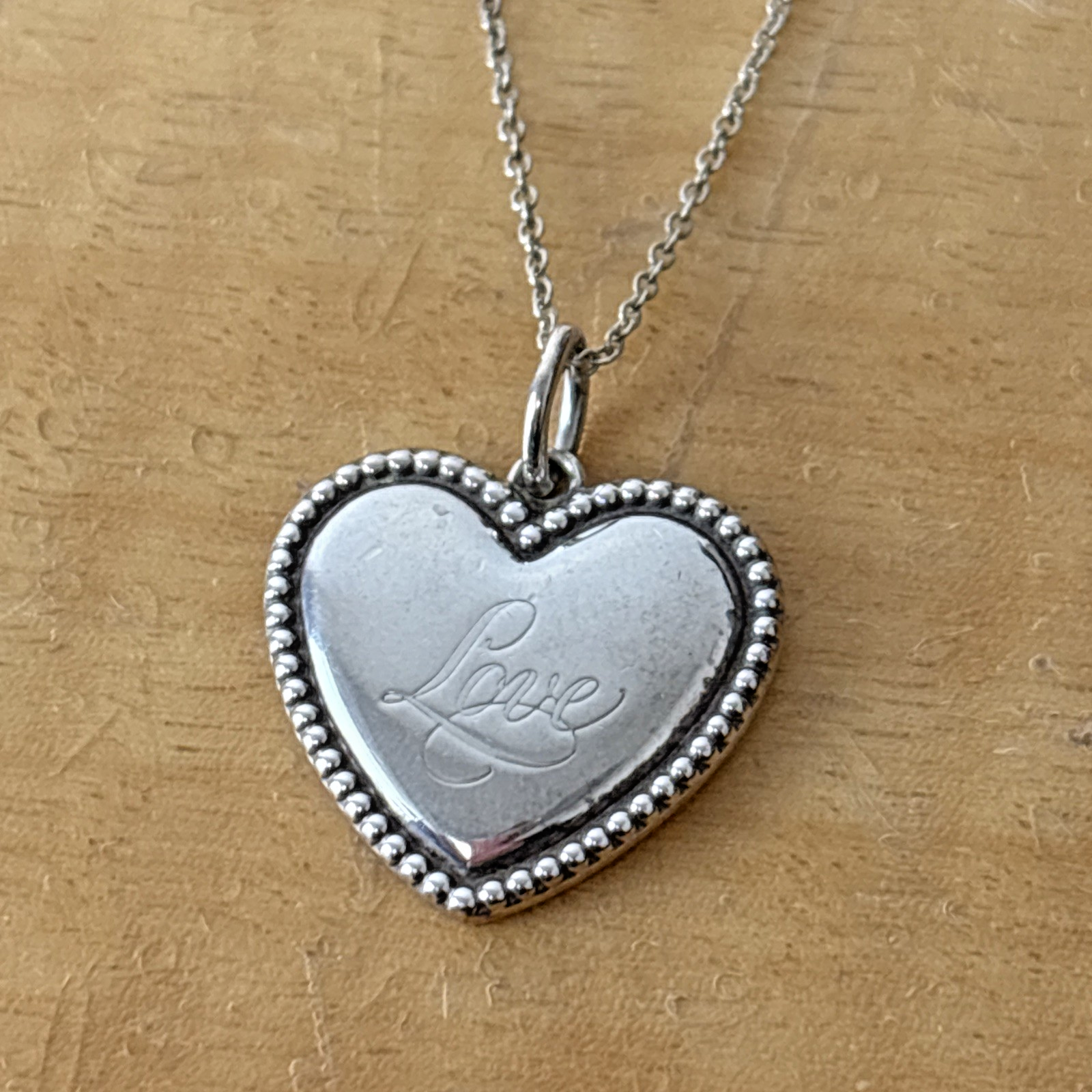 Tiffany & Co Silver "Love" Beaded Heart Necklace Sterling Silver .925
