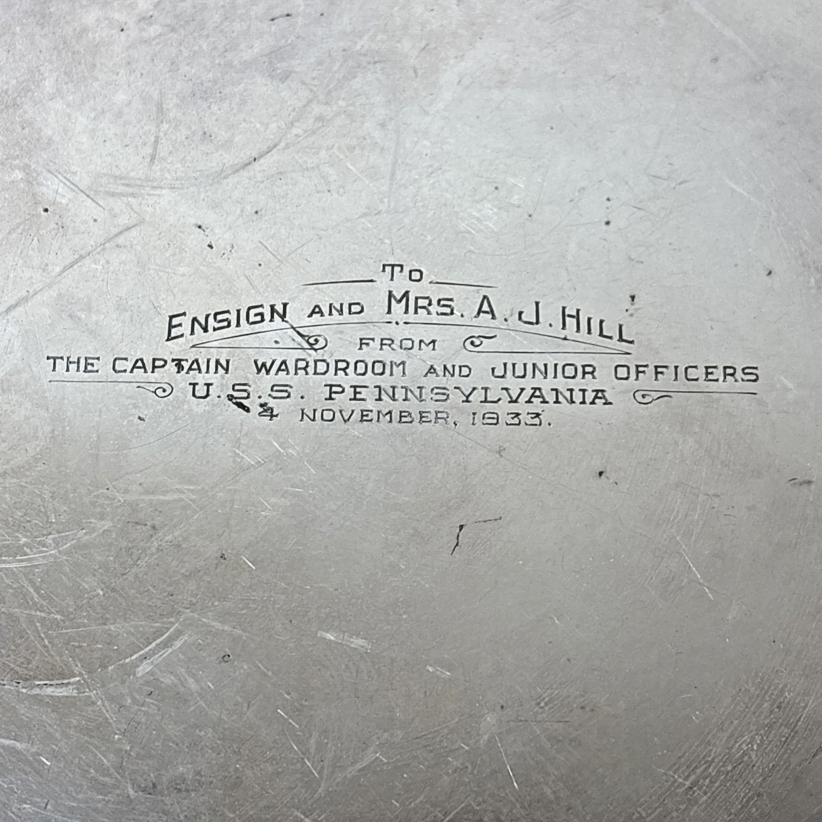 U.S.S. Pennsylvania Wilcox EPNS Plate for Ensign and Mrs. A. J. Hill Signed 1933