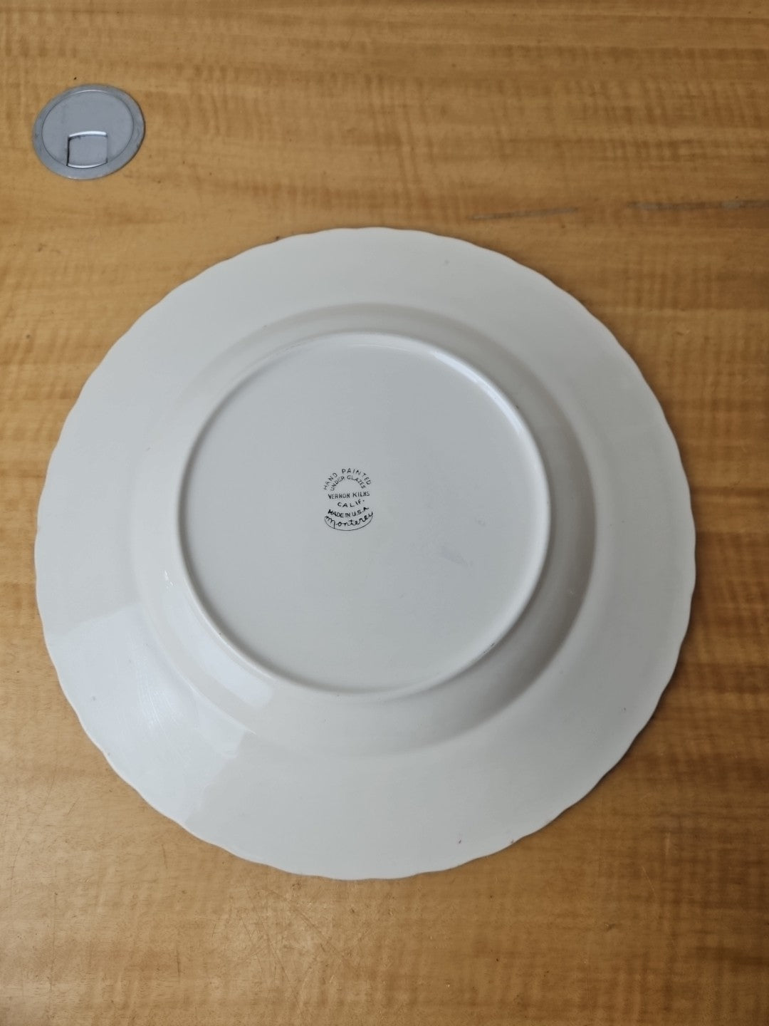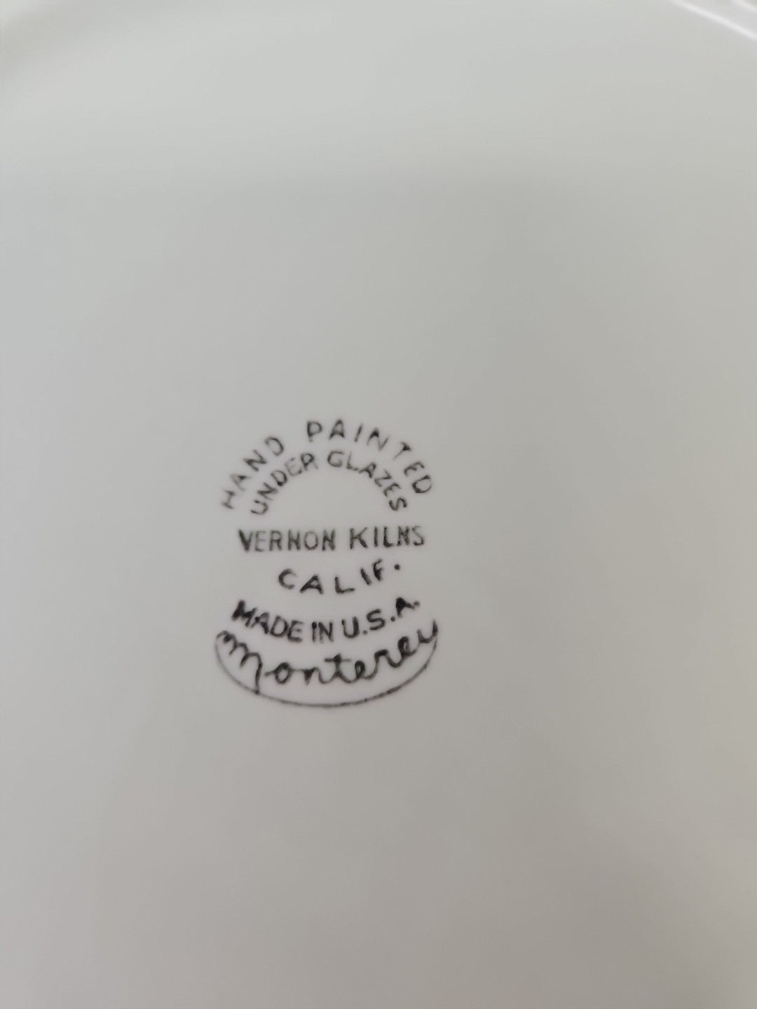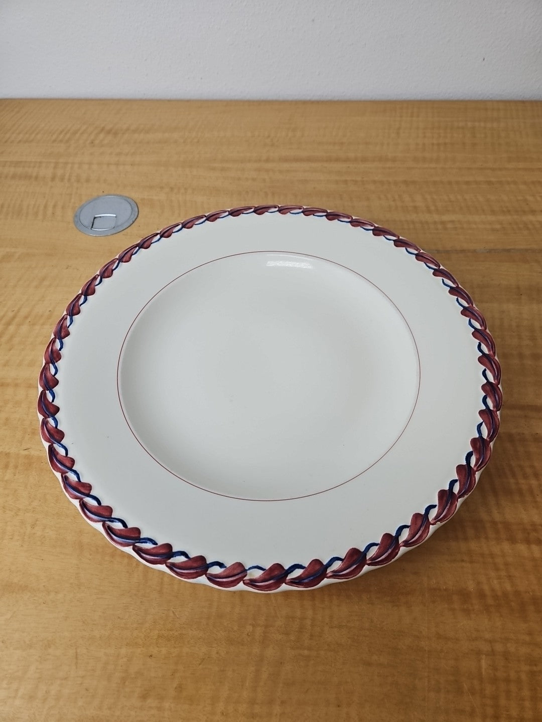 Vernon Kilns Calif. Monterey 13 7/8" Platter plate- Red Blue Leaf hand paint USA