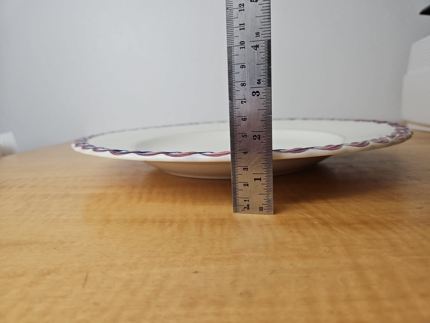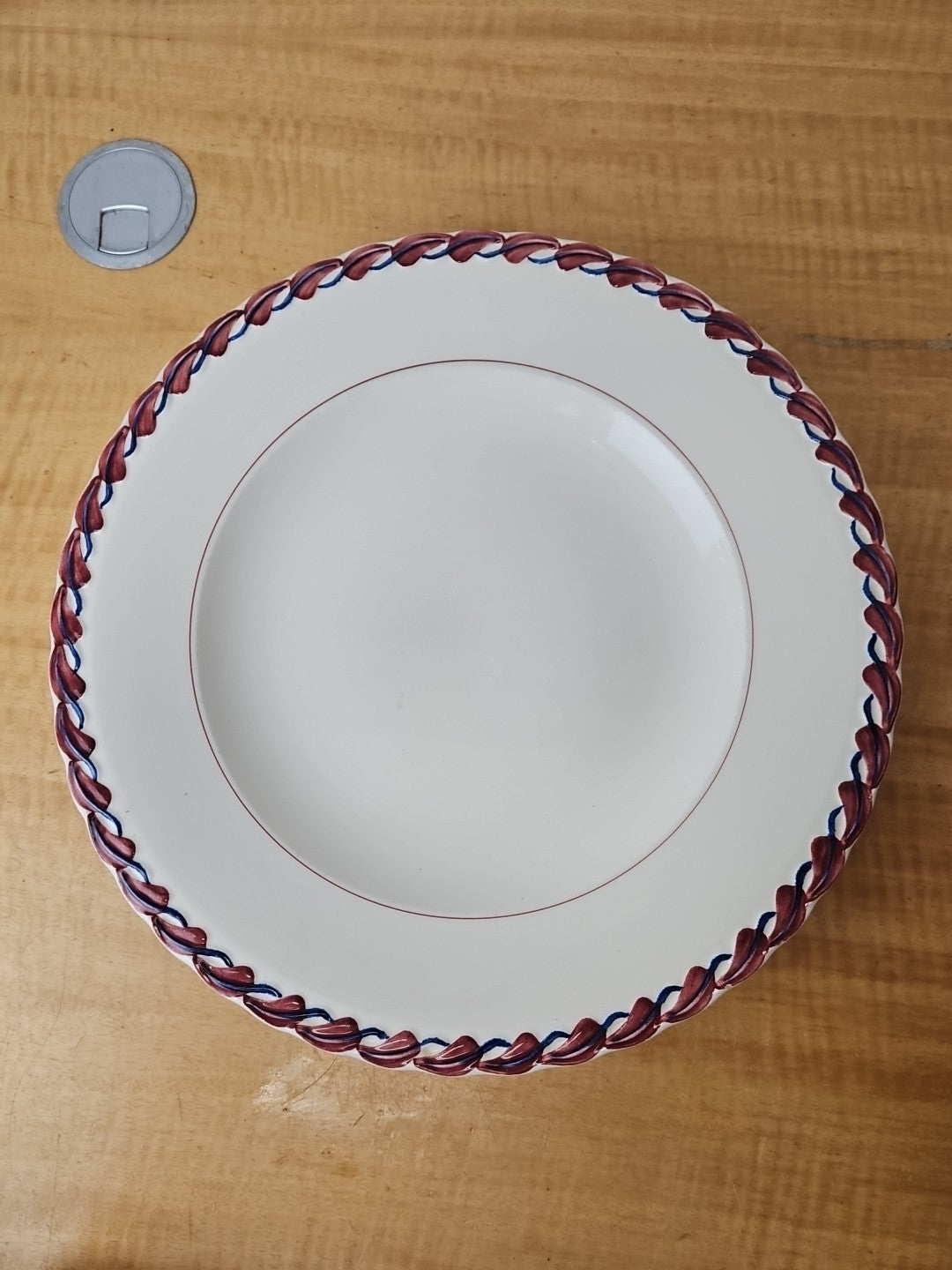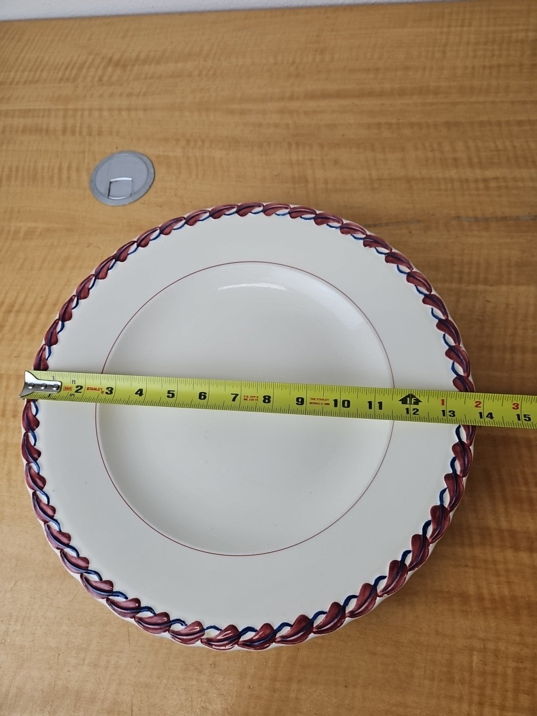 Vernon Kilns Calif. Monterey 13 7/8" Platter plate- Red Blue Leaf hand paint USA
