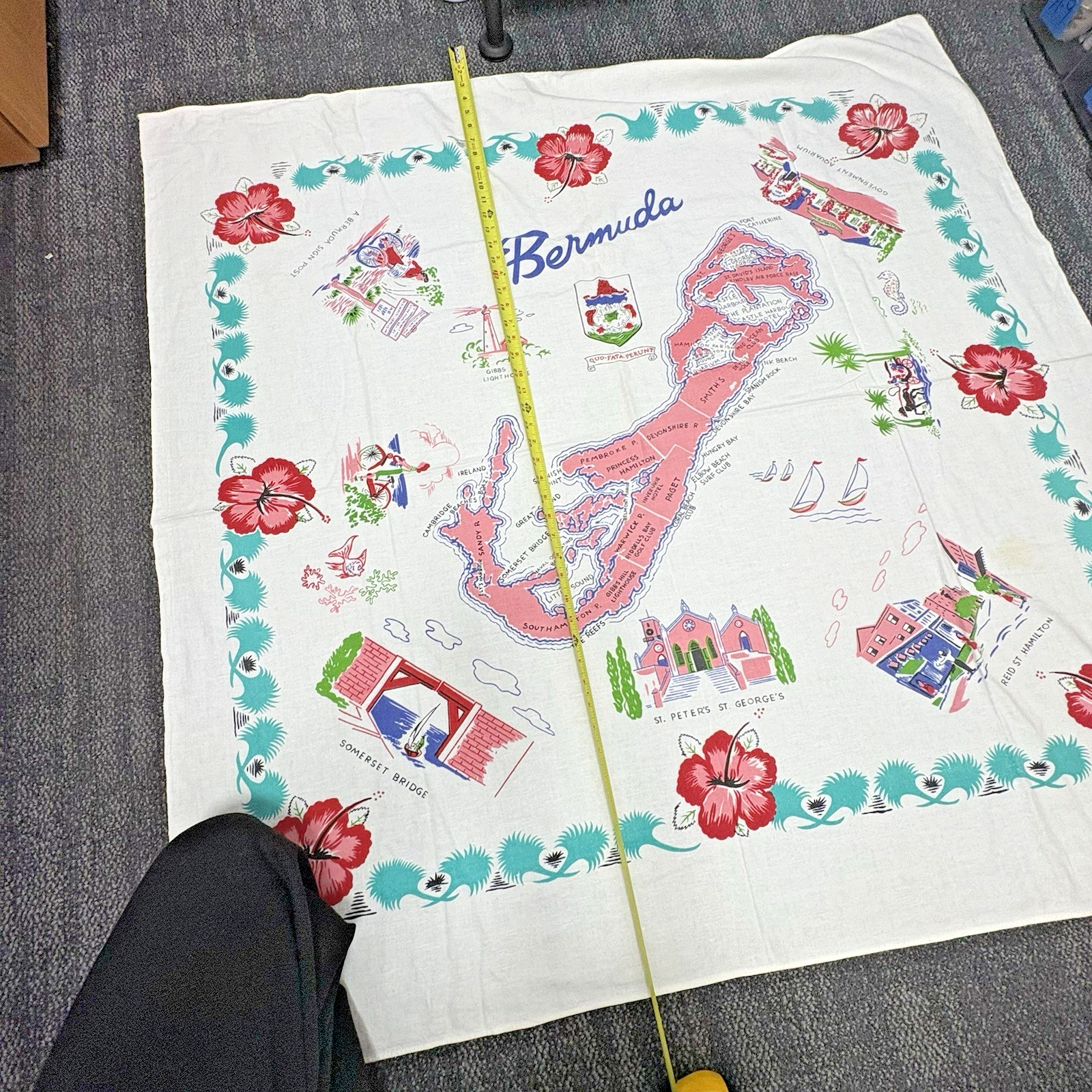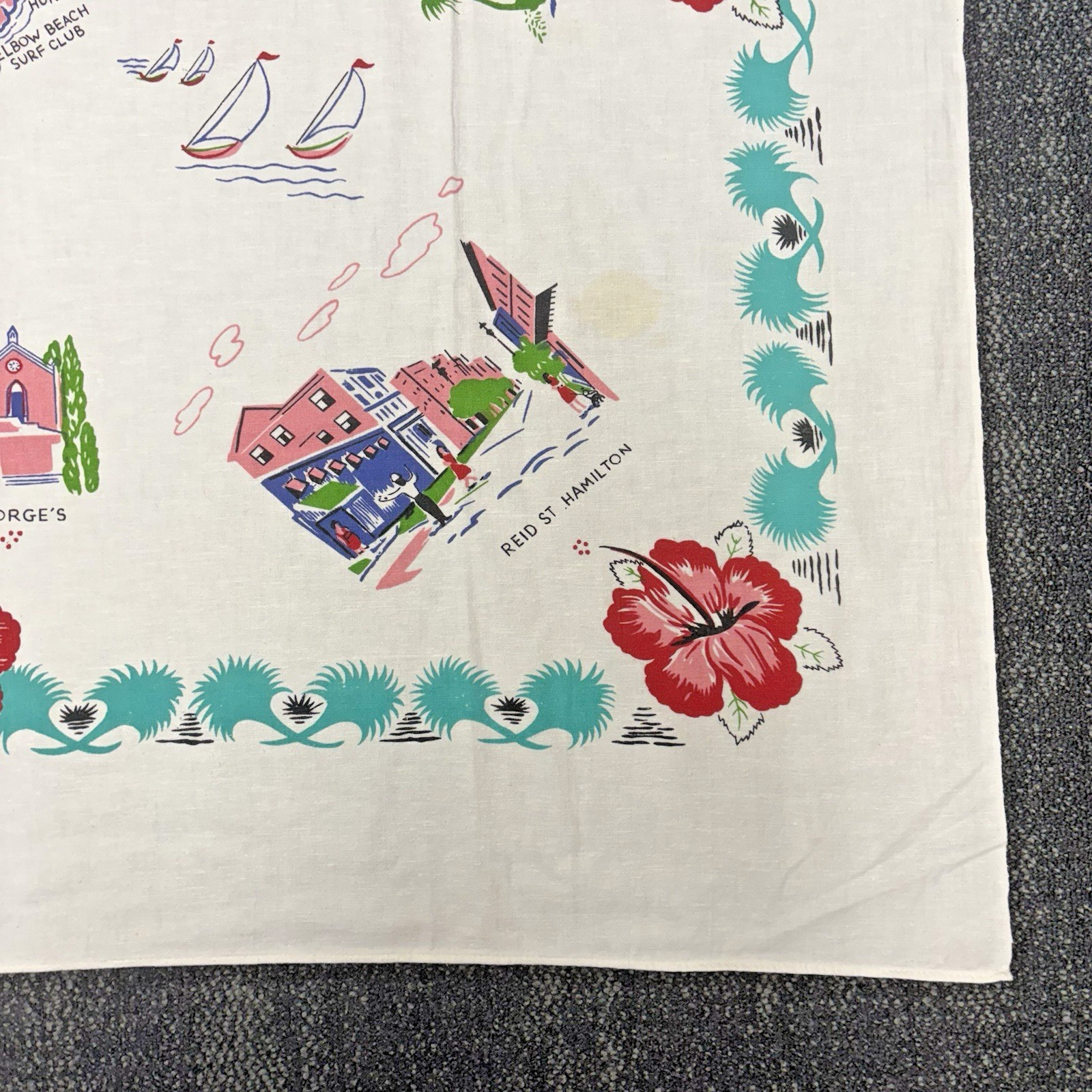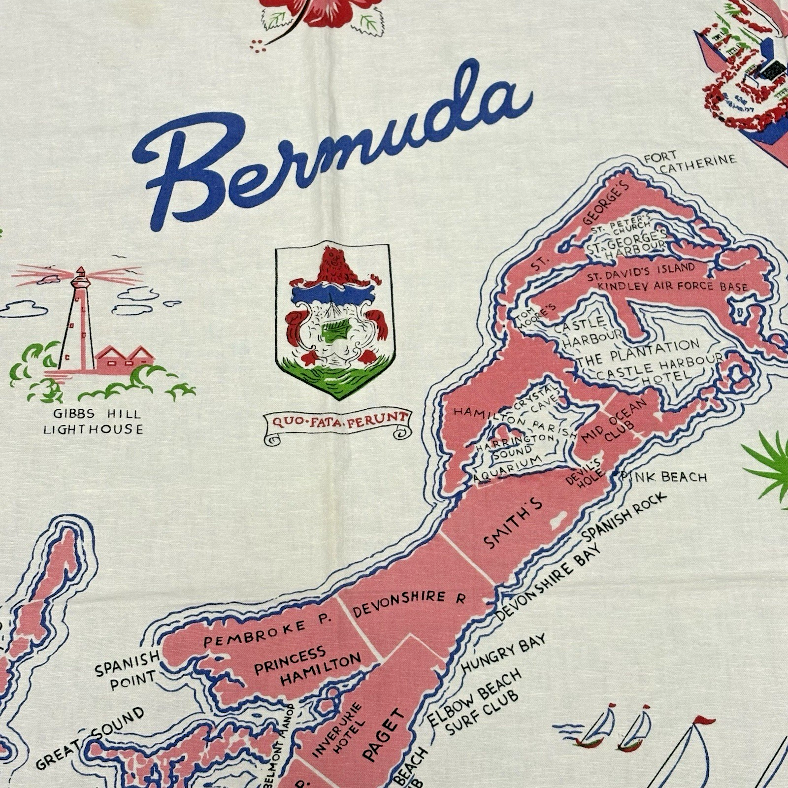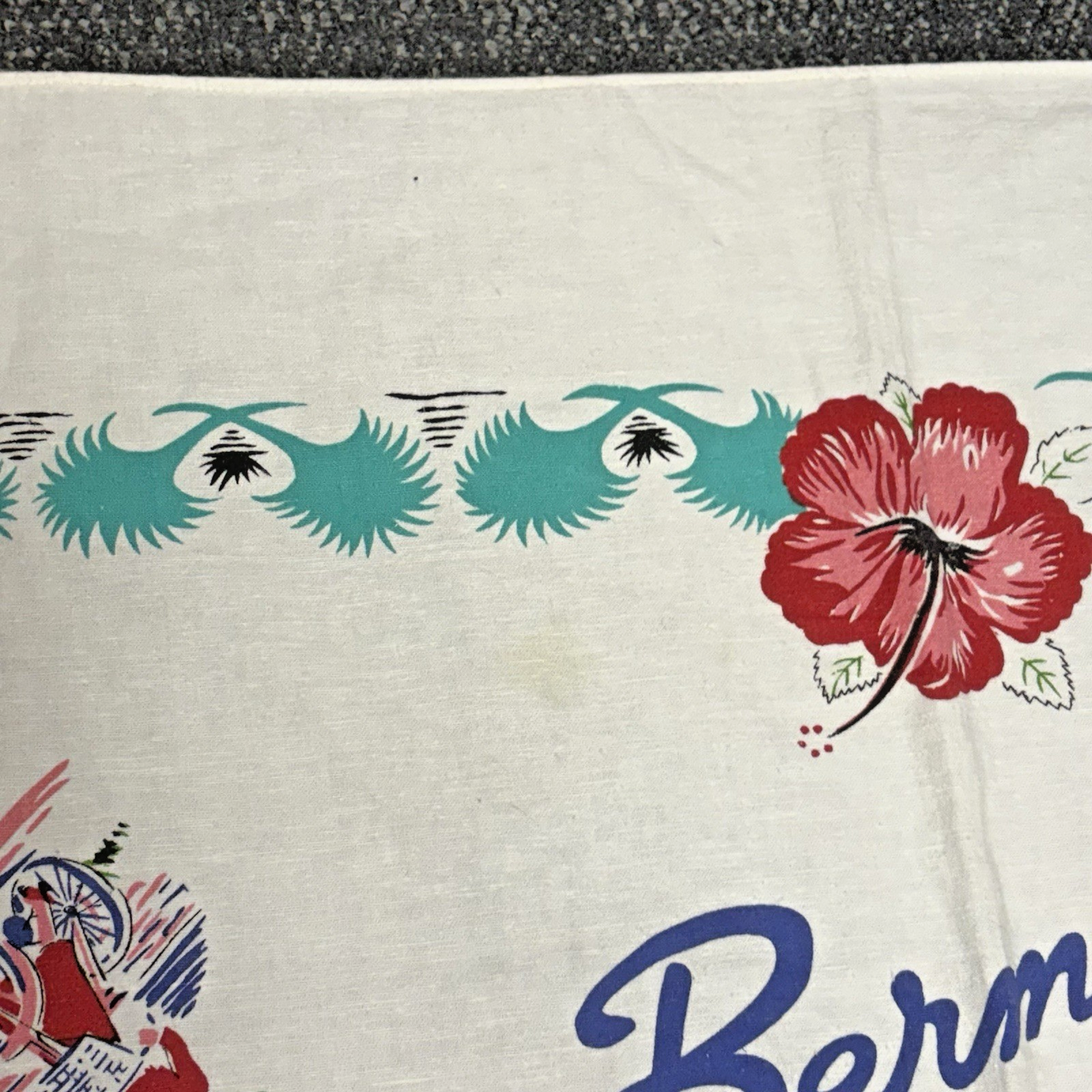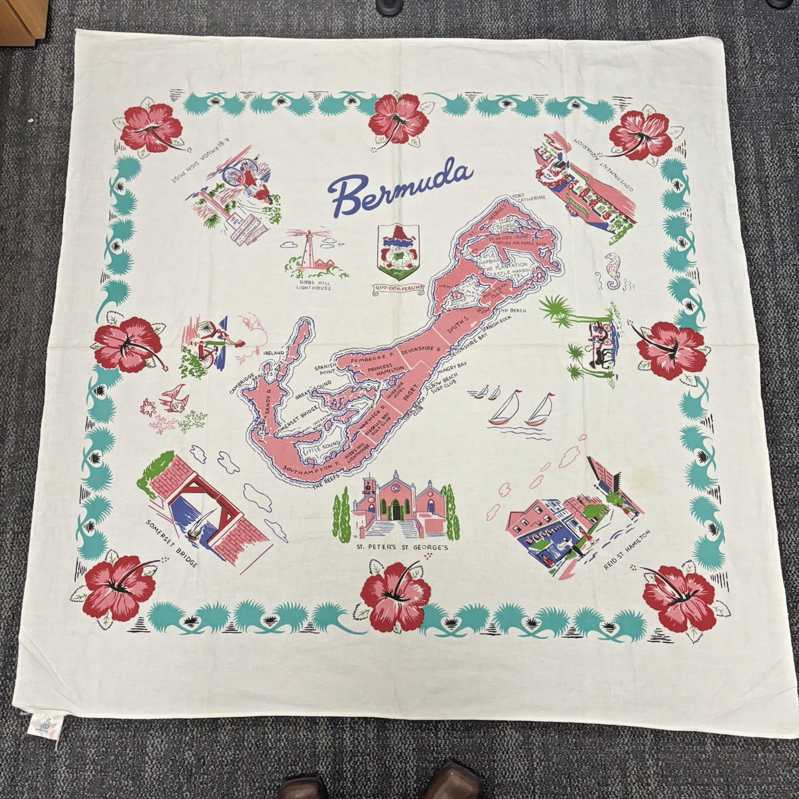 Vintage 1950's Bermuda Map Souvenir Tablecloth Linen