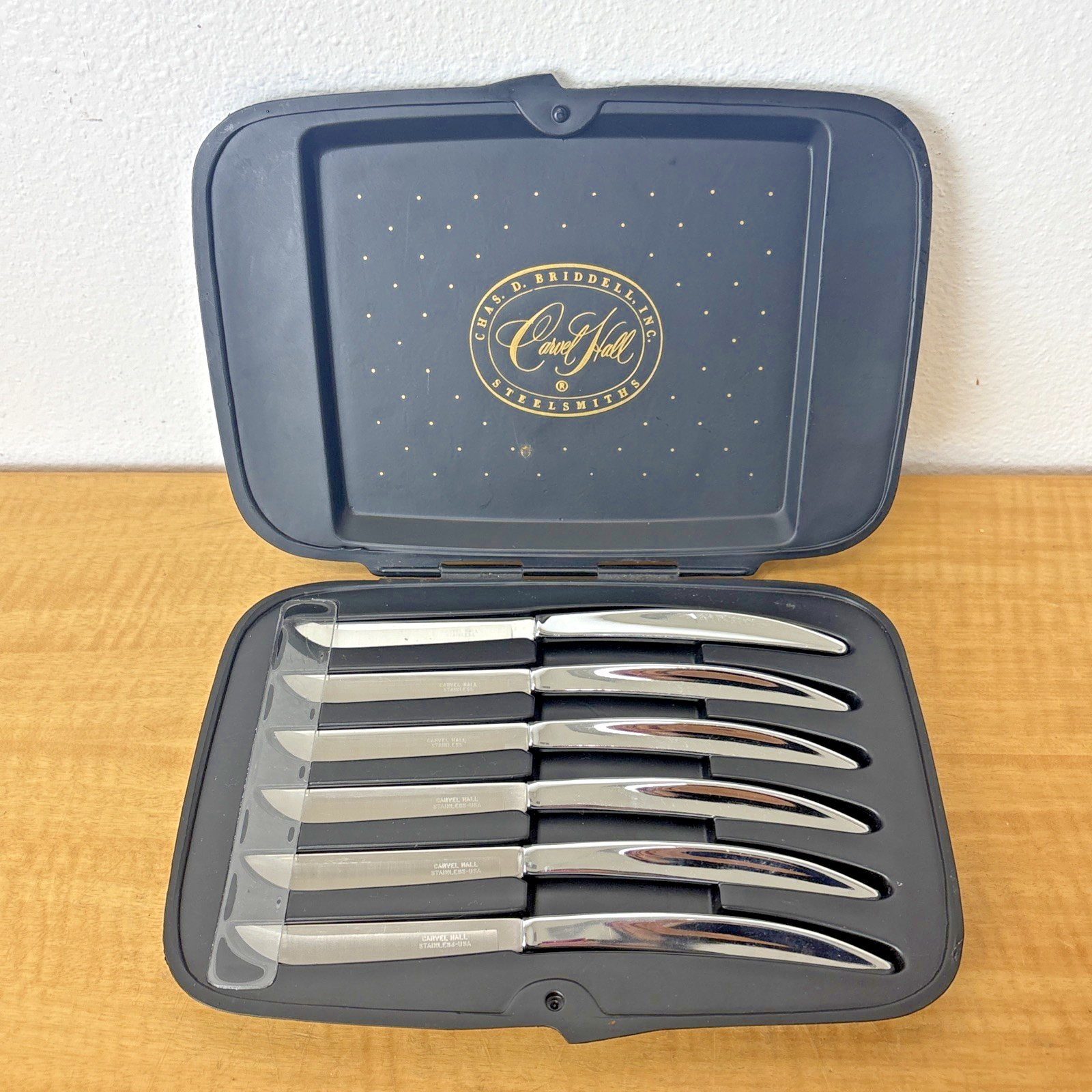 Vintage 1950s Carvel Hall Stainless Steel Steak Knives Set of 6 in Case